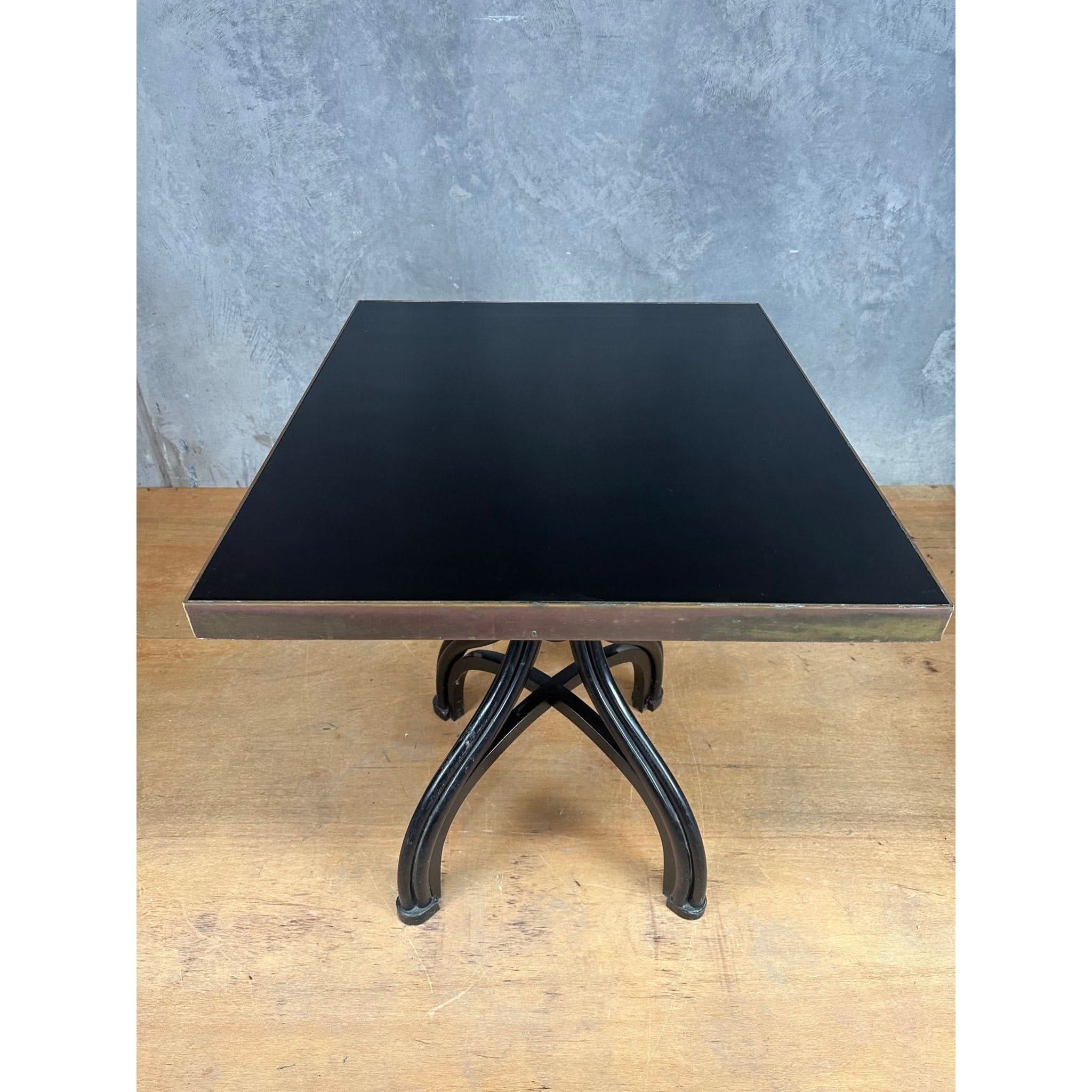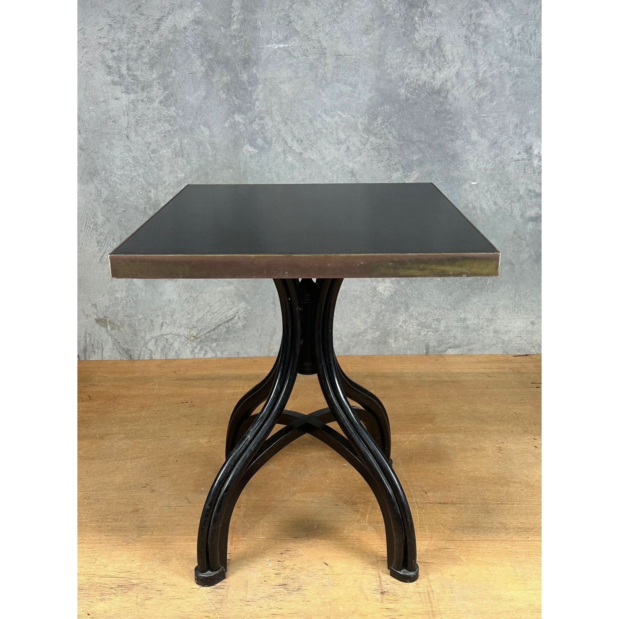 1970's Cafe design this table with black top and uses Thonet's designs in bent tubular steel by Bauhaus masters.