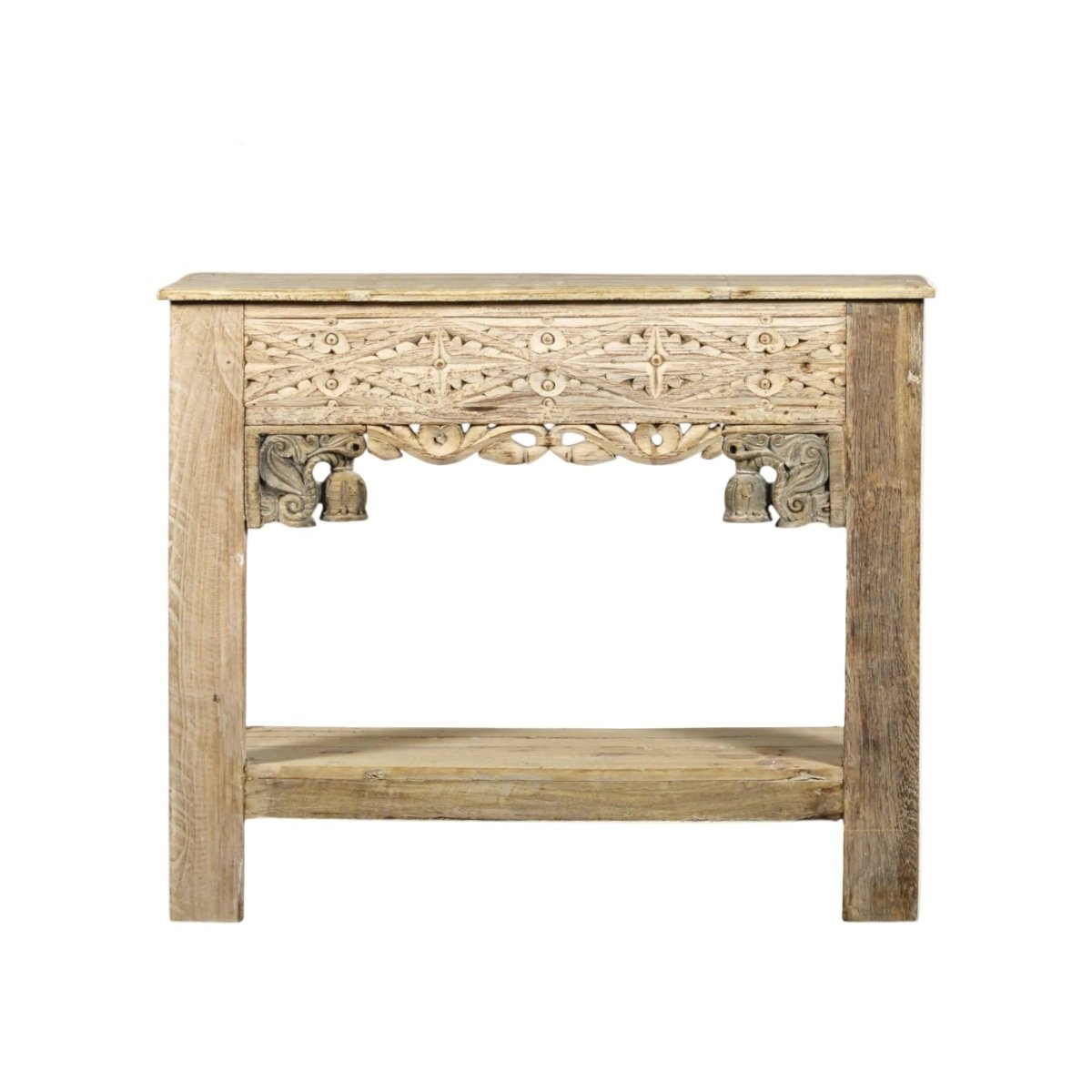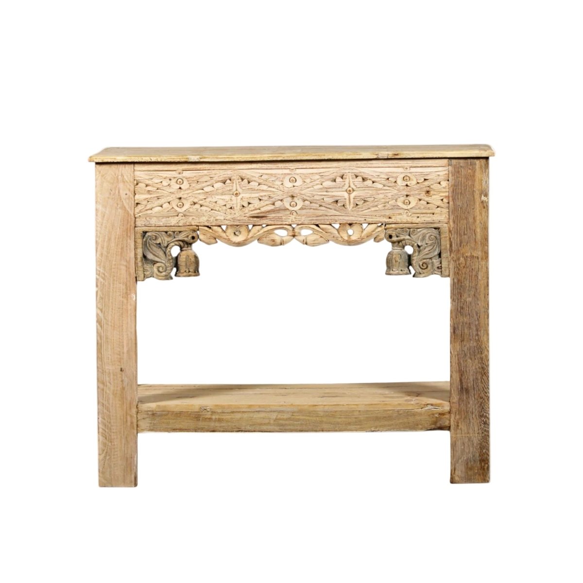 This stunning console table from India is expertly handcrafted with vintage carvings, repurposed to form a truly unique centerpiece. Its classic vintage finish lends an elegant, timeless appeal that enhances any décor style. Part of the Eco Village Collection, it brings distinctive charm to your home while supporting sustainable craftsmanship. Transform your living space with this beautiful console that blends artistry, heritage, and eco-friendly values.
