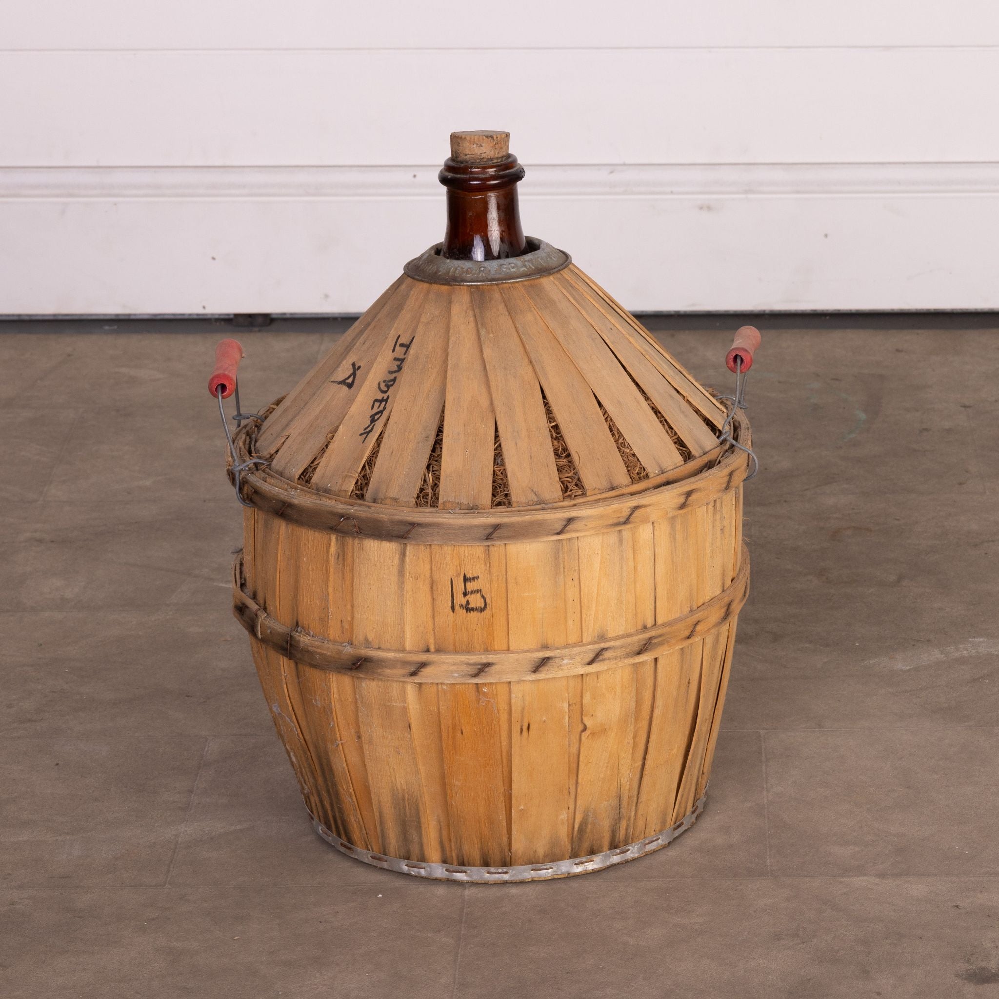 Antique French Demi John wine bottle in casing from Provence - part of a larger collection