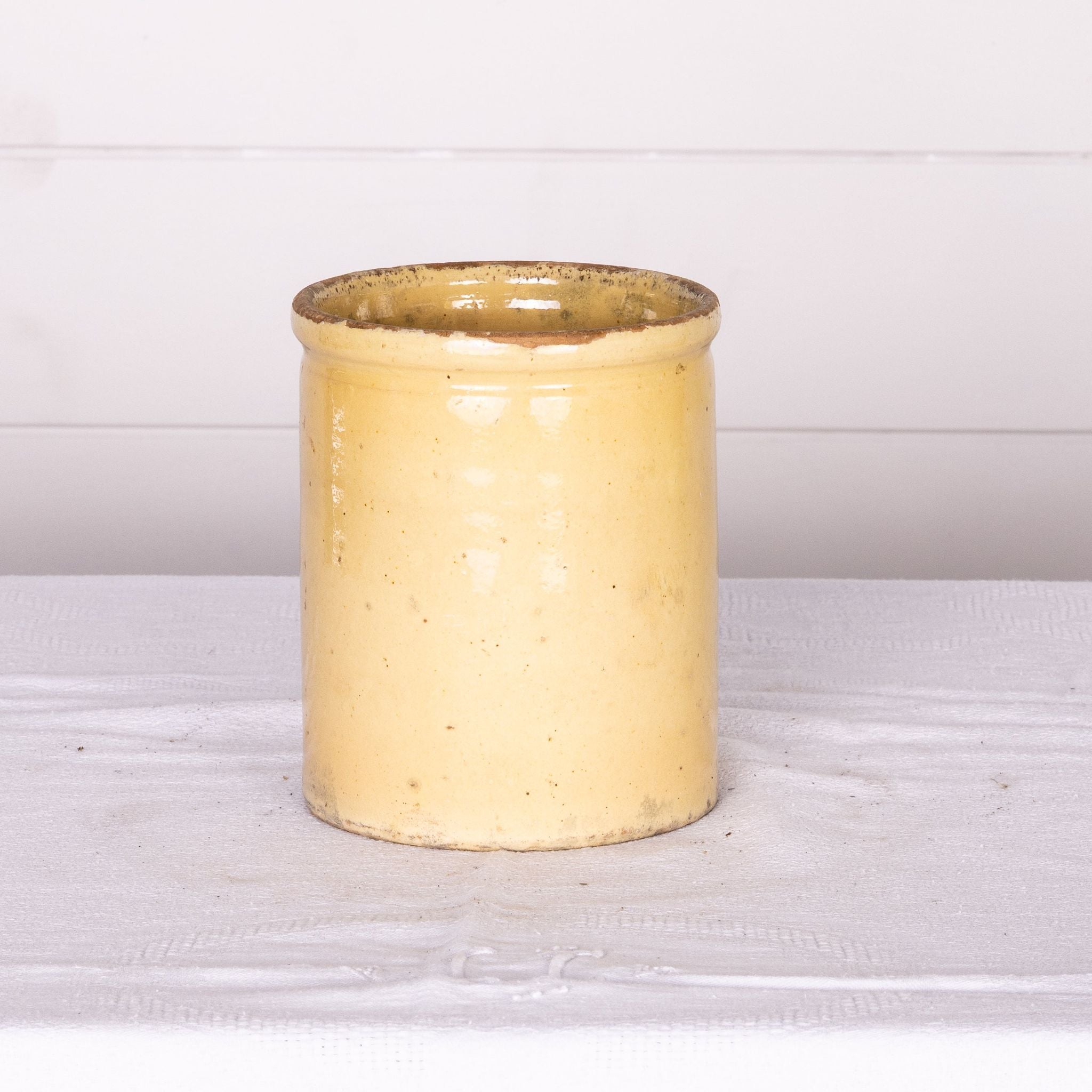 Beautiful antique French yellow glazed confit pot from Provence