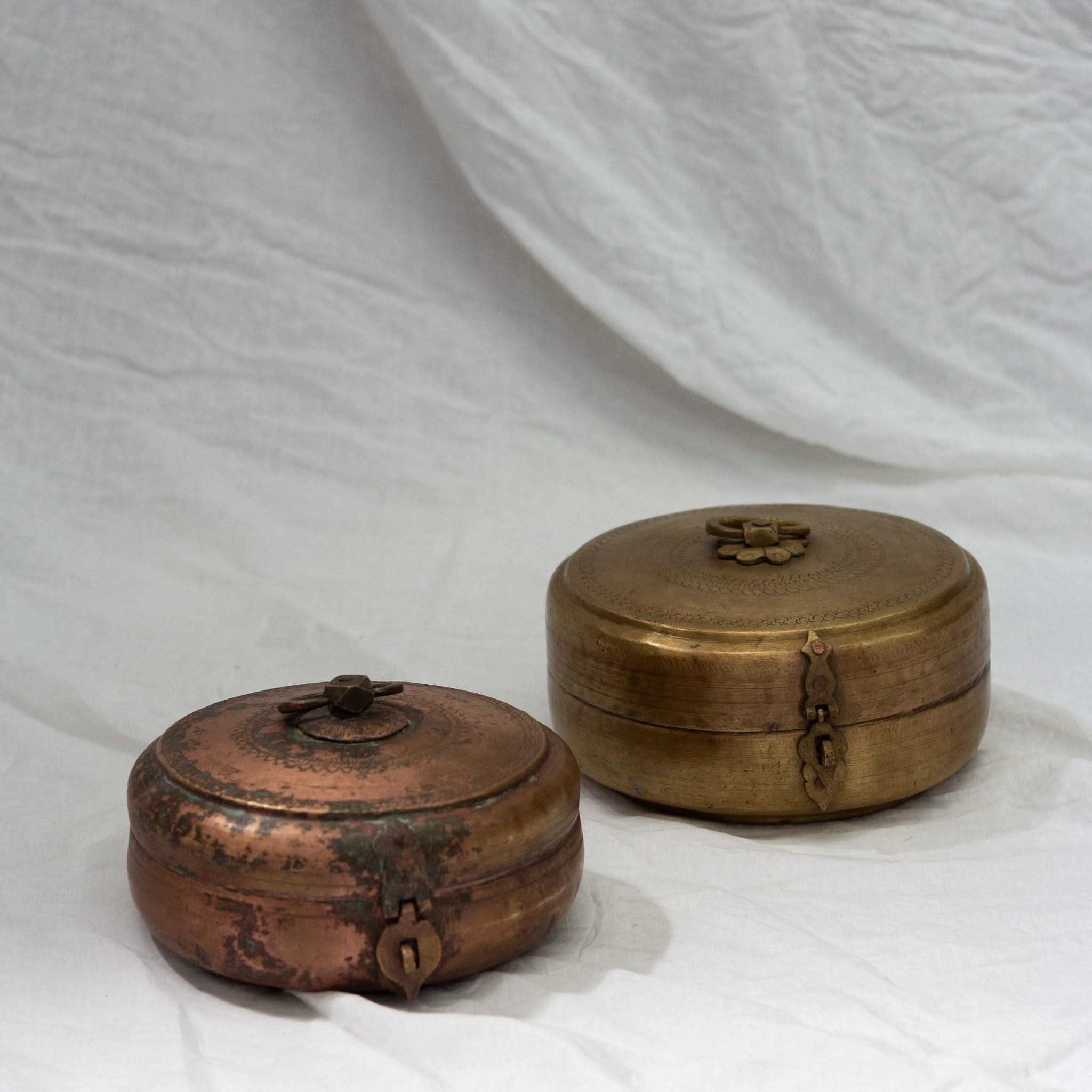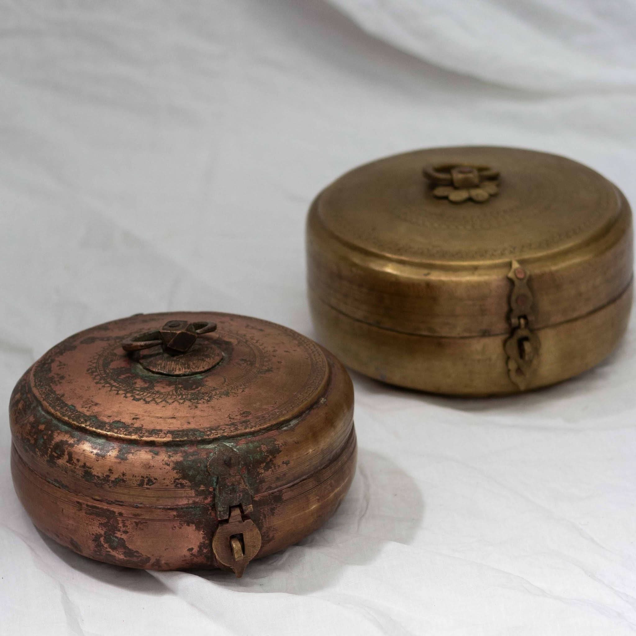 A brass chapati box, is a traditional Indian kitchen utensil used to store freshly made chapatis or rotis. It's designed to keep the chapatis warm and soft, ensuring they are ready to be served hot at mealtime. These brass chapati boxes are not only practical but also have cultural and aesthetic value, making them a common item in many Indian households. They add a touch of elegance to the dining table and are often passed down as heirlooms.