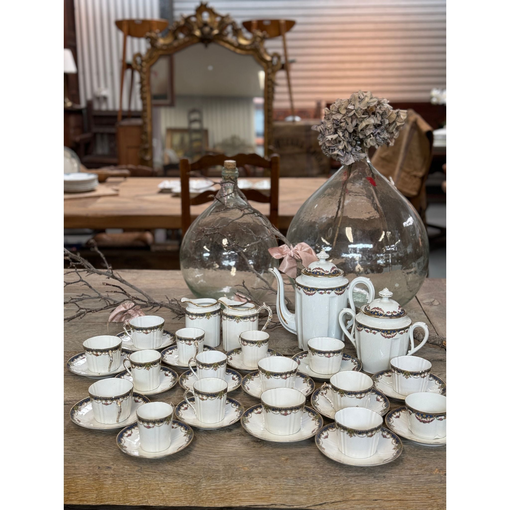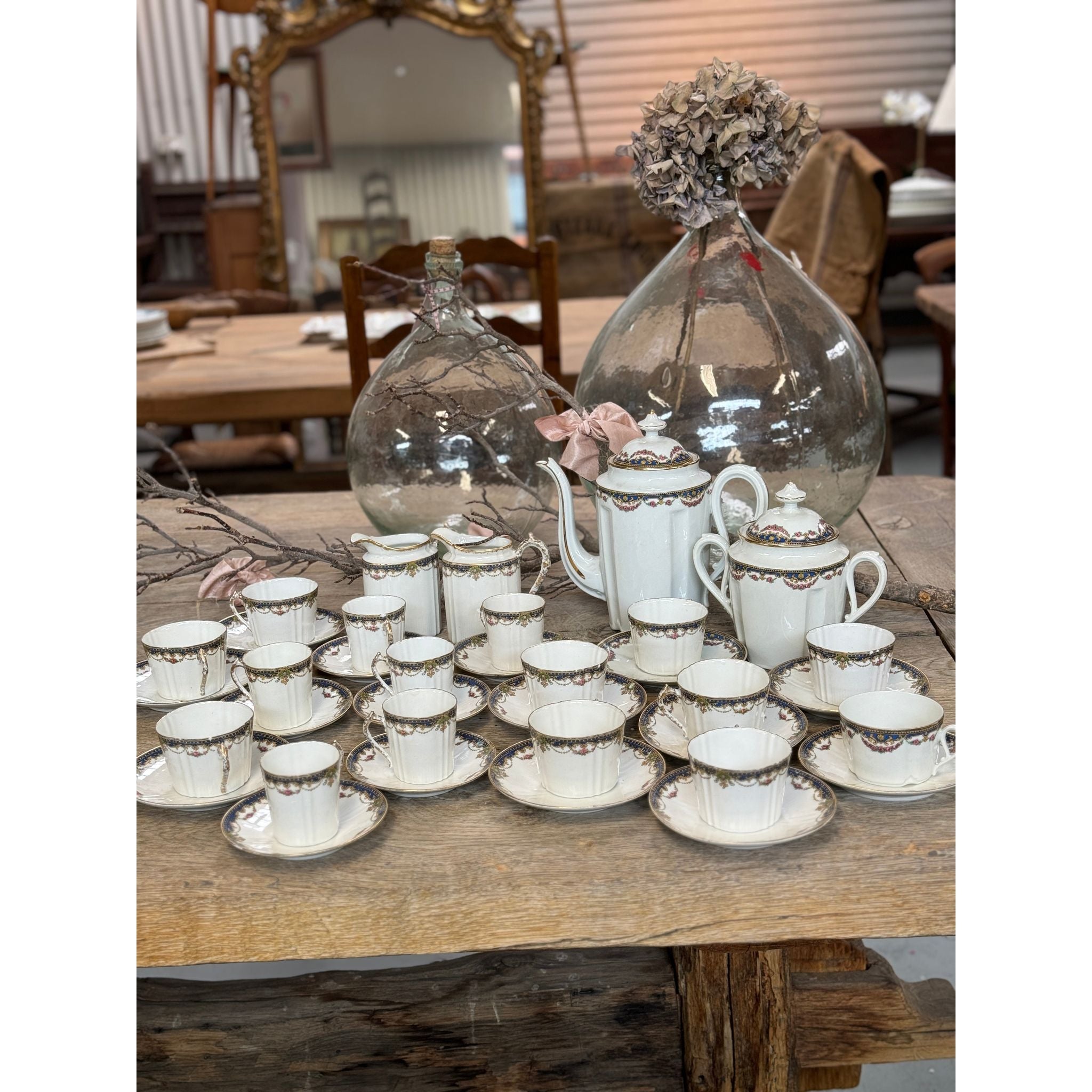 Delicate Antique French porcelain tea and coffee cup and saucers set from Paris.