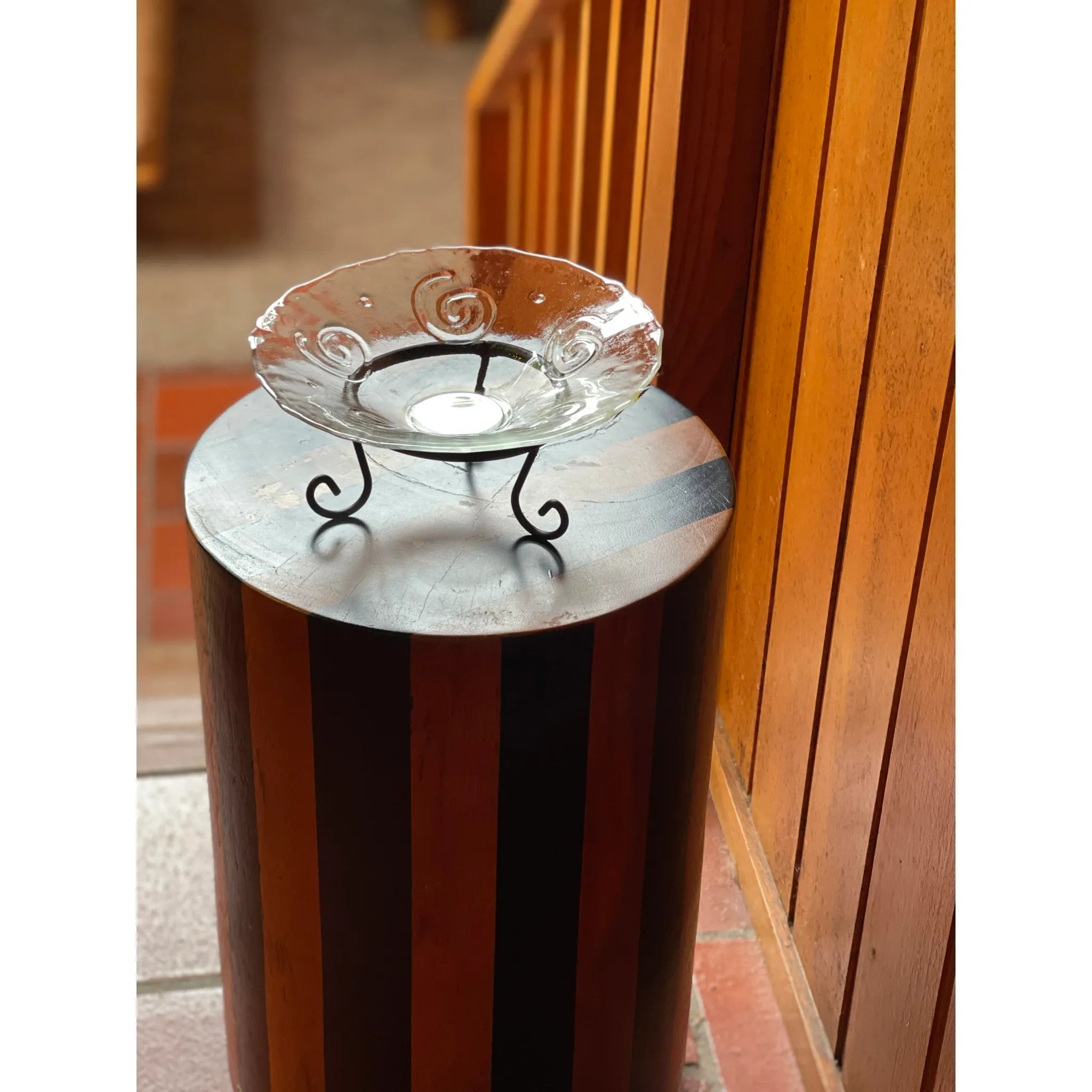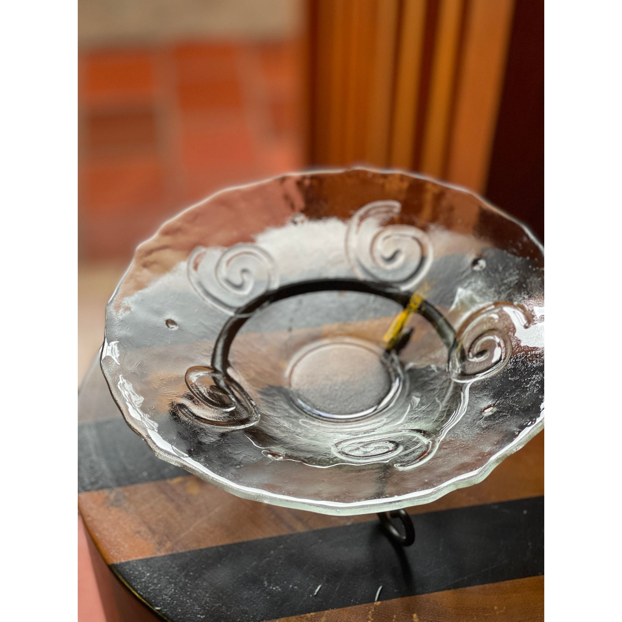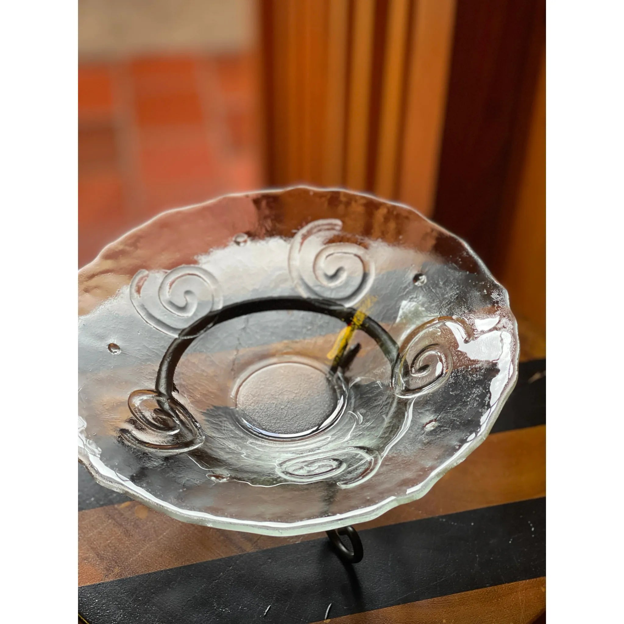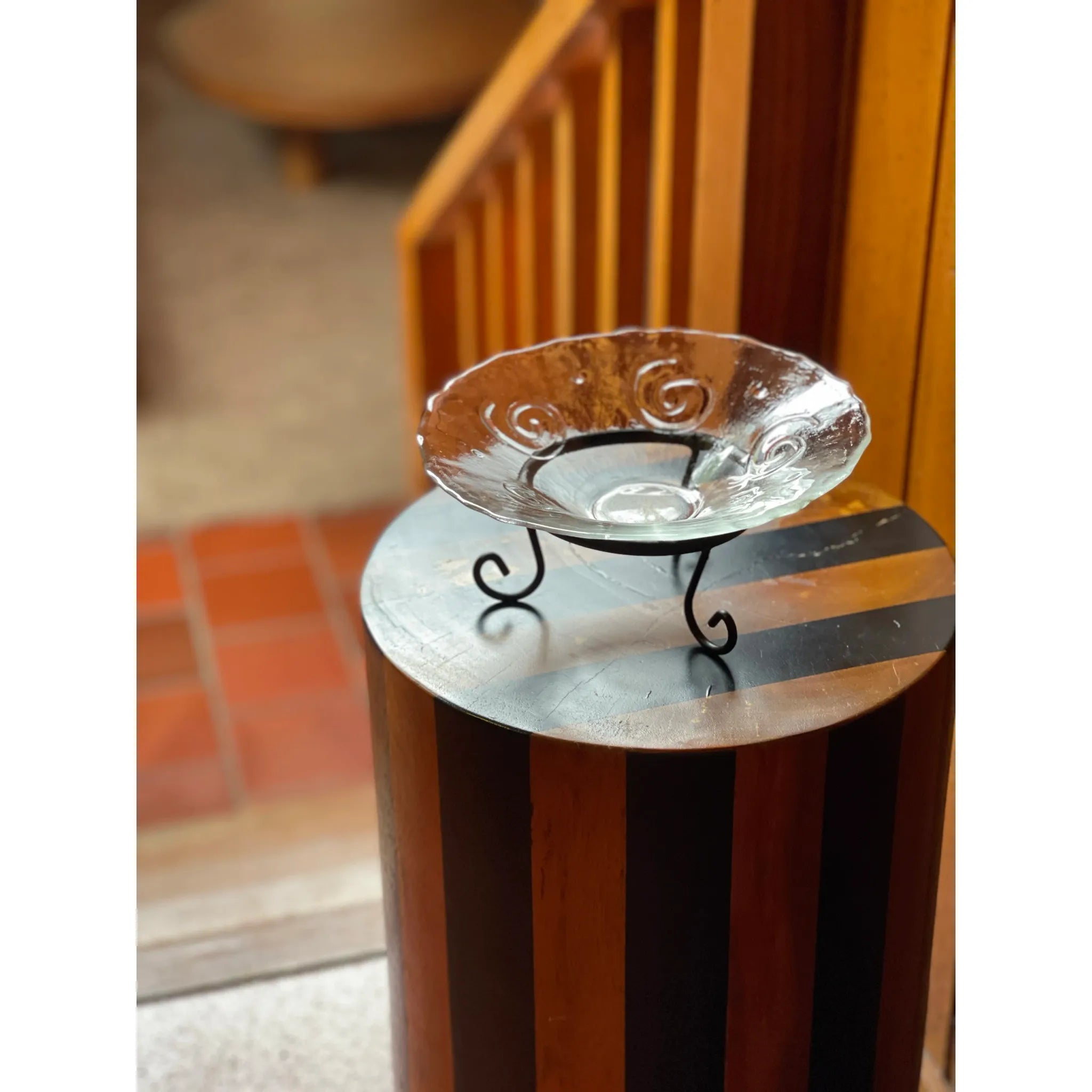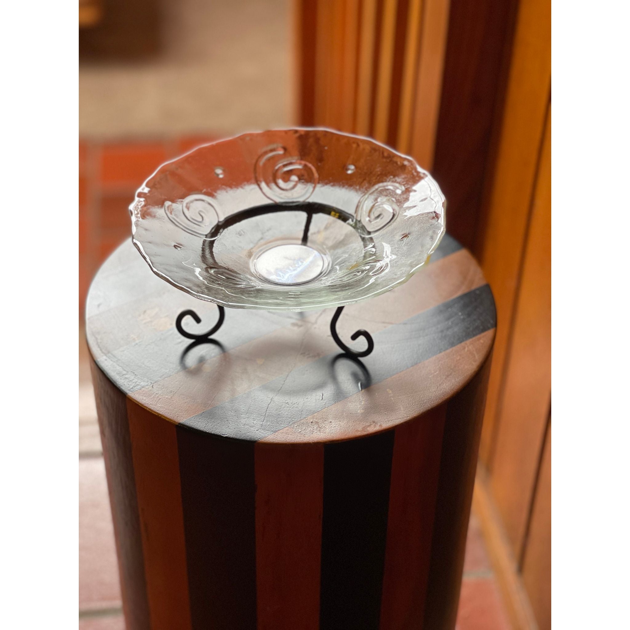 organic shaped glass spiral dish on wrought iron stand, perfect for storing treasures or serving treats or just sitting pretty.