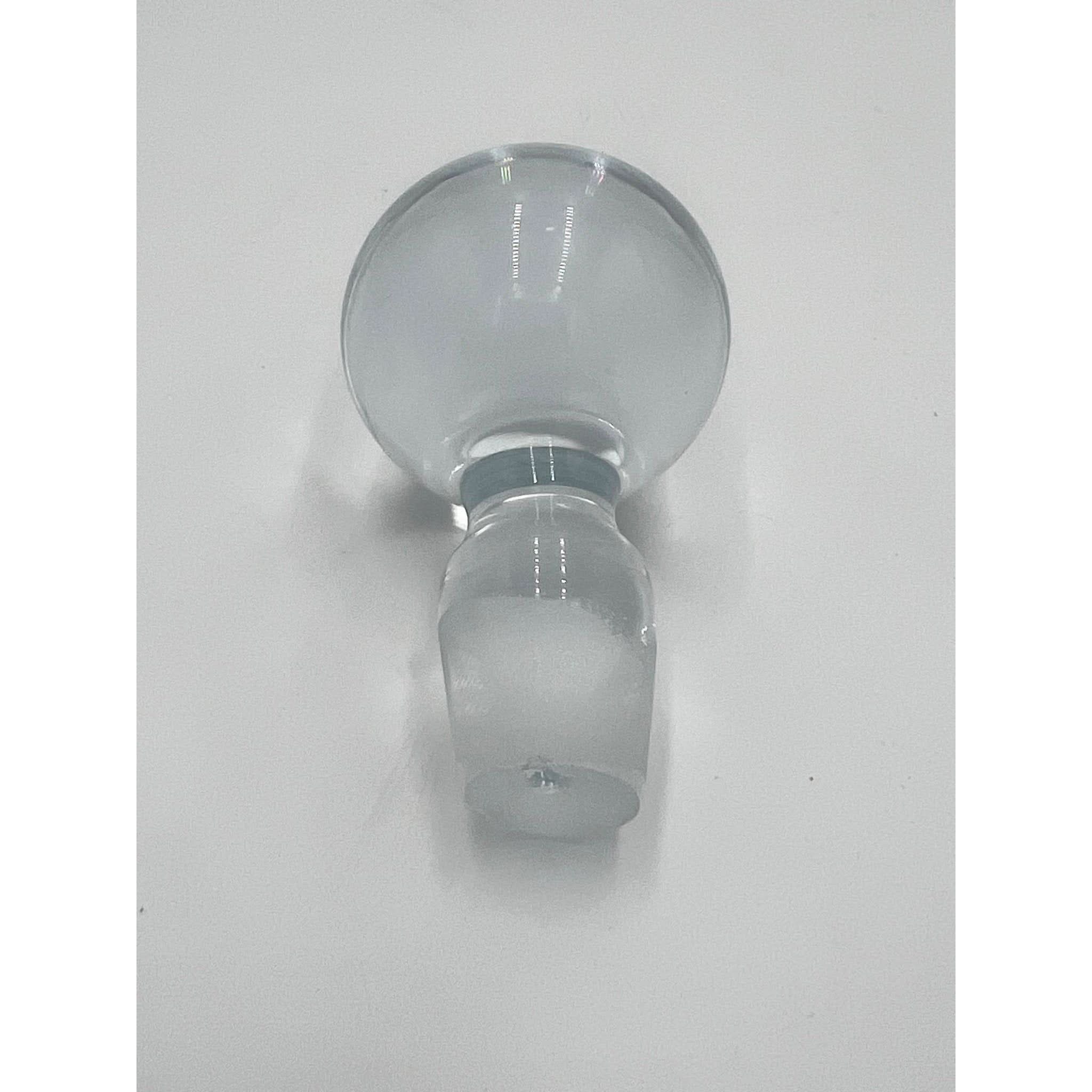 The stopper of the decanter varied from round and clear (shown here), to round with an air bubble to pillow-shaped with a knob.