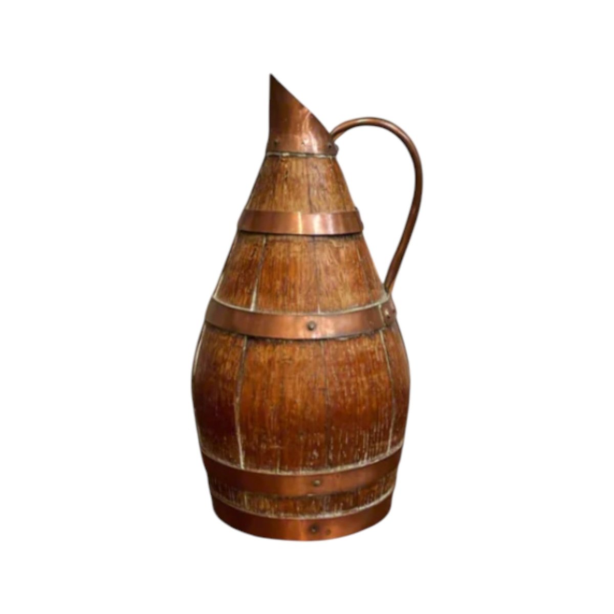 Discover the charm of this vintage French Alsatian wine pitcher, crafted from wood and brass. A perfect gift for wine enthusiasts to display as a stand alone decorative piece. This could also be used as a vase or as a kitchen utensil vessel.