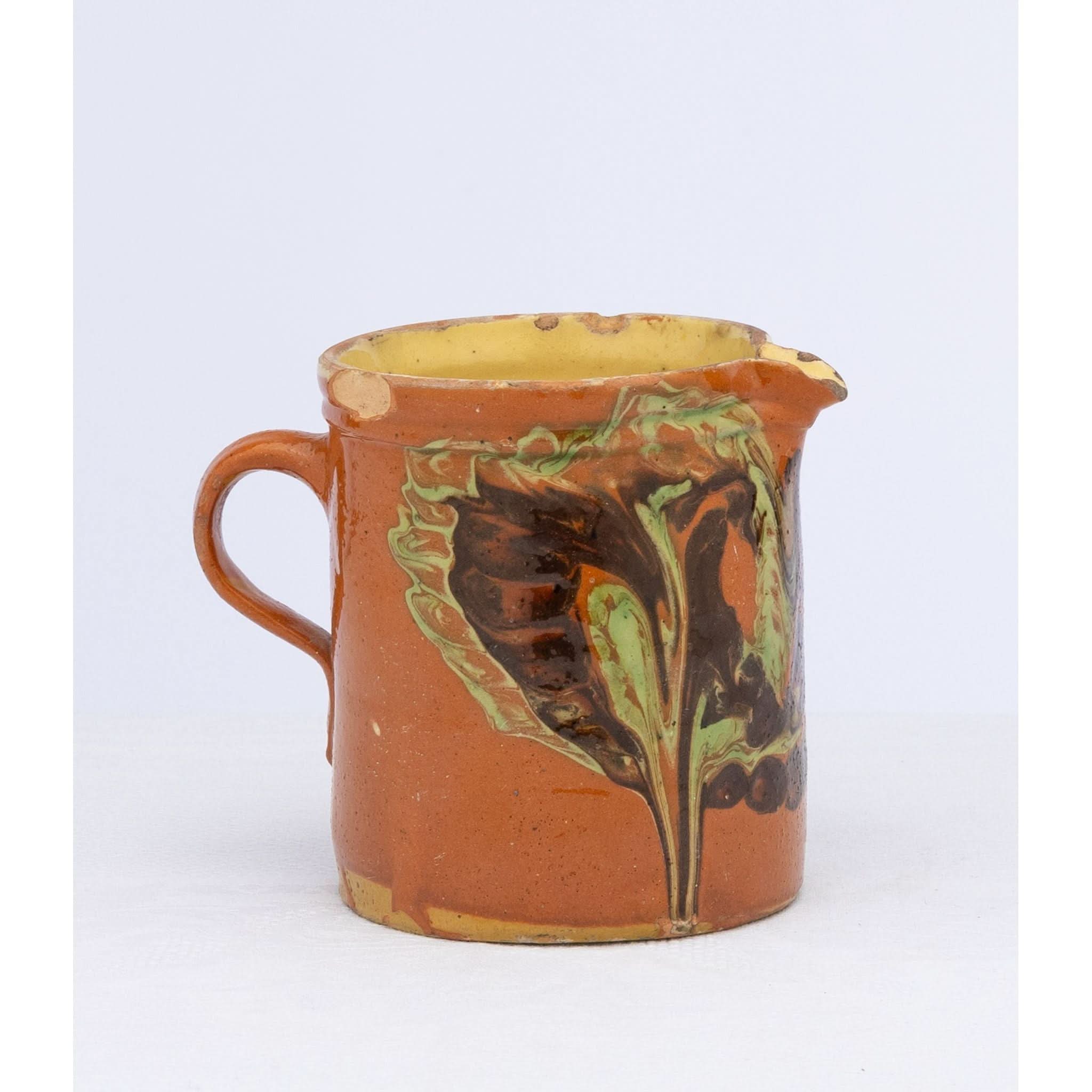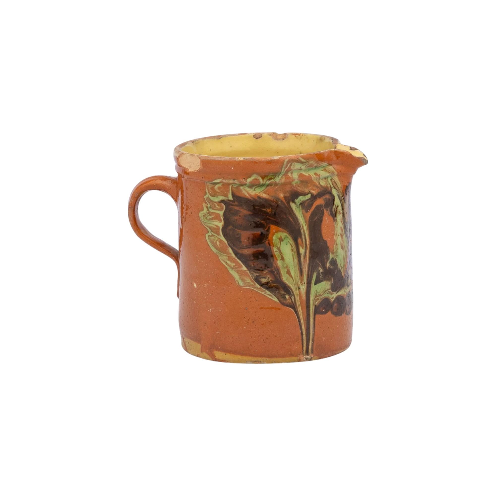 Vintage French glazed earthenware pitcher from the French Alps with marbled design