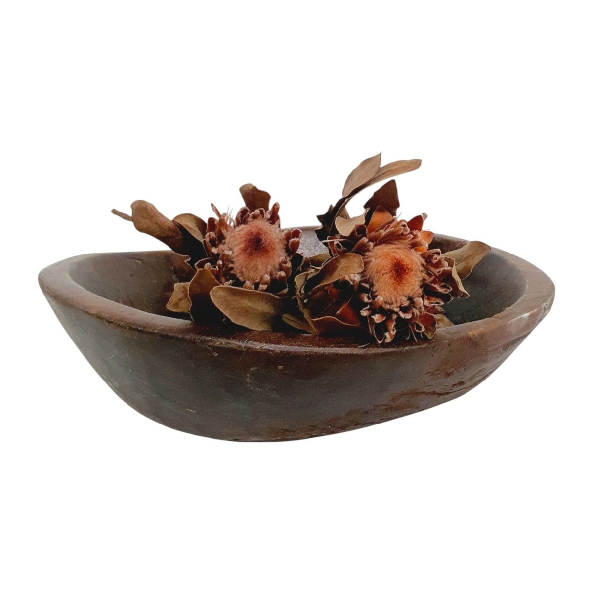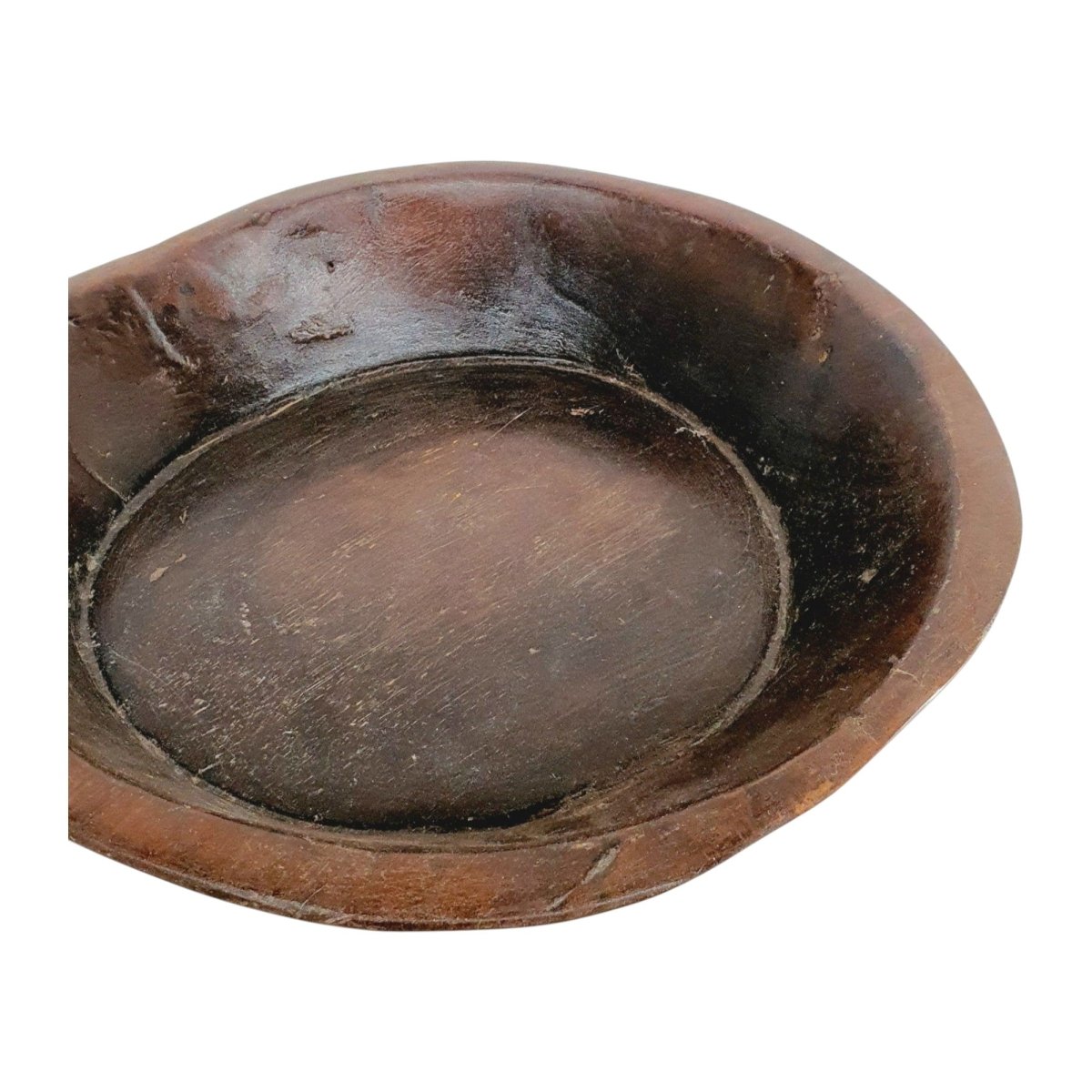 Infuse your home with rustic charm and timeless character with this authentic Indian vintage bowl. Handcrafted decades ago from solid timber, each piece carries the marks of its history - worn edges, rich patina and natural imperfections that truly make it one of a kind.