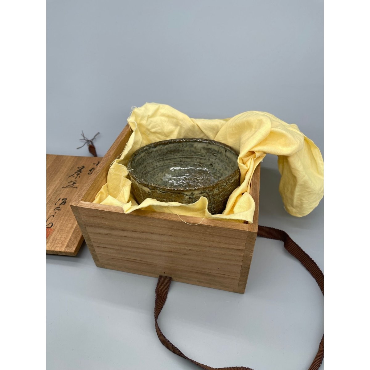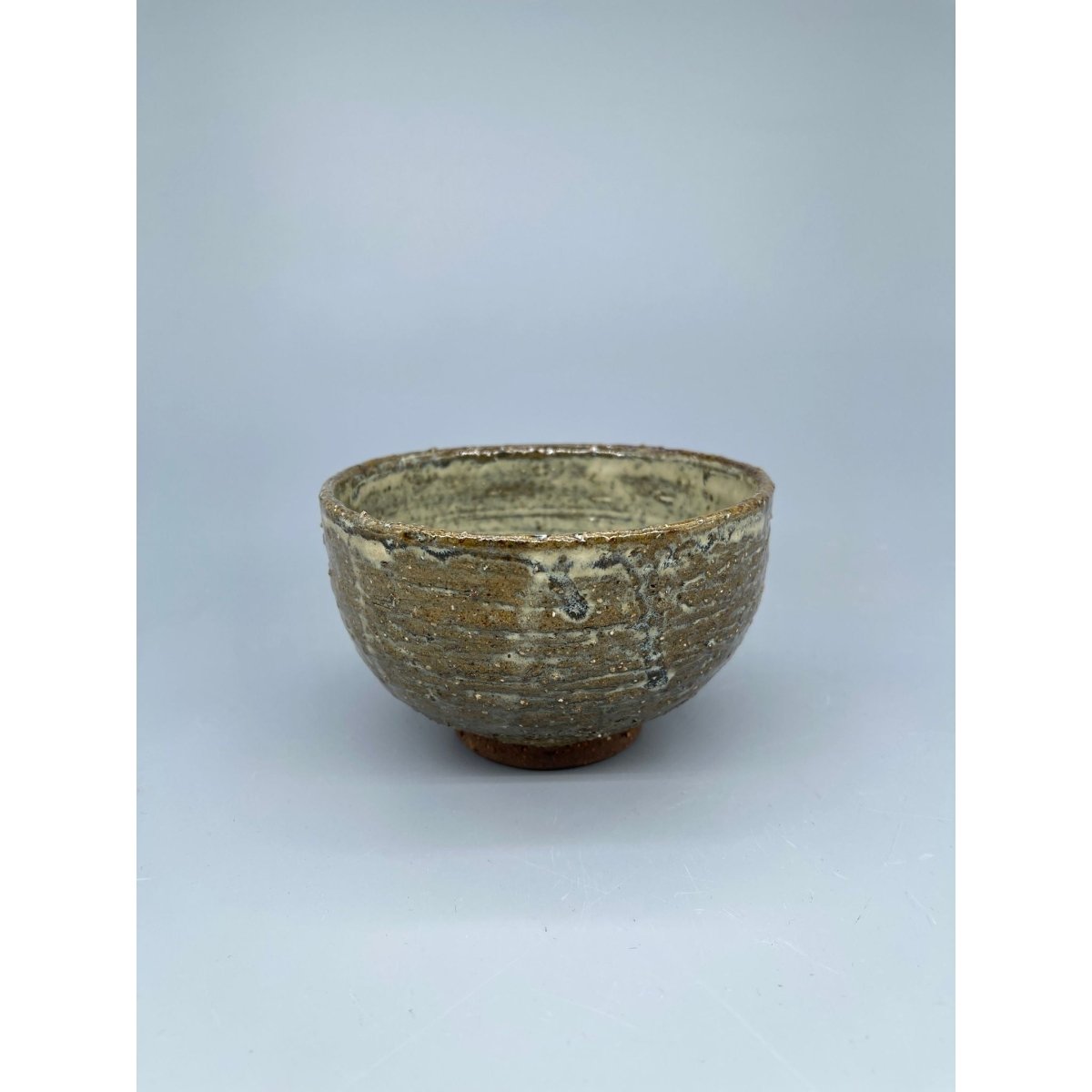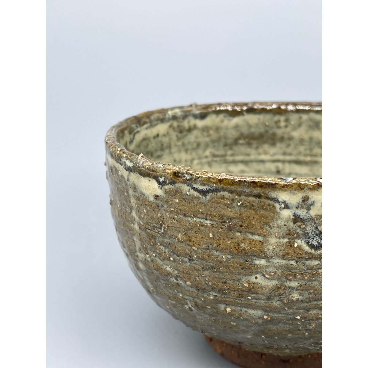 A vintage hand-crafted Japanese tea bowl, called a chawan. These bowls are designed for drinking matcha, a powdered form of green tea.
