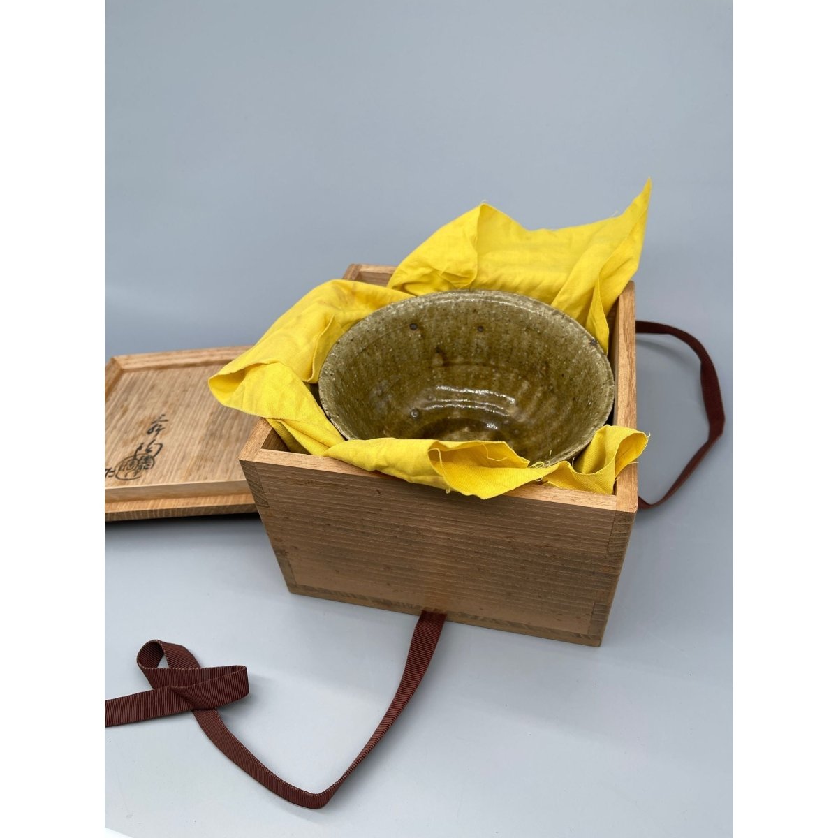 This piece is from Gifu, and features a mino-ware style ki-seto glaze. It also features an artist signature on its base.