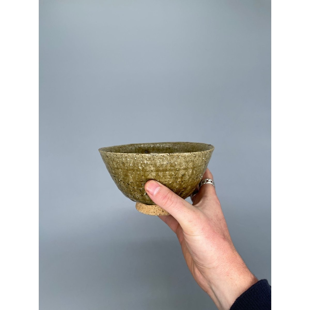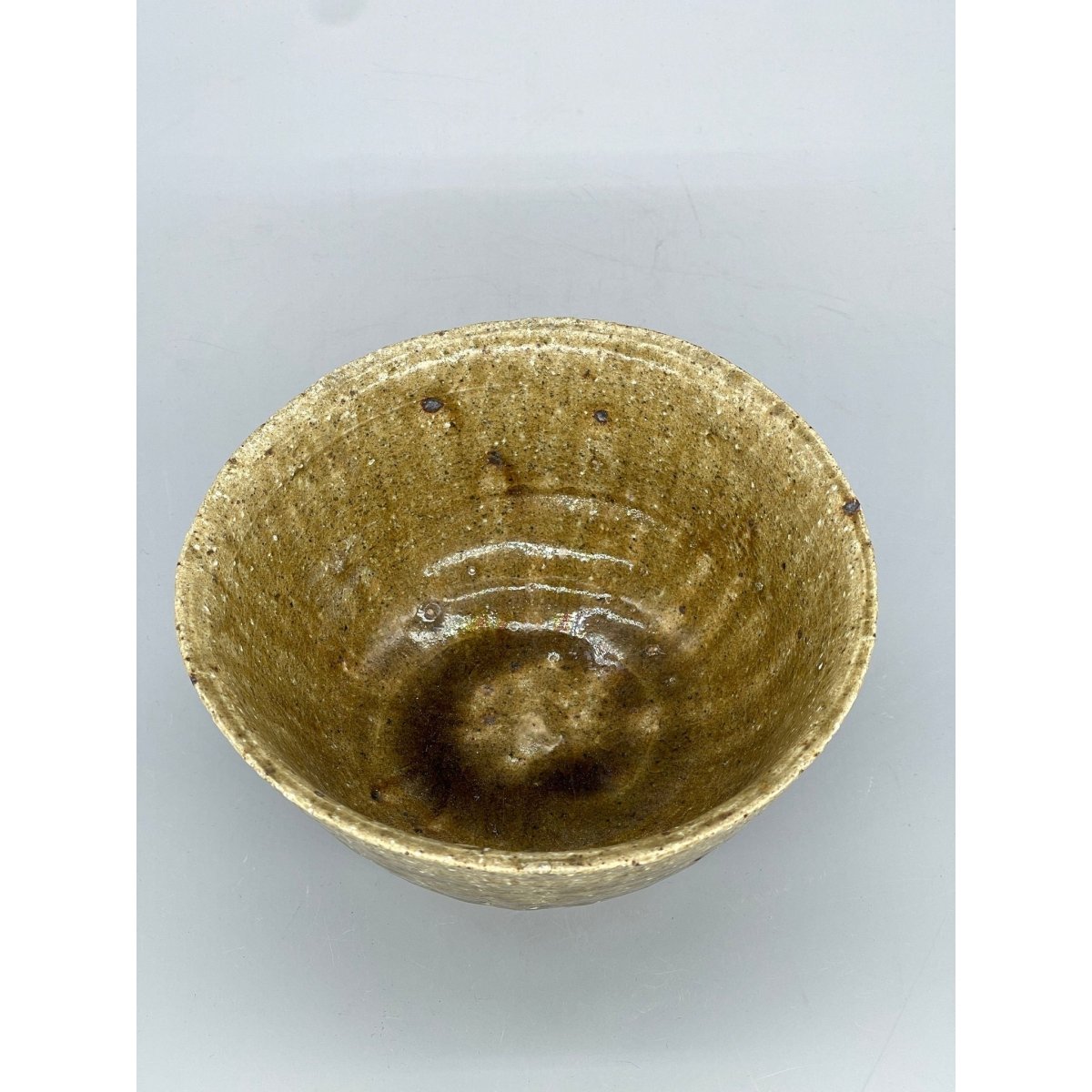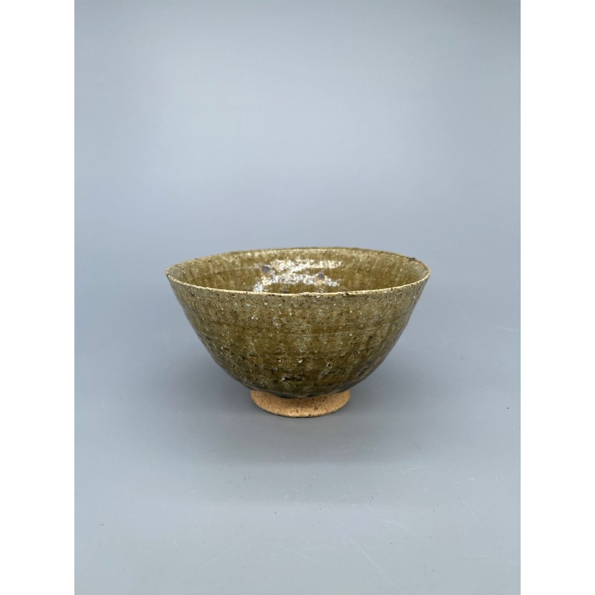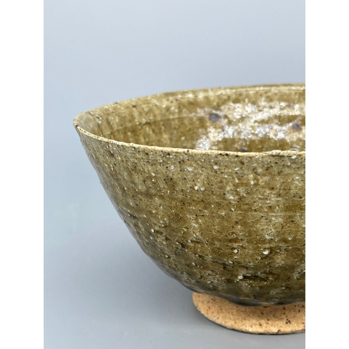 A vintage hand-crafted Japanese tea bowl, called a chawan. These bowls are designed for drinking matcha, a powdered form of green tea.