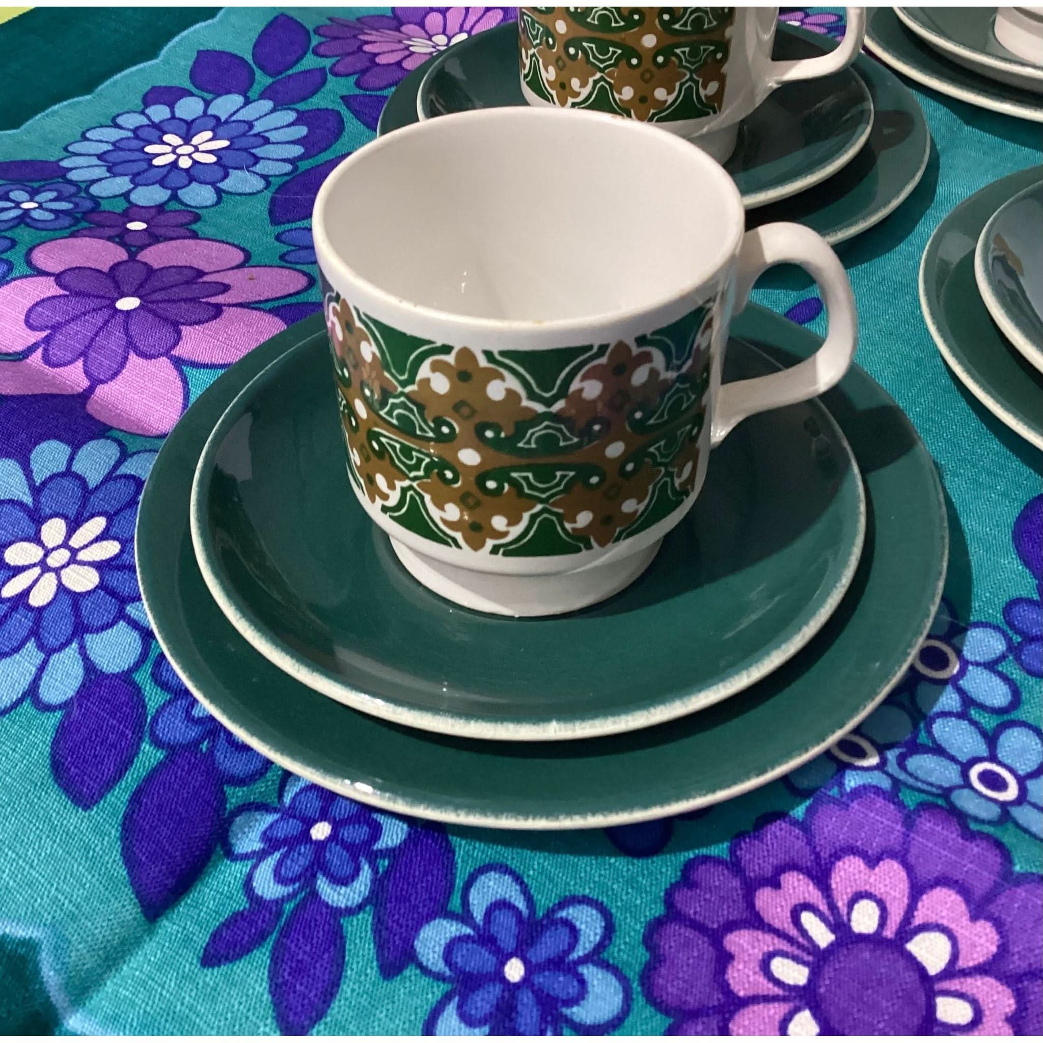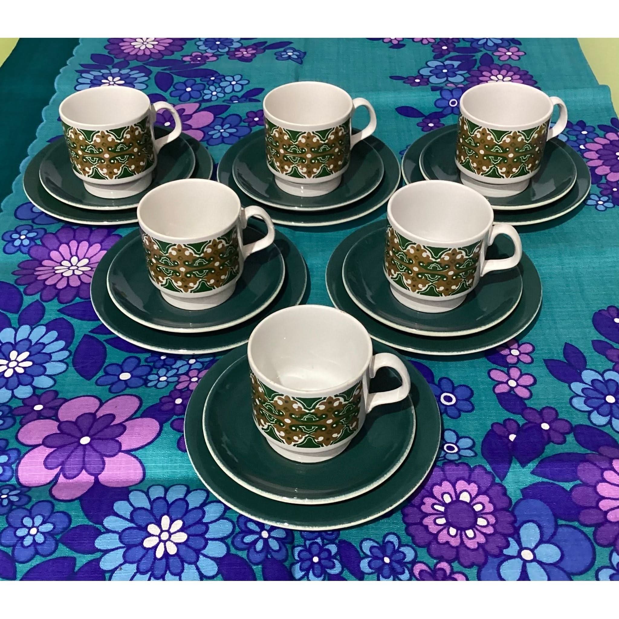 Set of 6 cups, saucers and cake plates