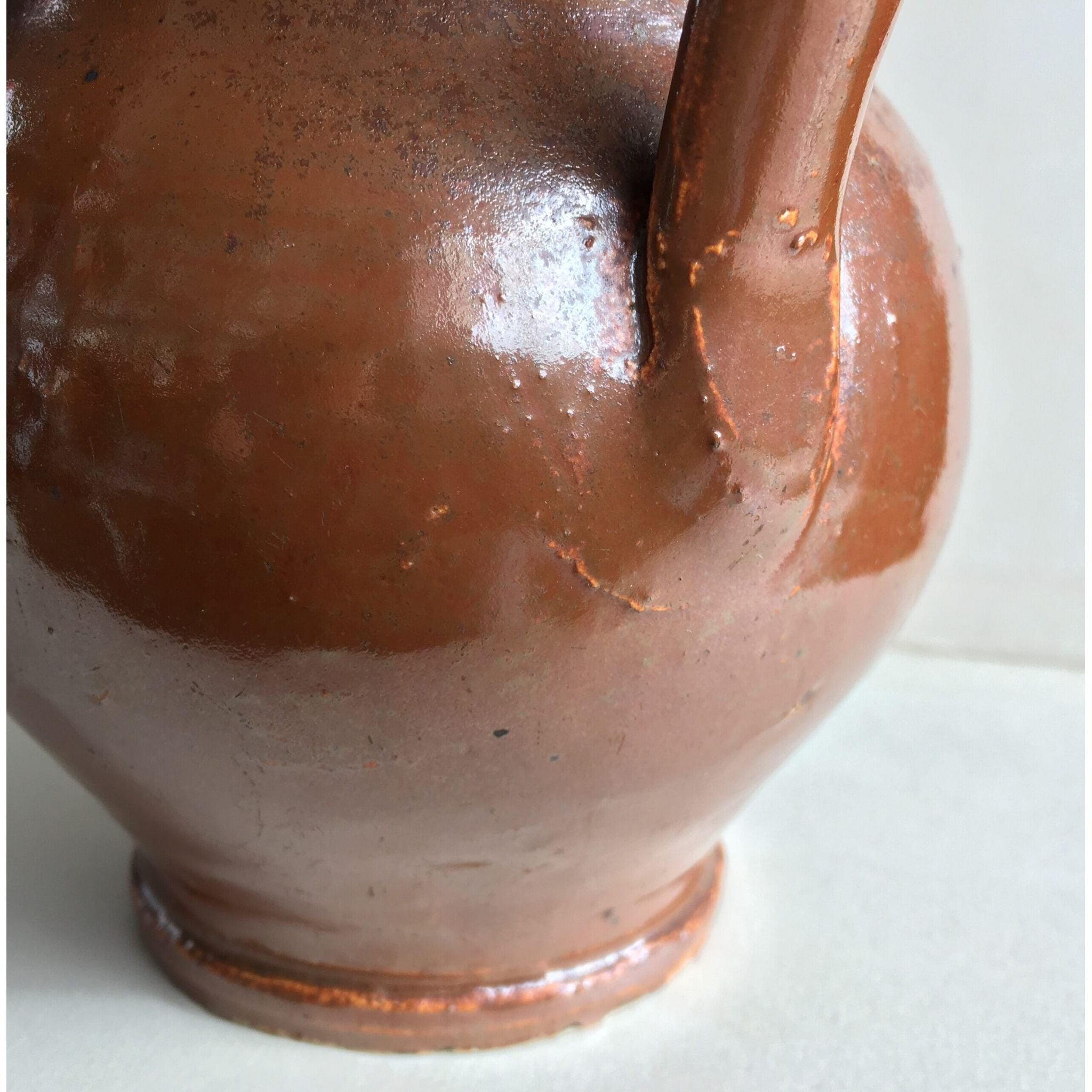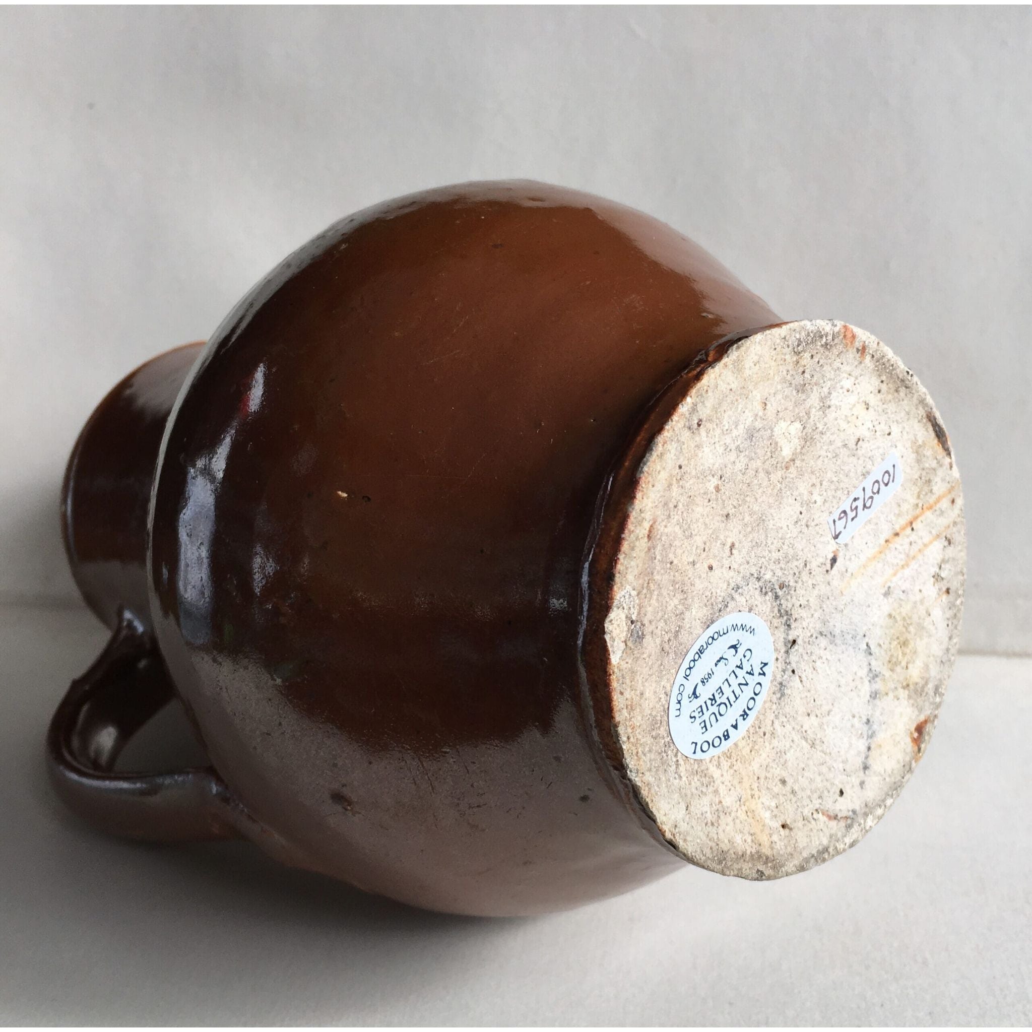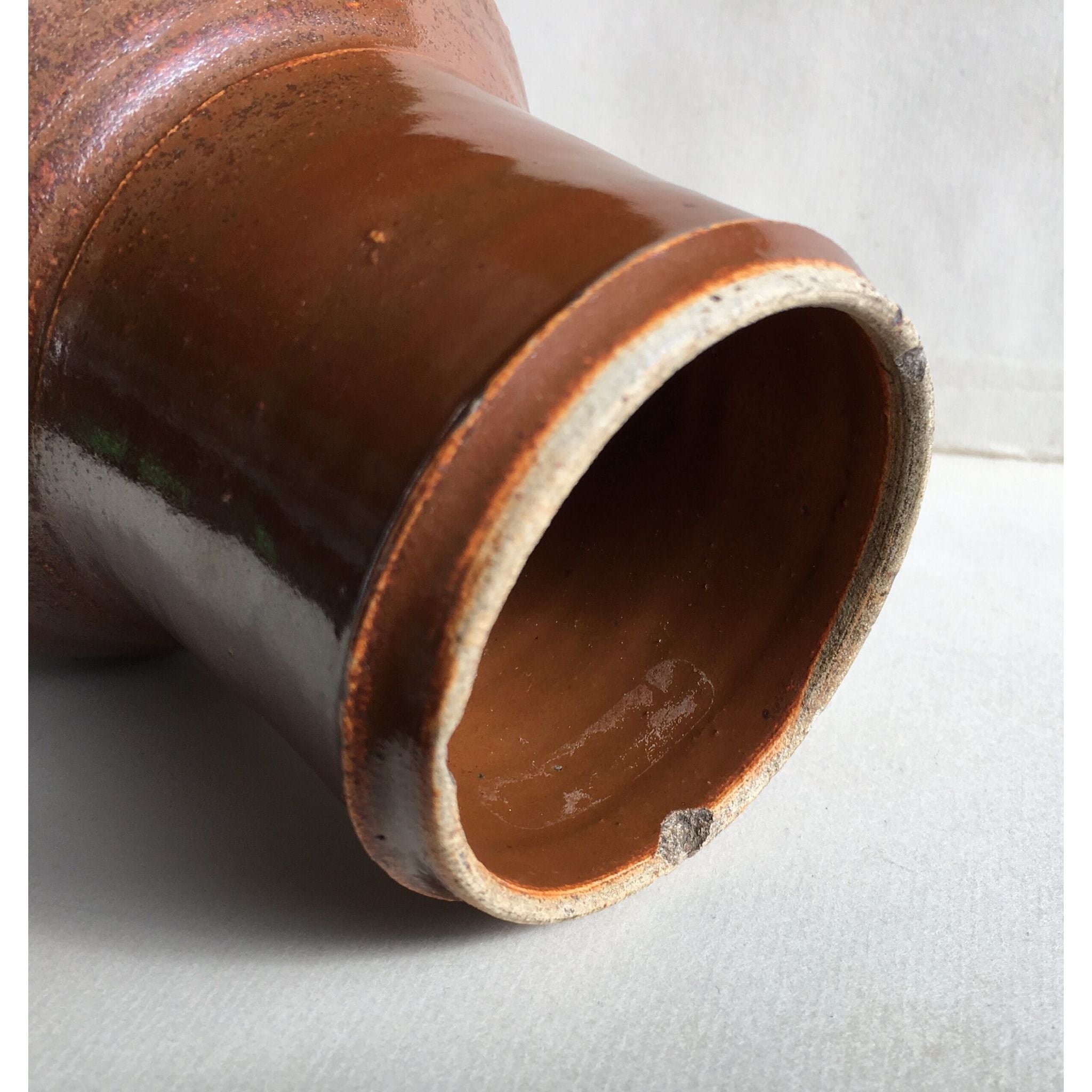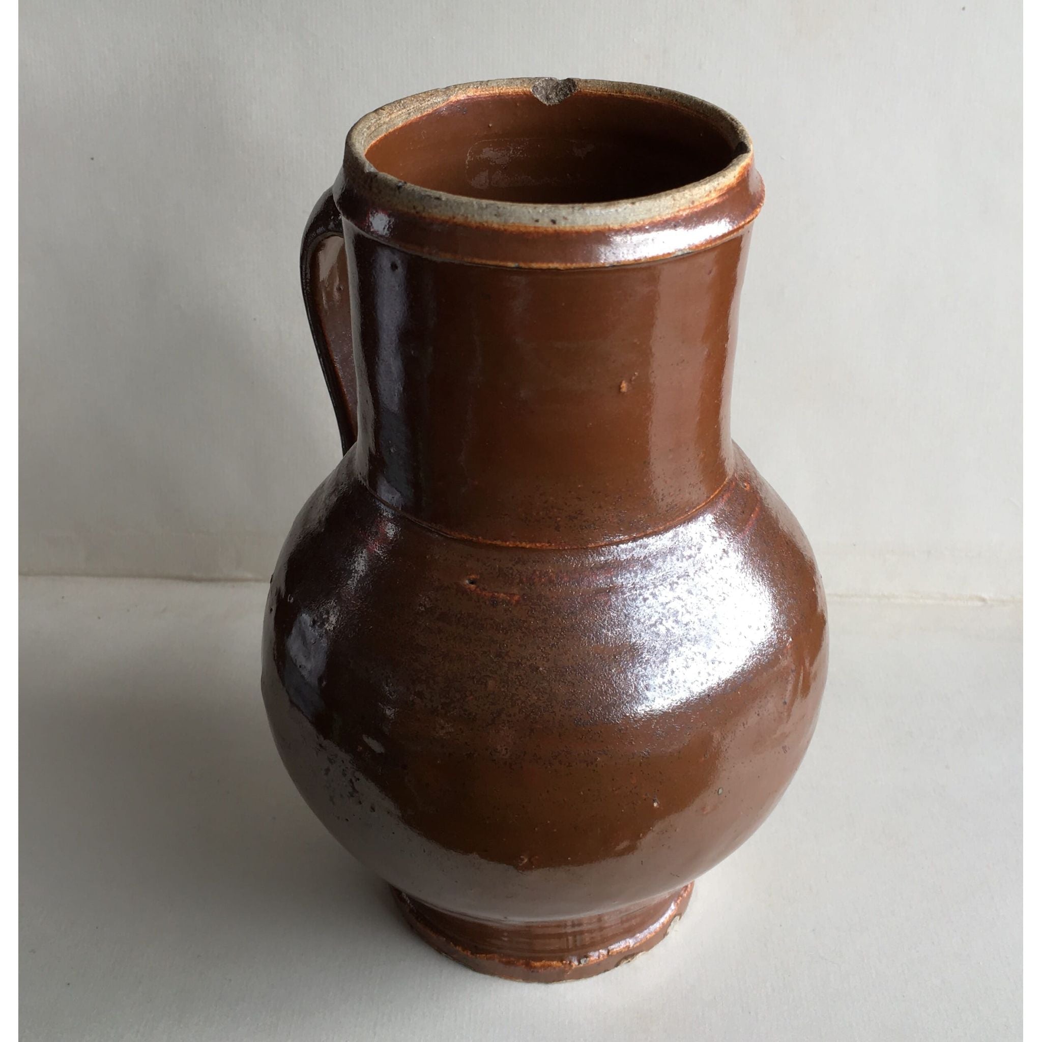 Interesting stoneware mug with rich chocolate glaze with a slight iradescent finish. Probably German, Late 18th/early 19th century