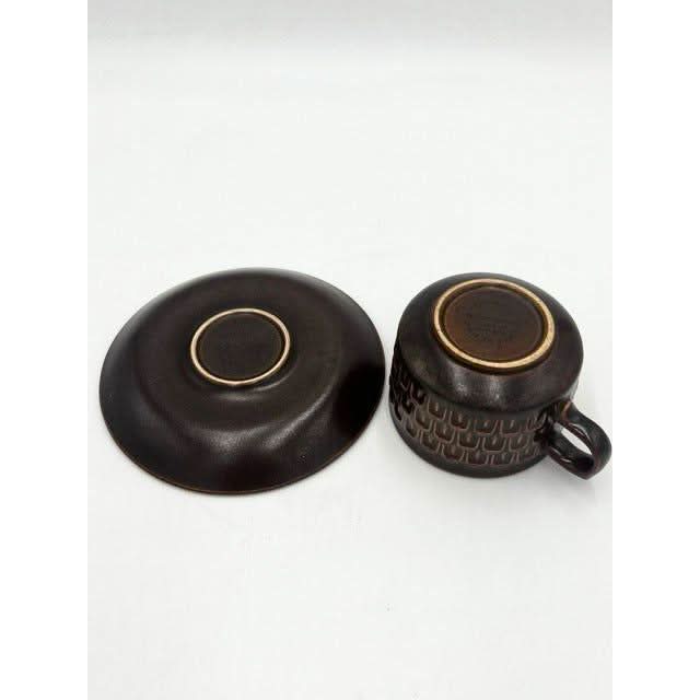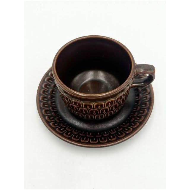 Each cup and saucer is designed with functionality and form in mind—perfect for daily use or as a display piece in a mid-century modern setting. The tactile design and earthy tones make these a standout addition to any retro-inspired kitchen or dining area.