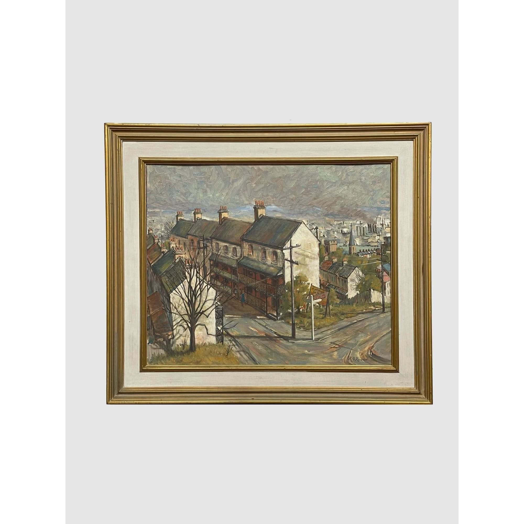 Oil on board framed painting by Reginald Rowe “Old Terraces Glebe”. Signed lower right.