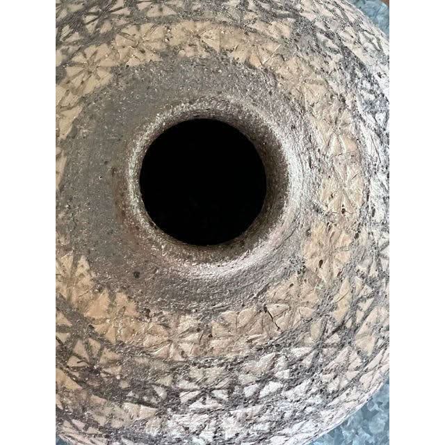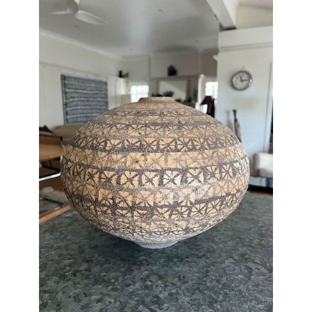 Amazing one-off hand-made vessel. Beautiful tonal object with interesting patterned glaze. Wonderful textured piece.
