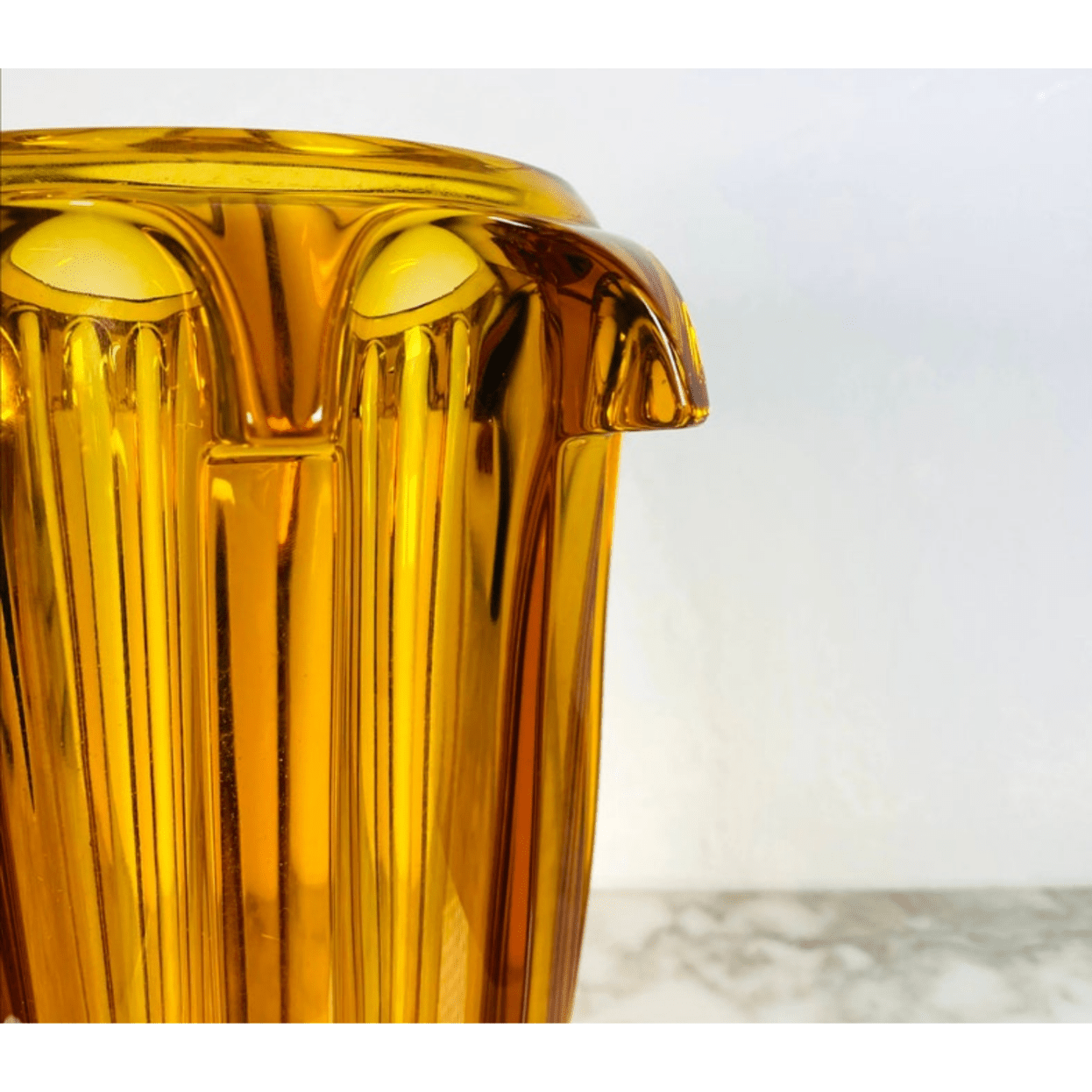 Finished in a luxurious, brilliant amber, this piece is hand cut, hand polished and is crafted of the highest quality materials.