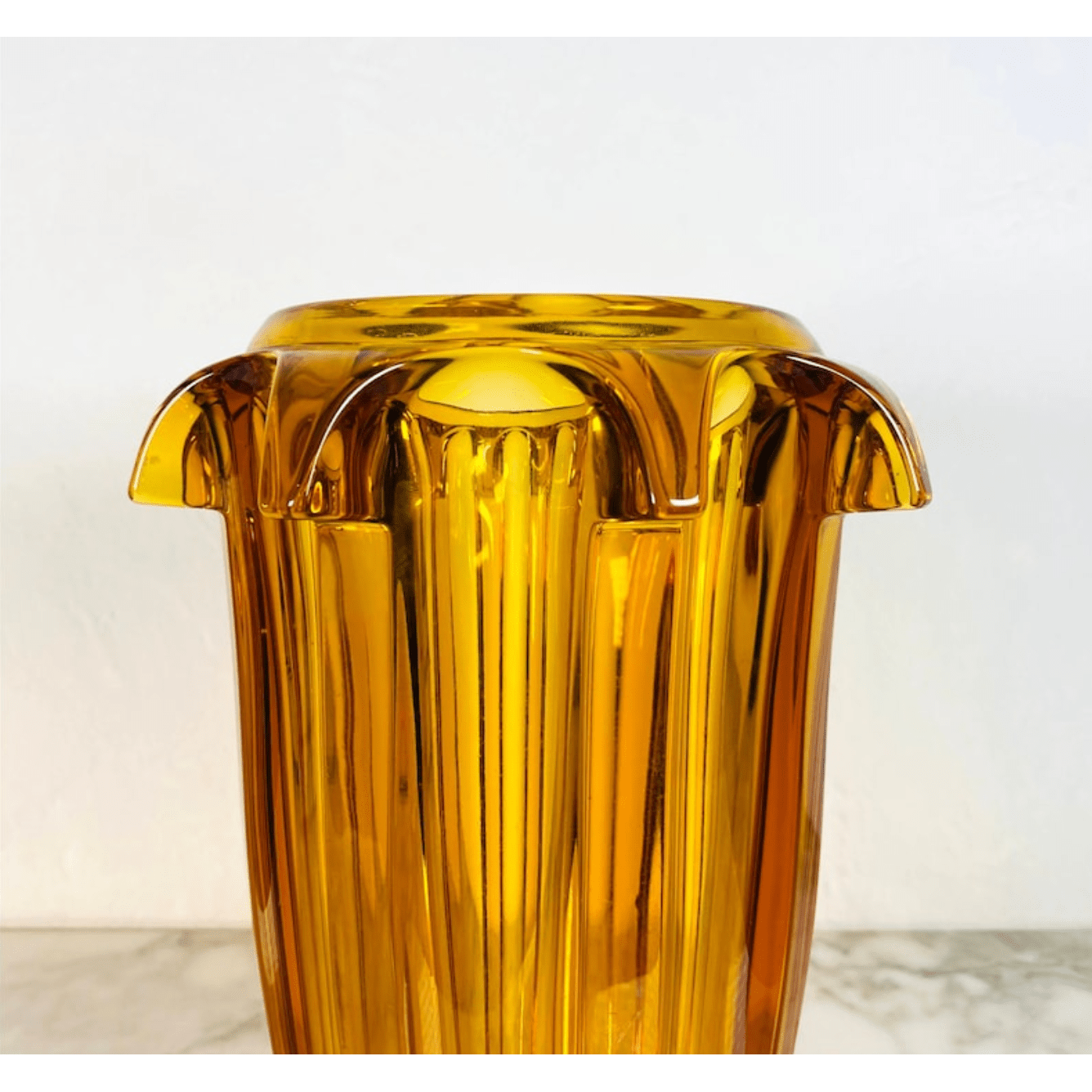 This exceptional and stunning Czech Art Deco art glass vase, designed by Rudolf Schrötter for Inwald and manufactured c1930.
