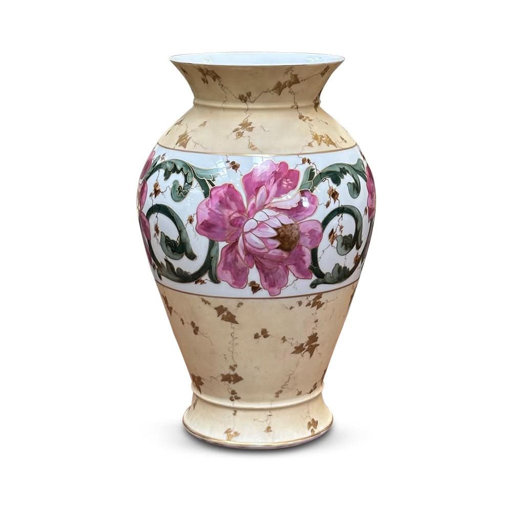 A great sized Limoges vase, perfect for your large blooms. This lovely vase is glazed in ivory and gold and features a floral design banding on a white background.
