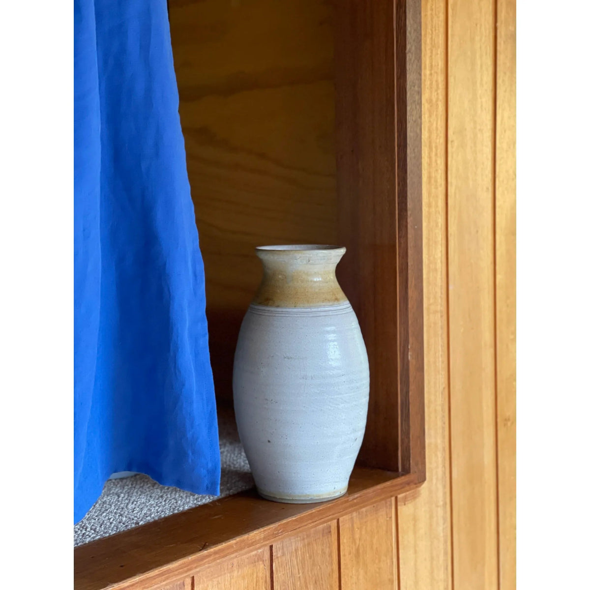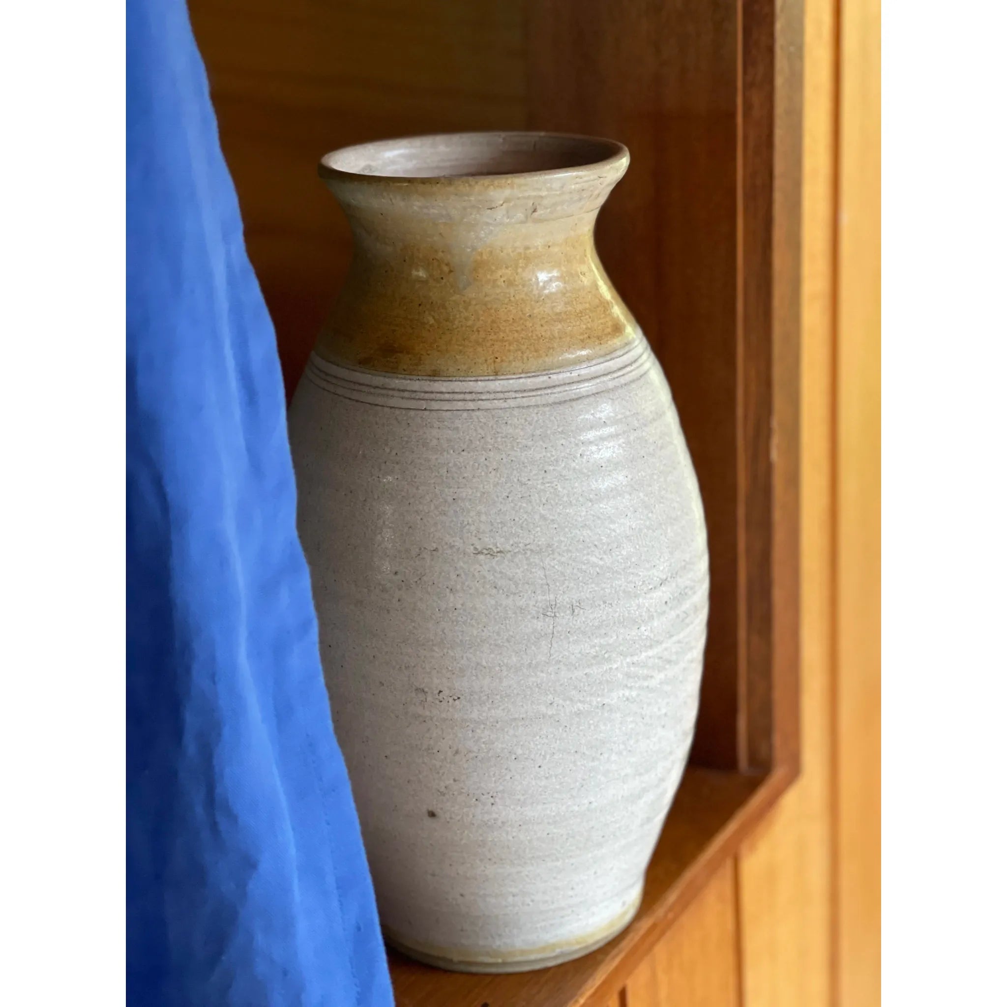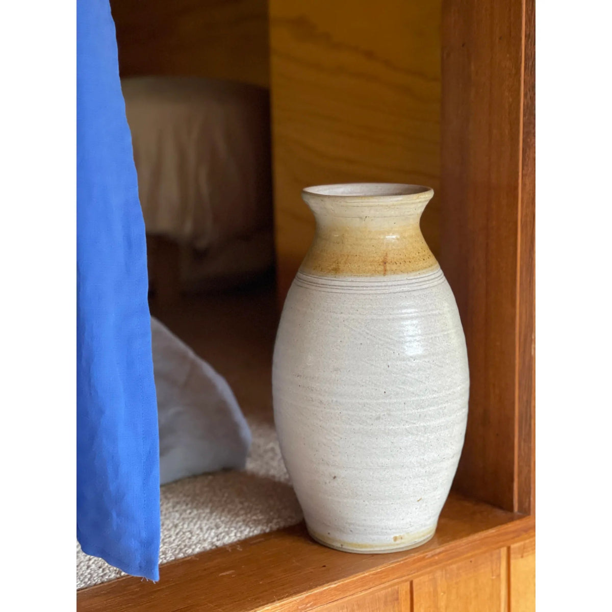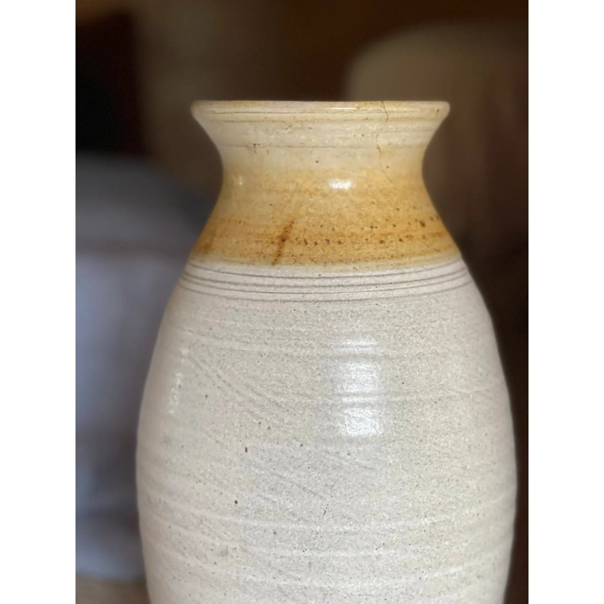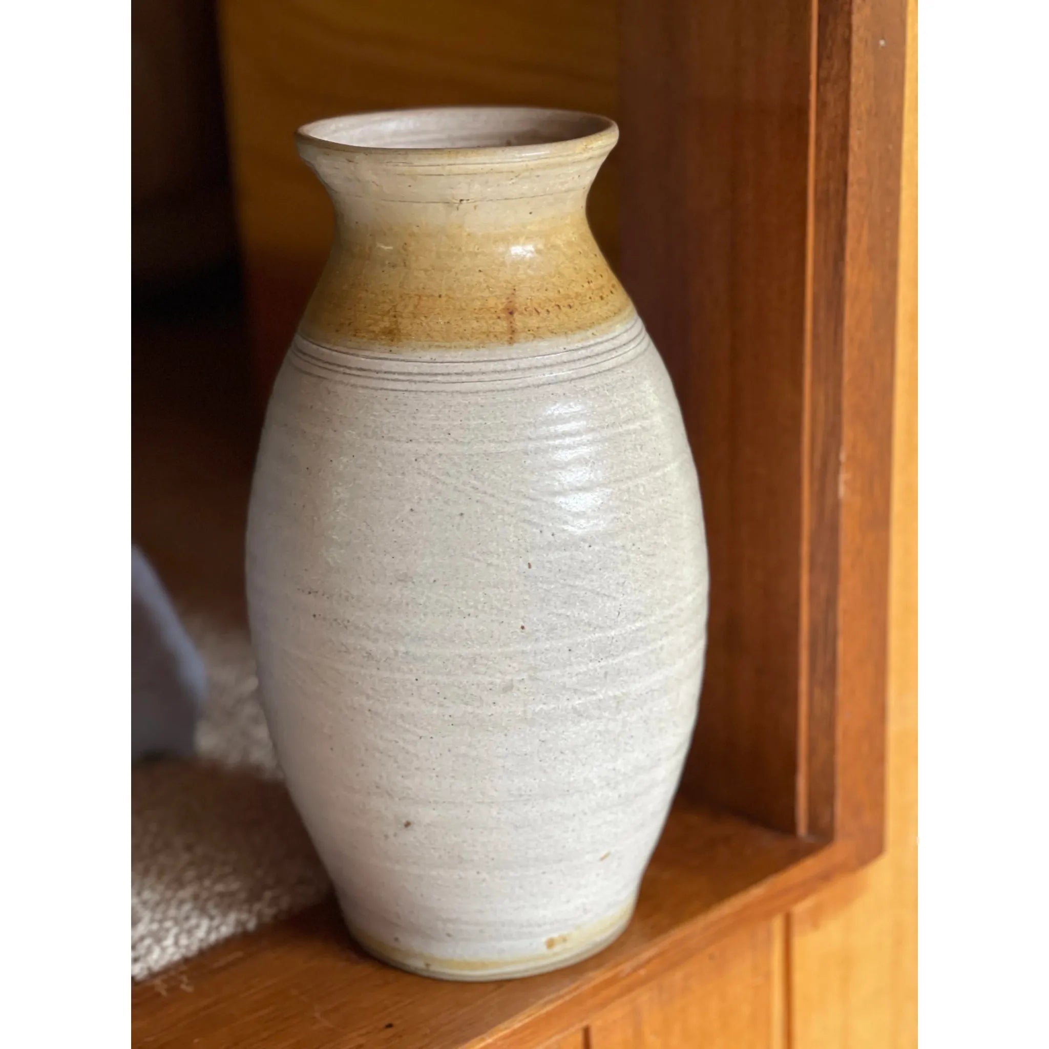 Large handmade Belltower Pottery vase with speckled glaze, made in Victoria.