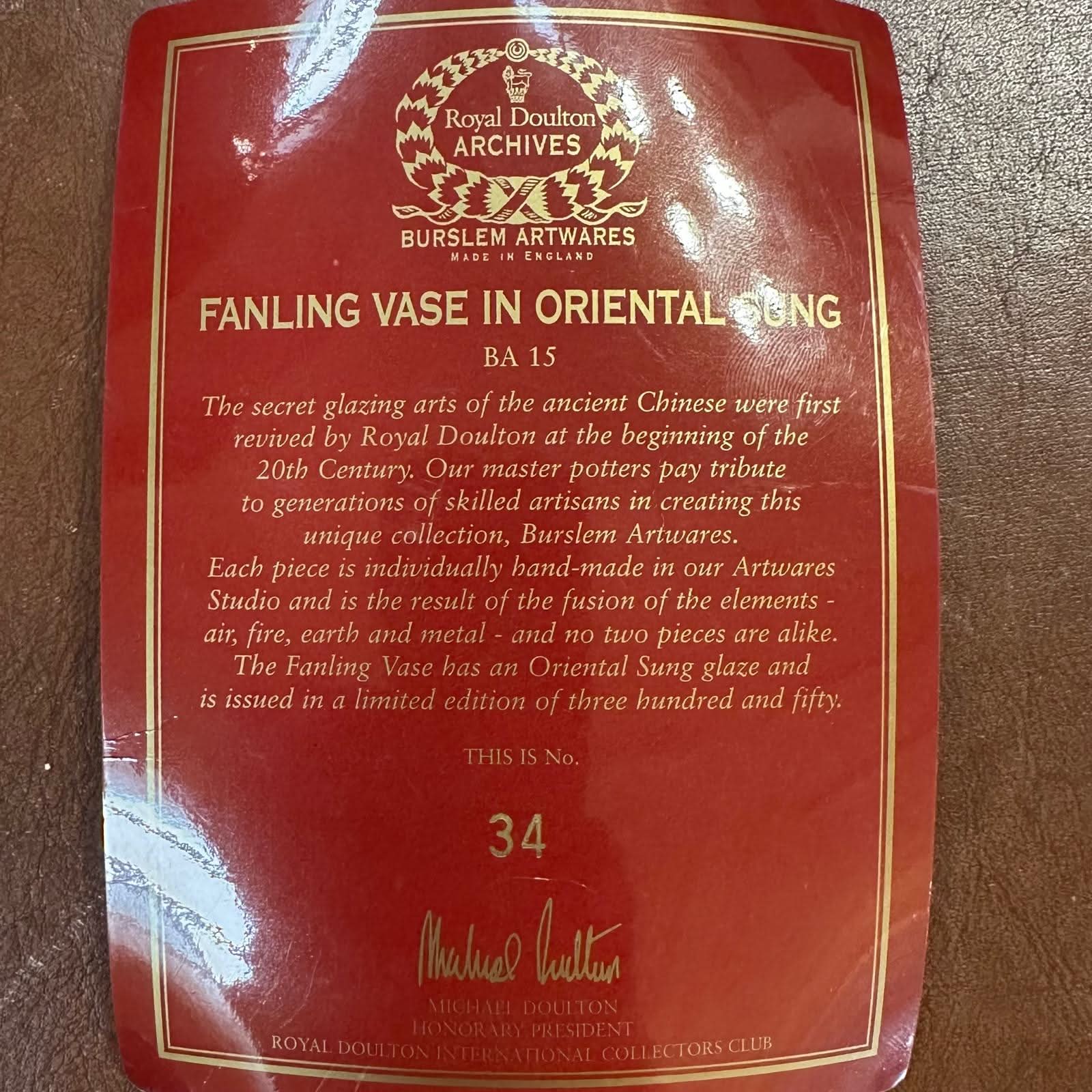 A later Royal Doulton Burslem Artwares flambe fanling vase c.2000.