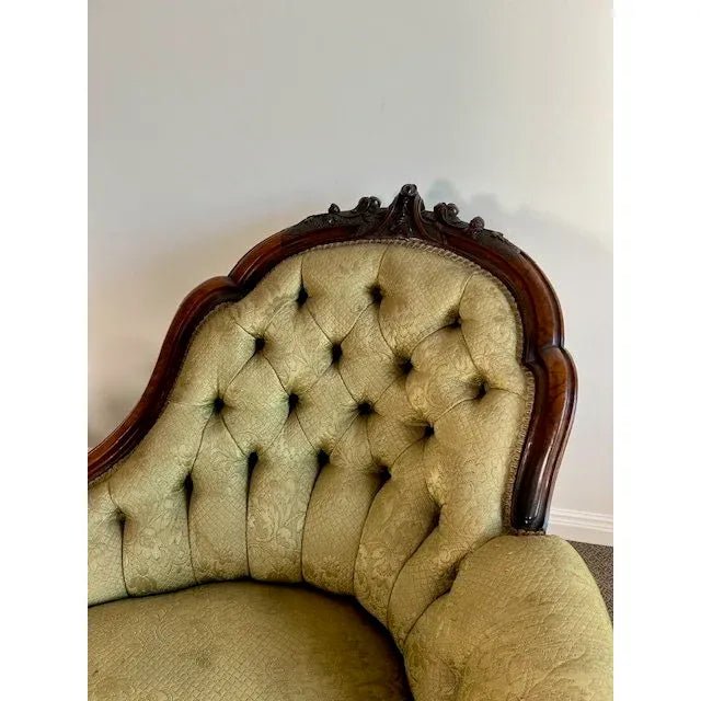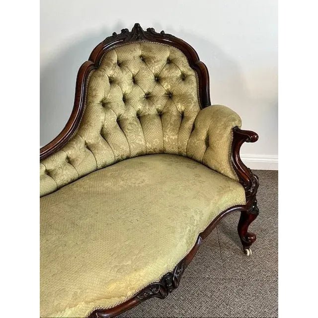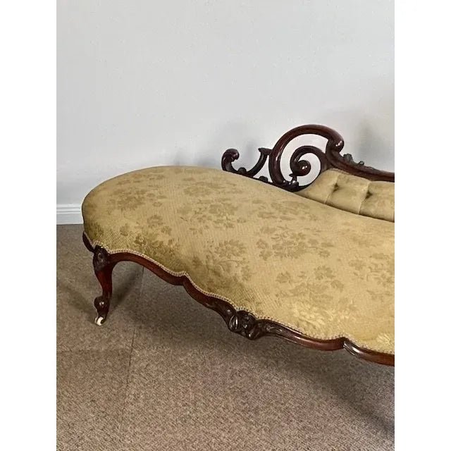 This is a very fine quality and superior high end example of a genuine antique mid 1800s genuine antique English Victorian period ‘Hi Low’ Chaise Lounge / Settee.