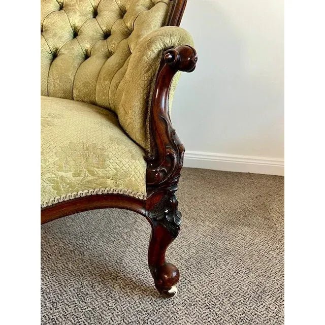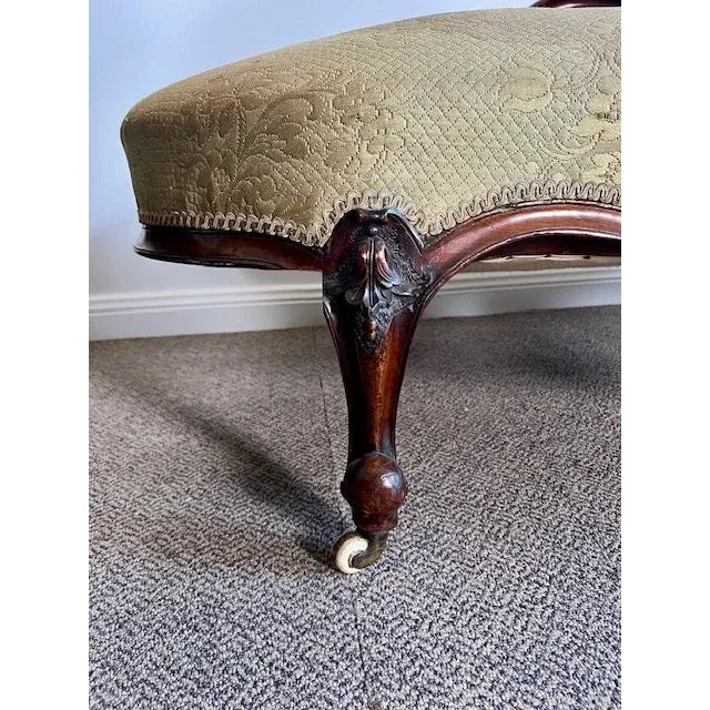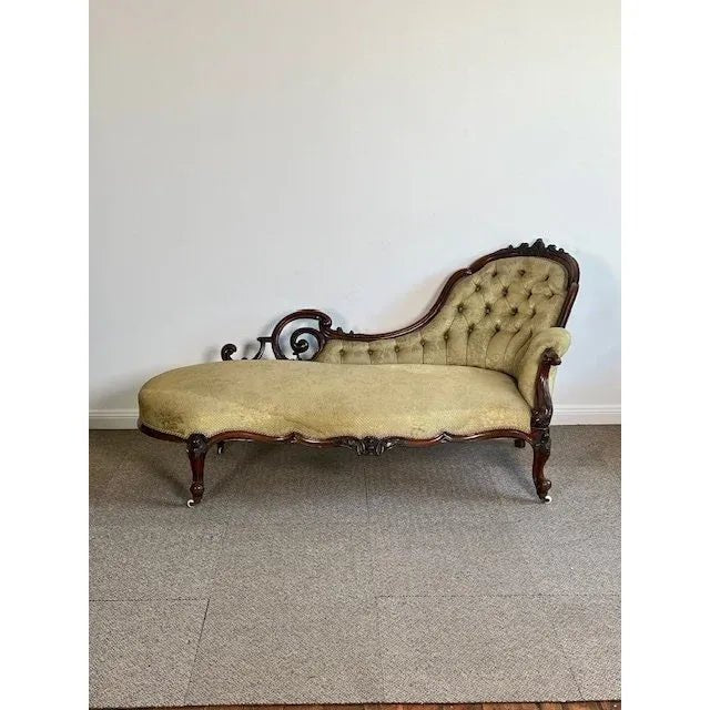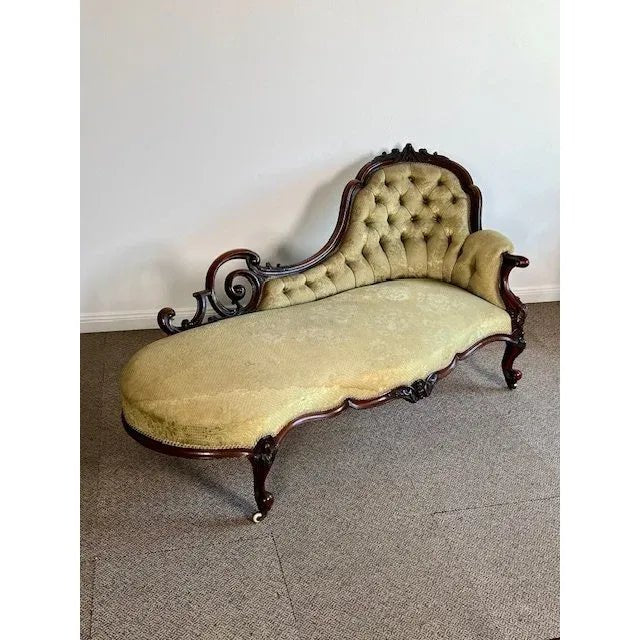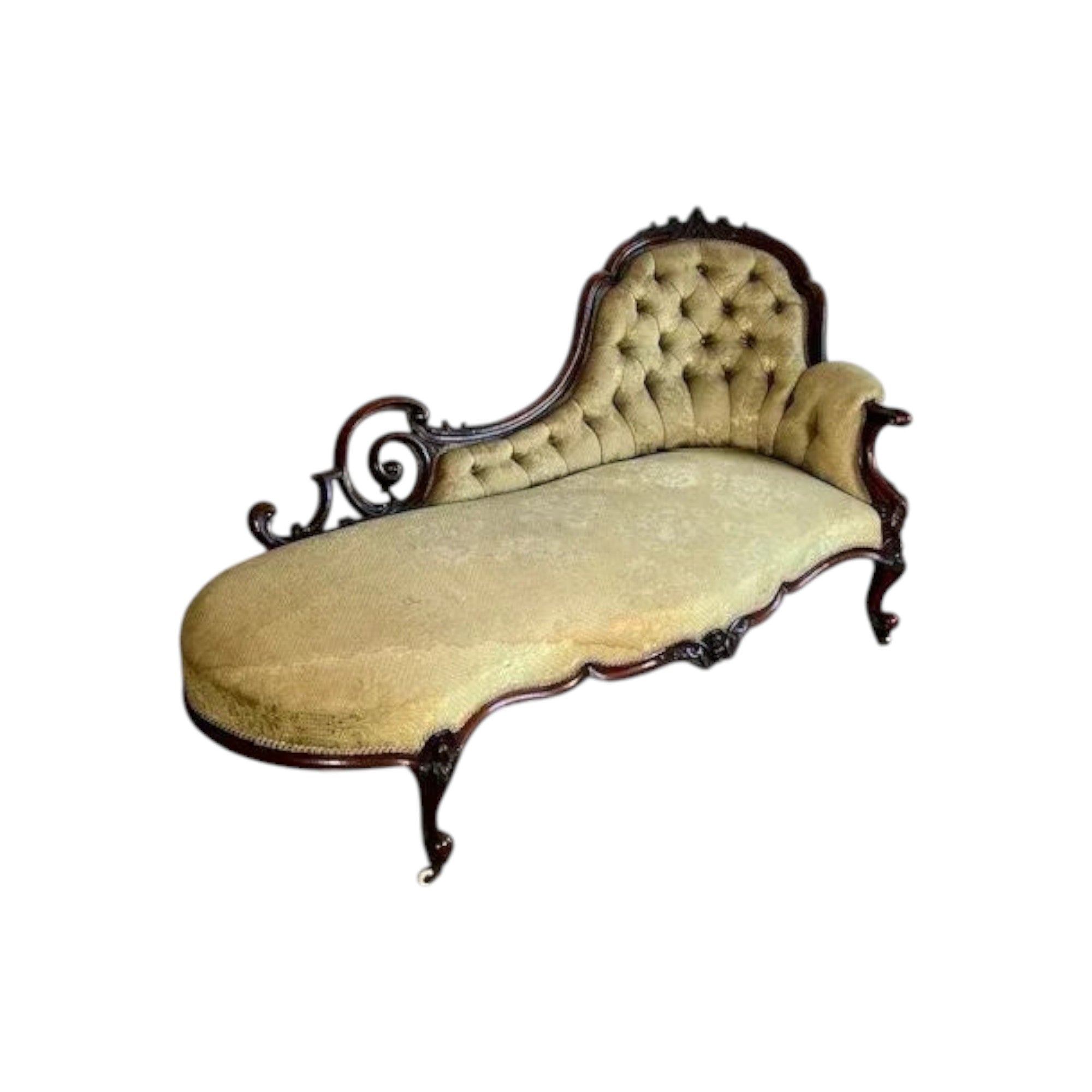 The Chaise is made in the popular French King Louis XV Rococo manner which can be seen in the pleasing curved and serpentine form plus the cabriole legs and scrolled hand grip etc. The ‘high low’ refers to the fact that the settee is not symmetrical like most lounges or settees and has a ‘high end’ and in this case an open ‘low end’.