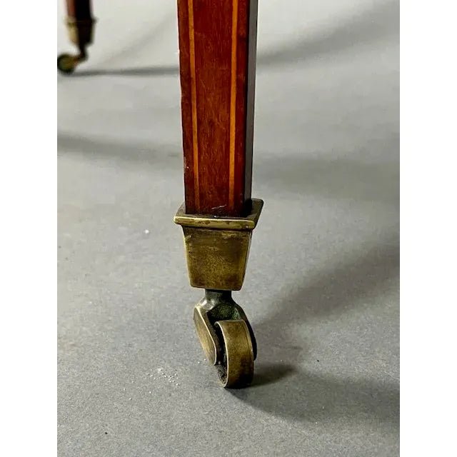 The central support column is well profiled and has flange of boldly carved flowers and foliage. There is a carved lower ring collar which compliments the top front edge molding. From the cylindrical base flow four shaped and tapered cabriole legs with boldy carved embellished knees and scrolled feet both featuring carved seed pods and fruit. Complete with original brass and porcelain castor assemblies. beneath the feet.