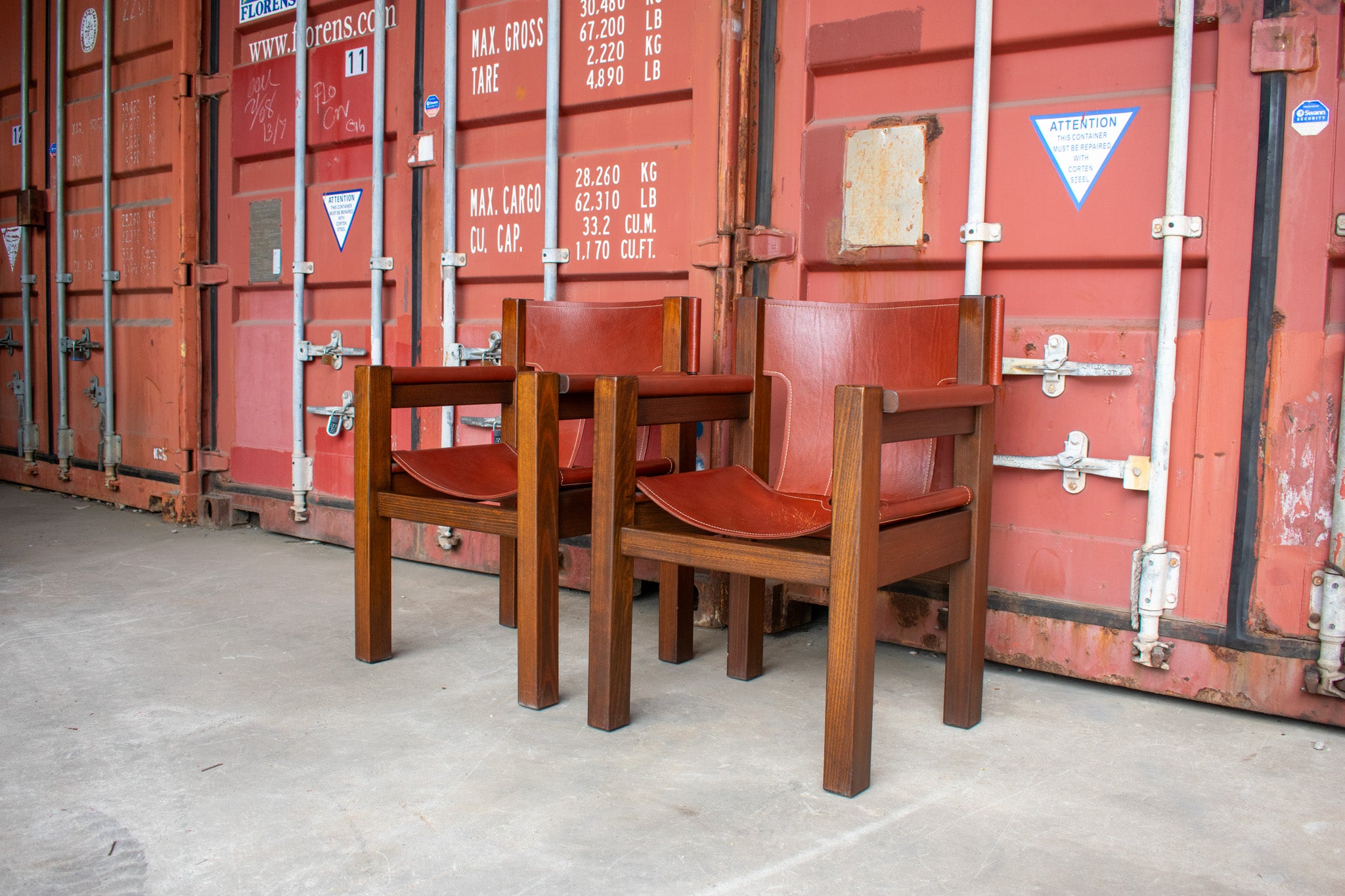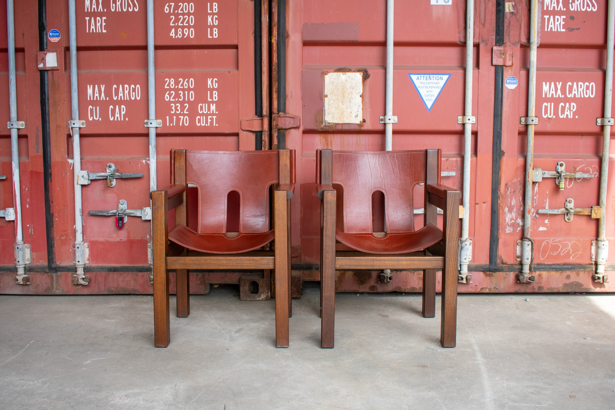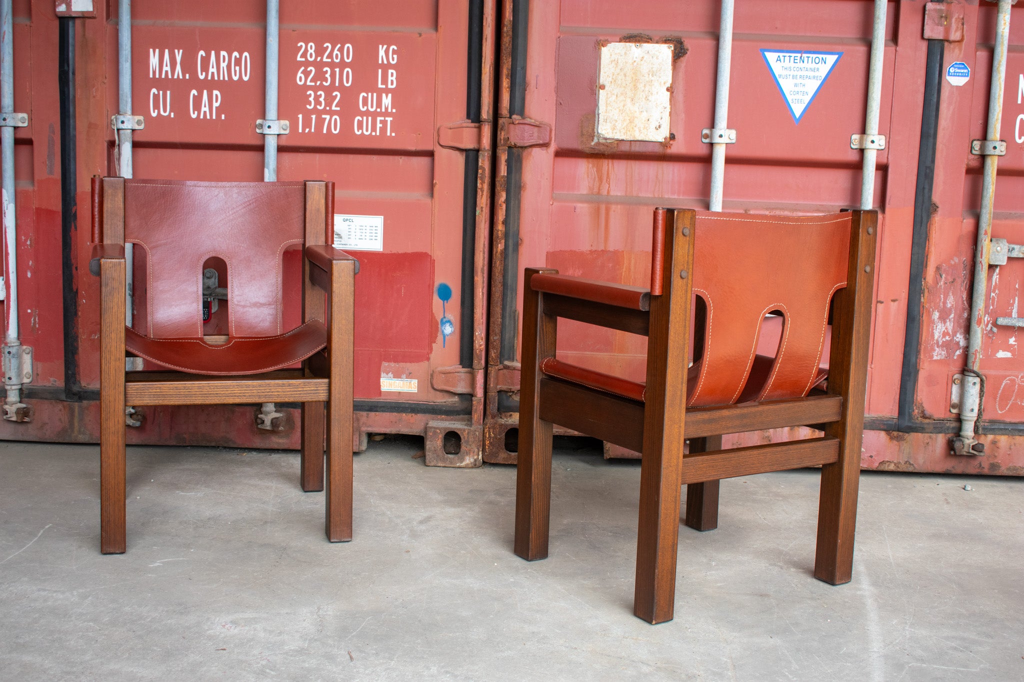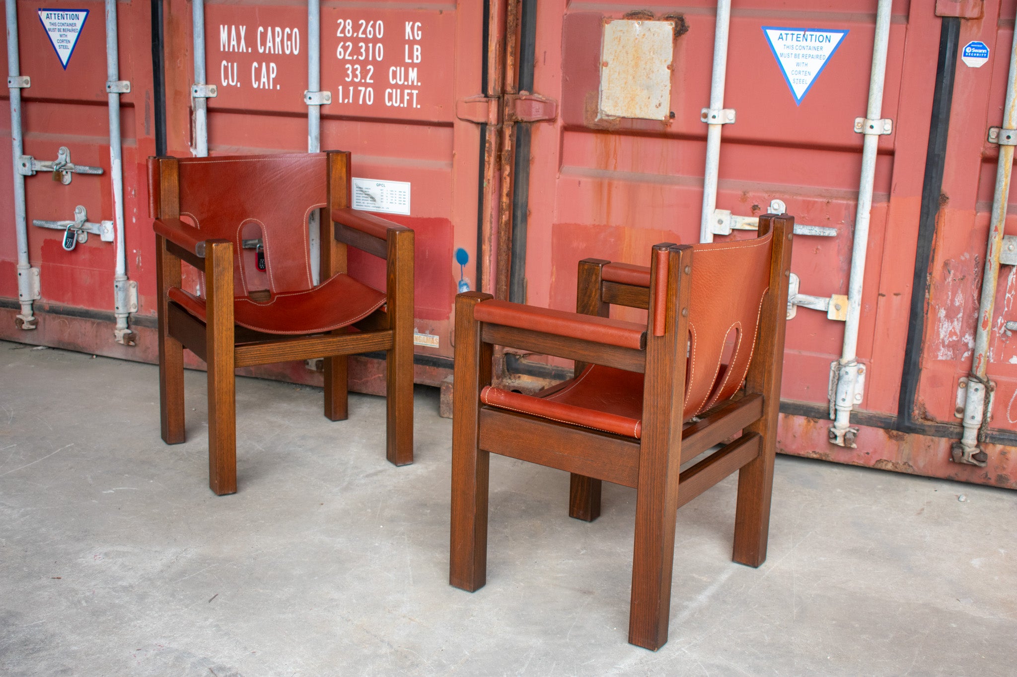 Description Pair of Matilda carver dining chairs designed by Gerald Easden. Crafted in Victorian ash with conker leather upholstery, these rare Australian modernist chairs feature Easden’s distinctive design language. The frames have been checked and re-glued where required, ensuring stability and longevity. Upholstery shows some wear in the form of scratches and light cracking, but the leather remains strong and supple.