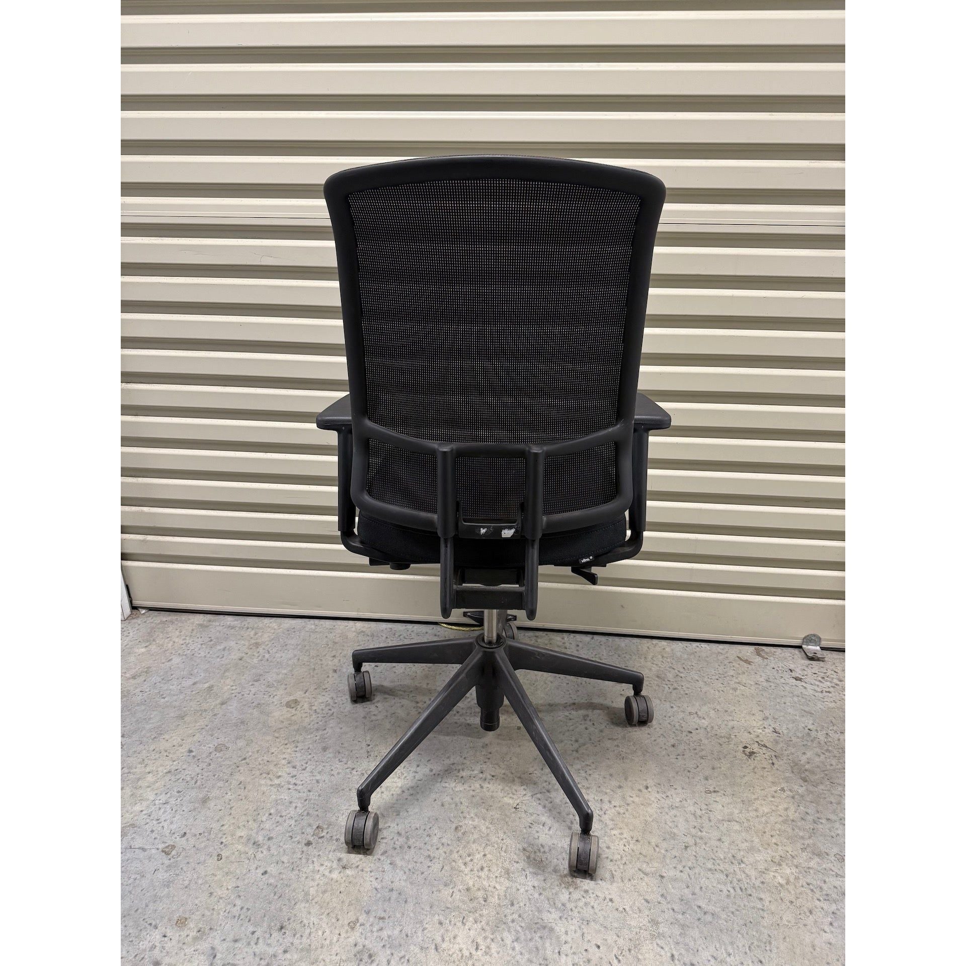 The AM Chair features a flexible mesh back that adapts to the user’s posture, an automatic synchro mechanism that adjusts resistance according to body weight, and finely adjustable armrests for optimal support throughout the day. Its lightweight frame and refined proportions give it a modern, understated profile that integrates seamlessly into any workspace.