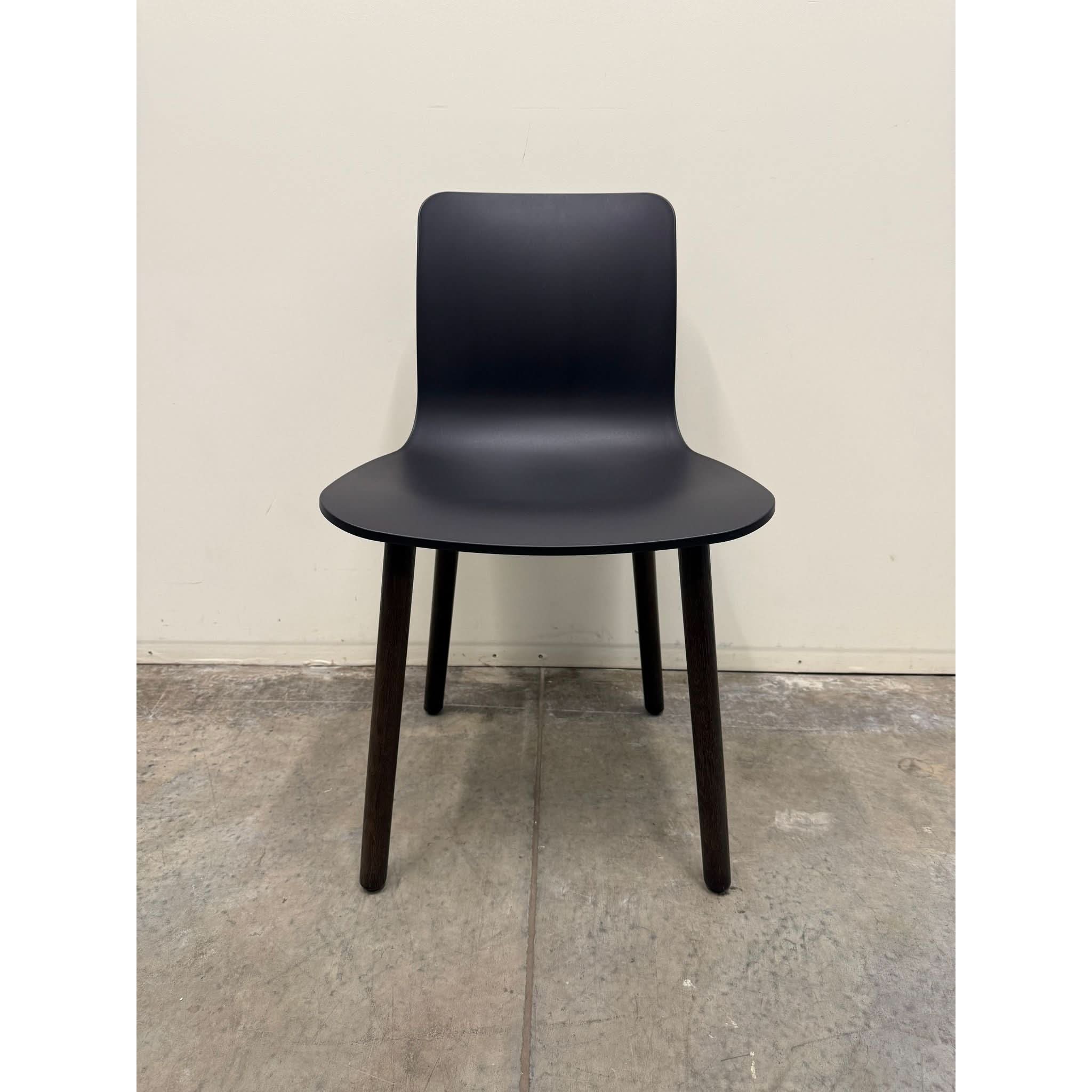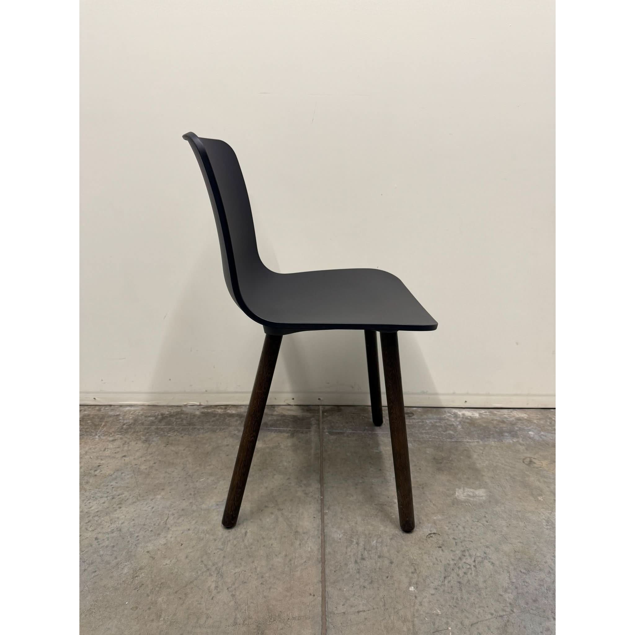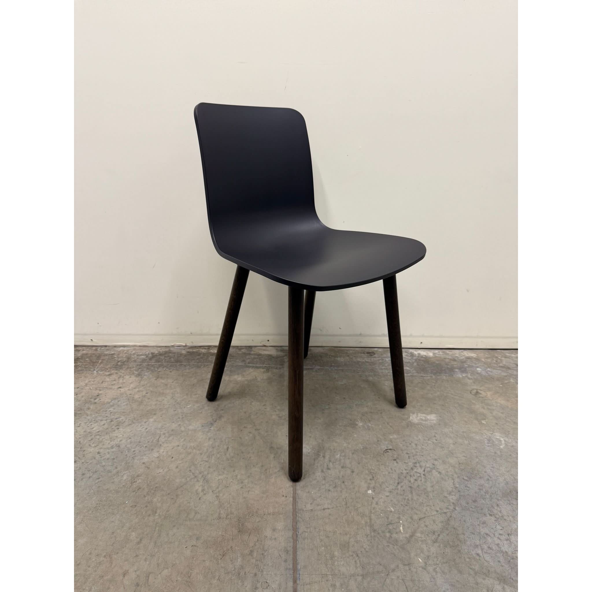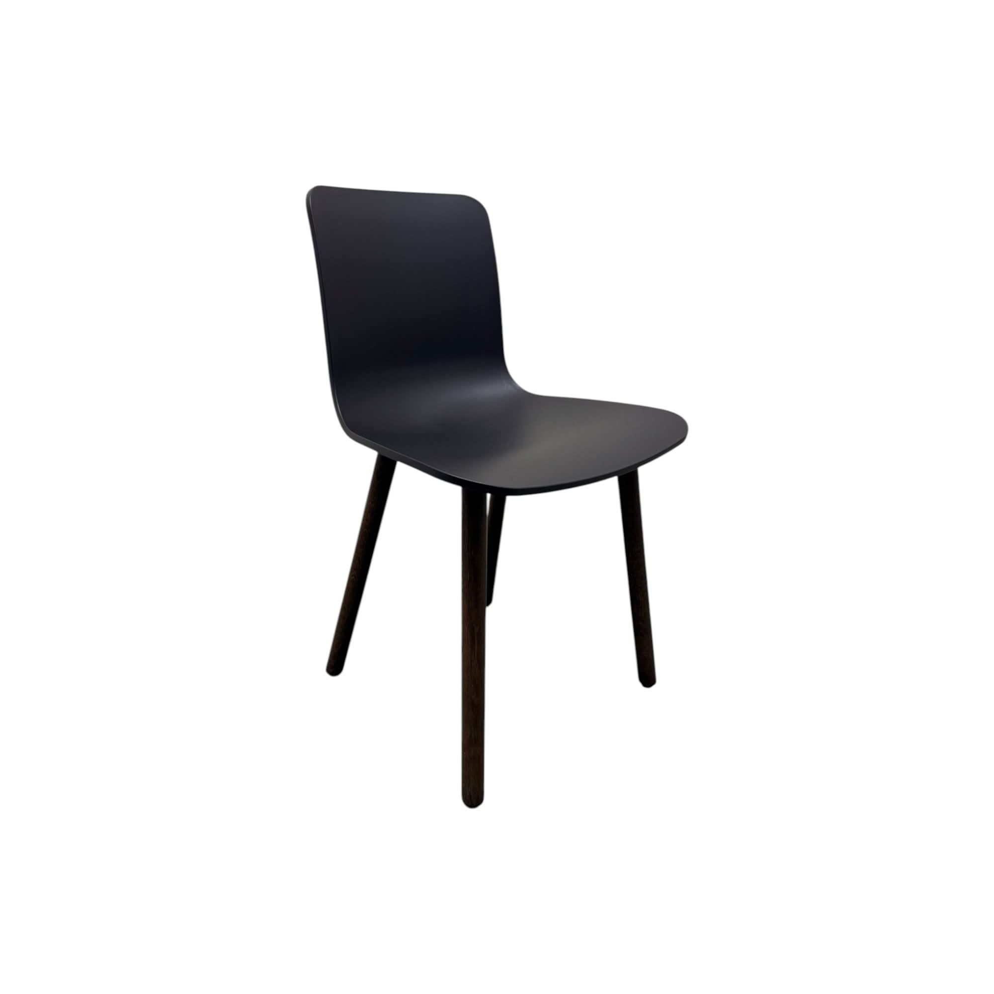 The Vitra HAL Wood Chair, designed by Jasper Morrison, is a clean, contemporary seating solution that brings together understated form and functional comfort. The matt black polypropylene seat shell is ergonomically shaped and supported by elegant solid dark oak legs, making it ideal for dining, conference, or casual seating environments.