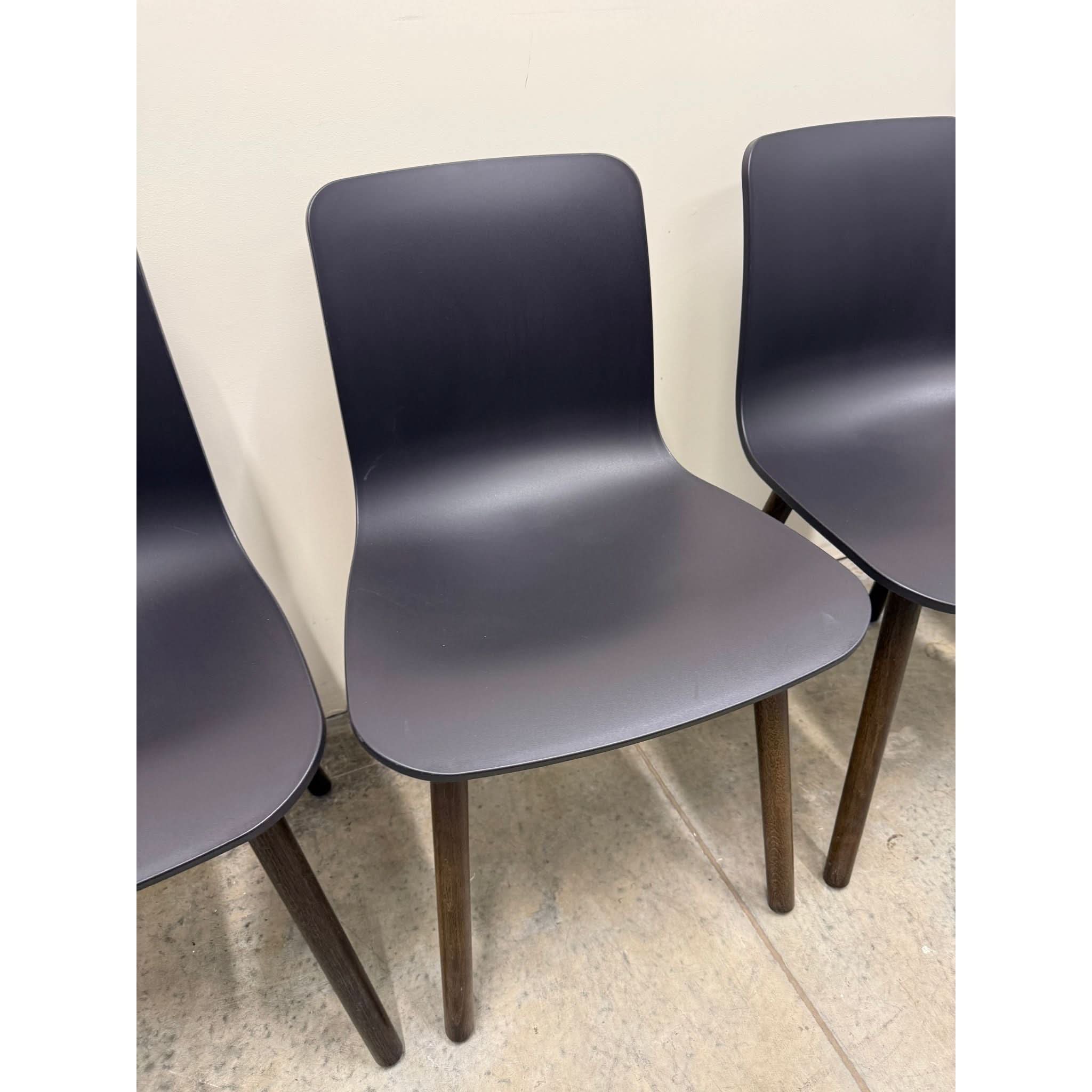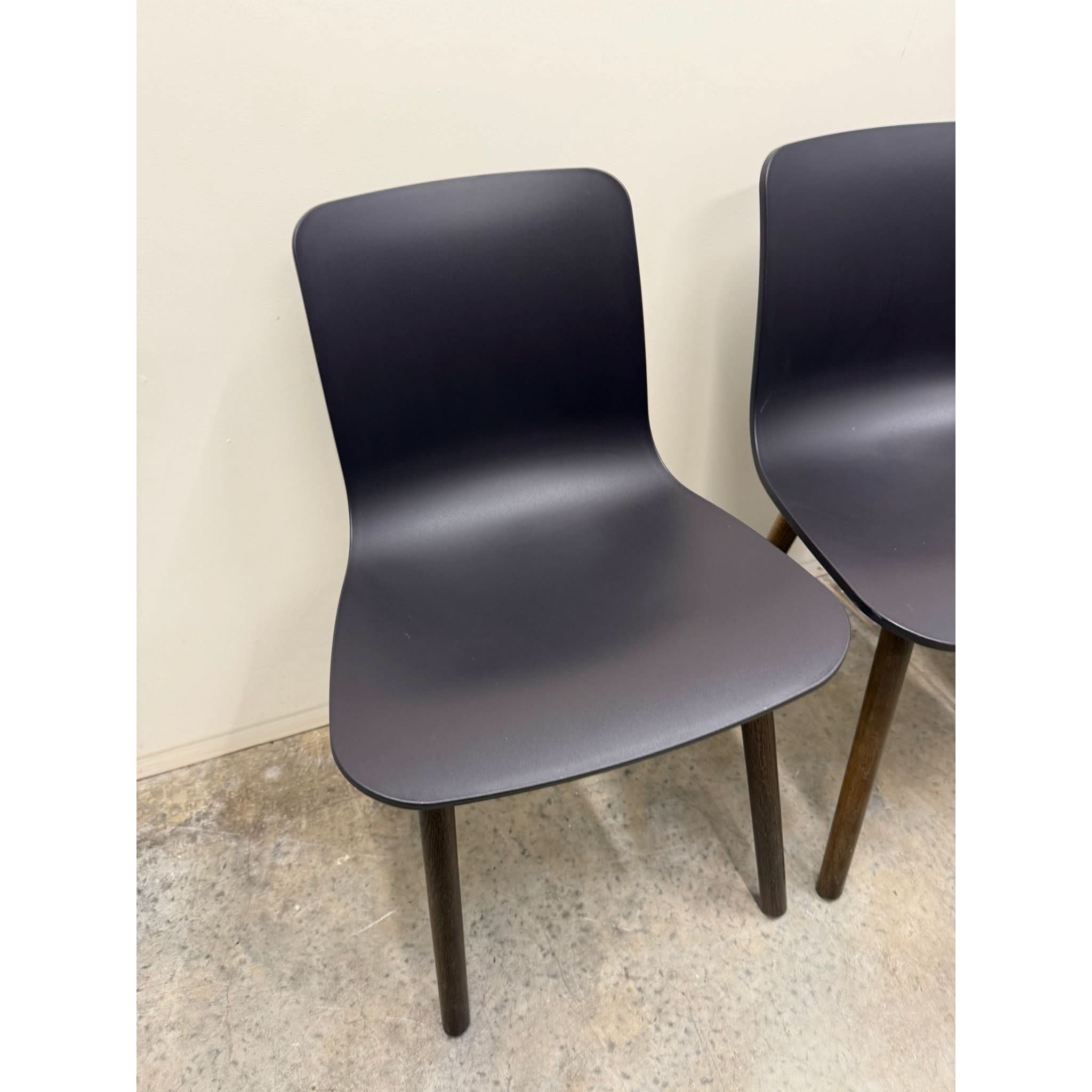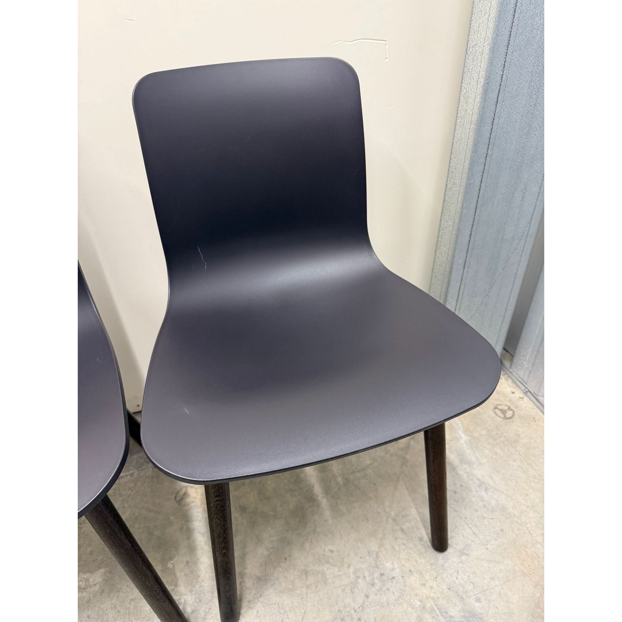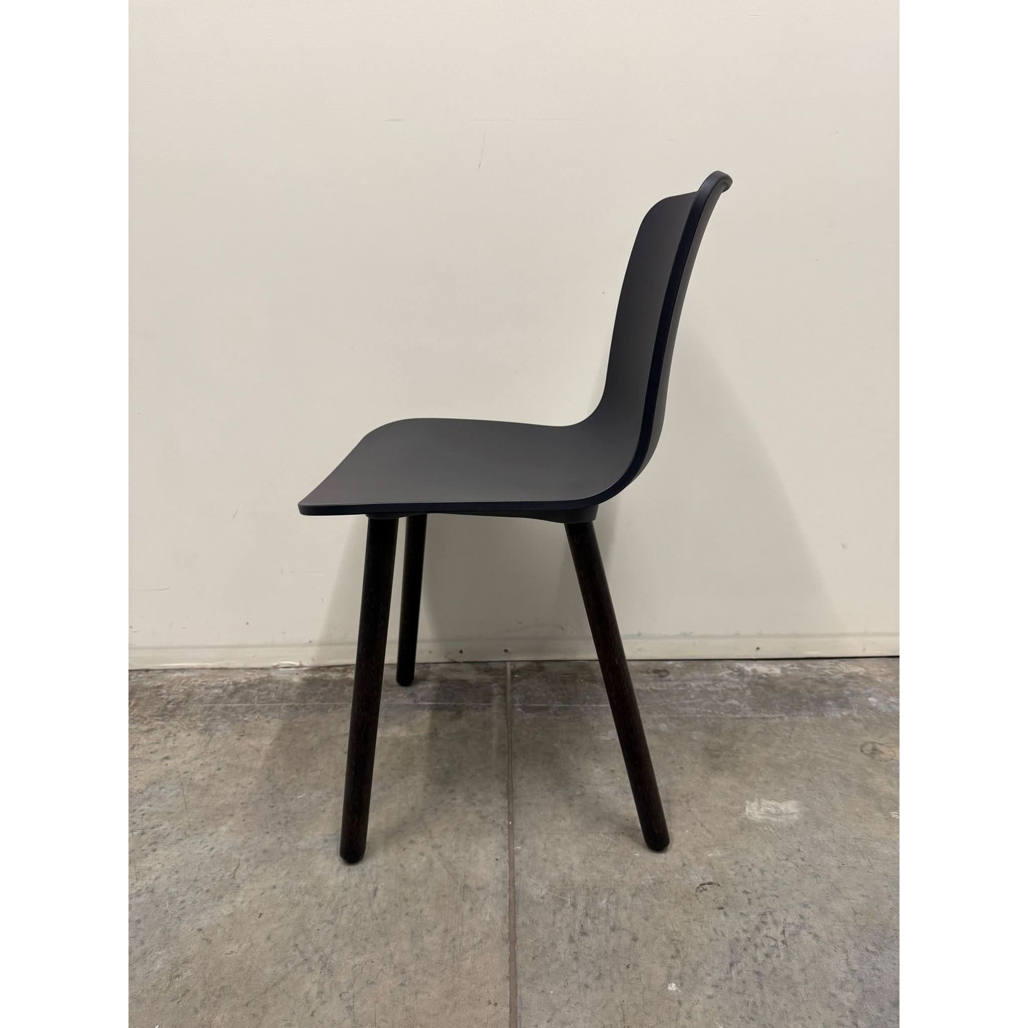 The Vitra HAL Wood Chair, designed by Jasper Morrison, is a clean, contemporary seating solution that brings together understated form and functional comfort. The matt black polypropylene seat shell is ergonomically shaped and supported by elegant solid dark oak legs, making it ideal for dining, conference, or casual seating environments.