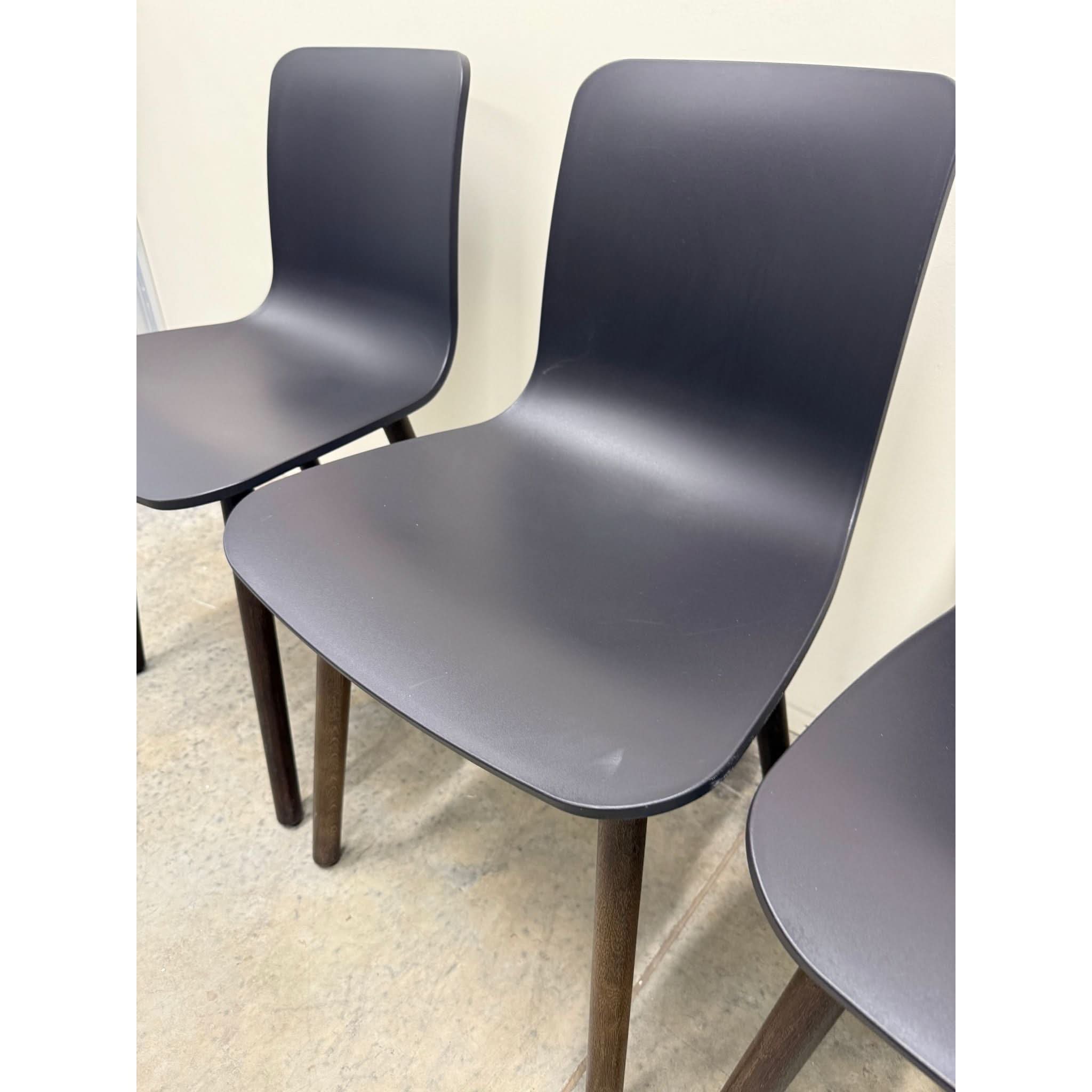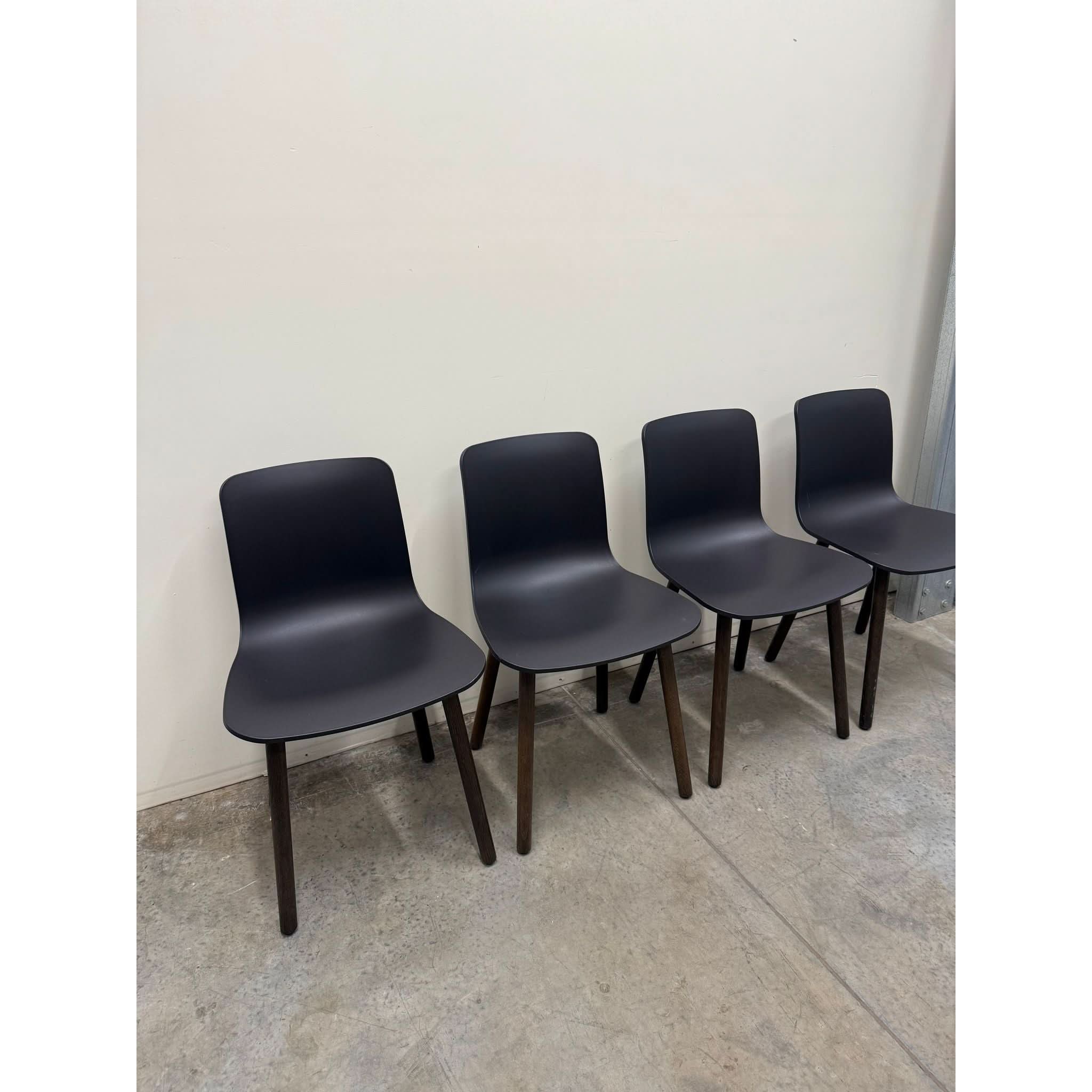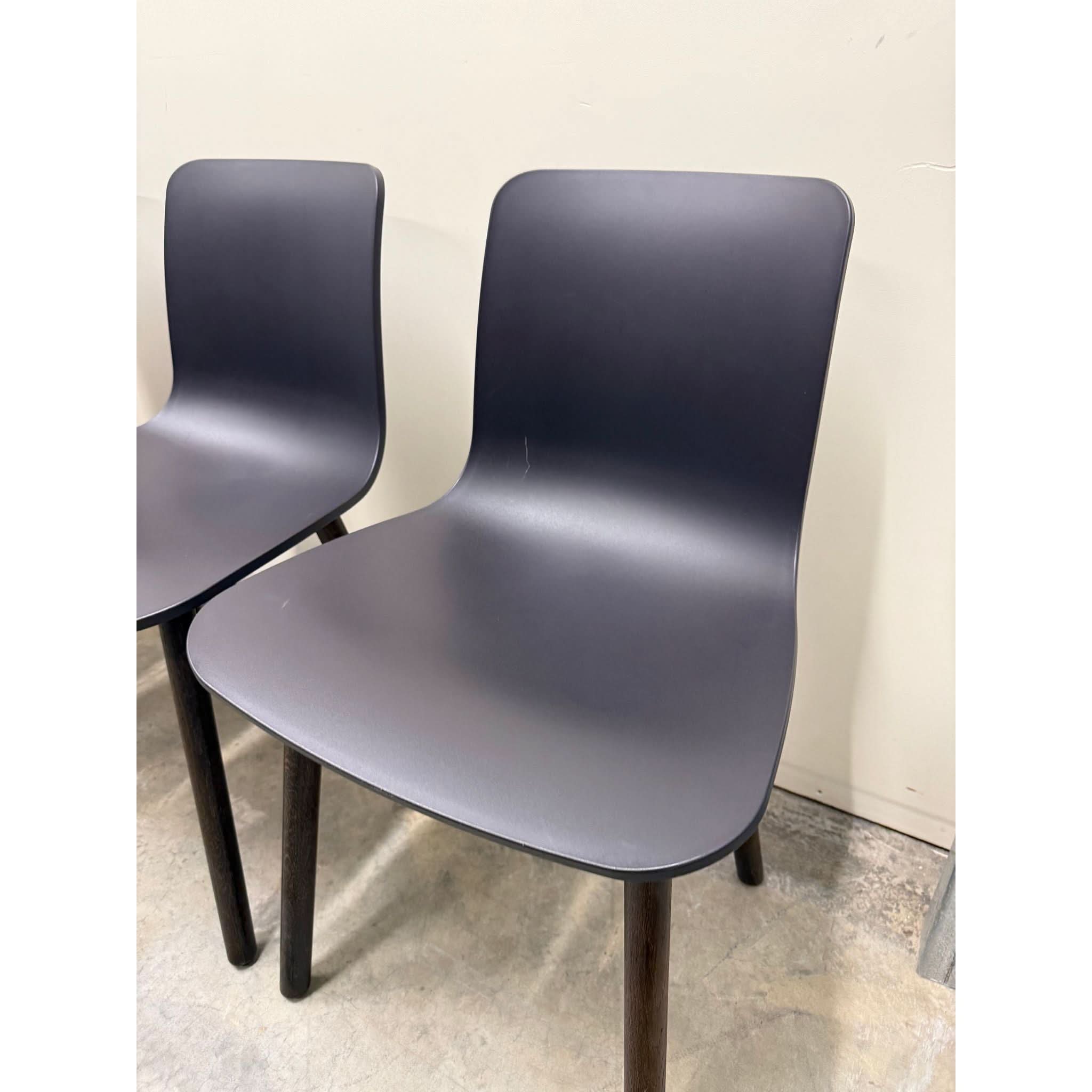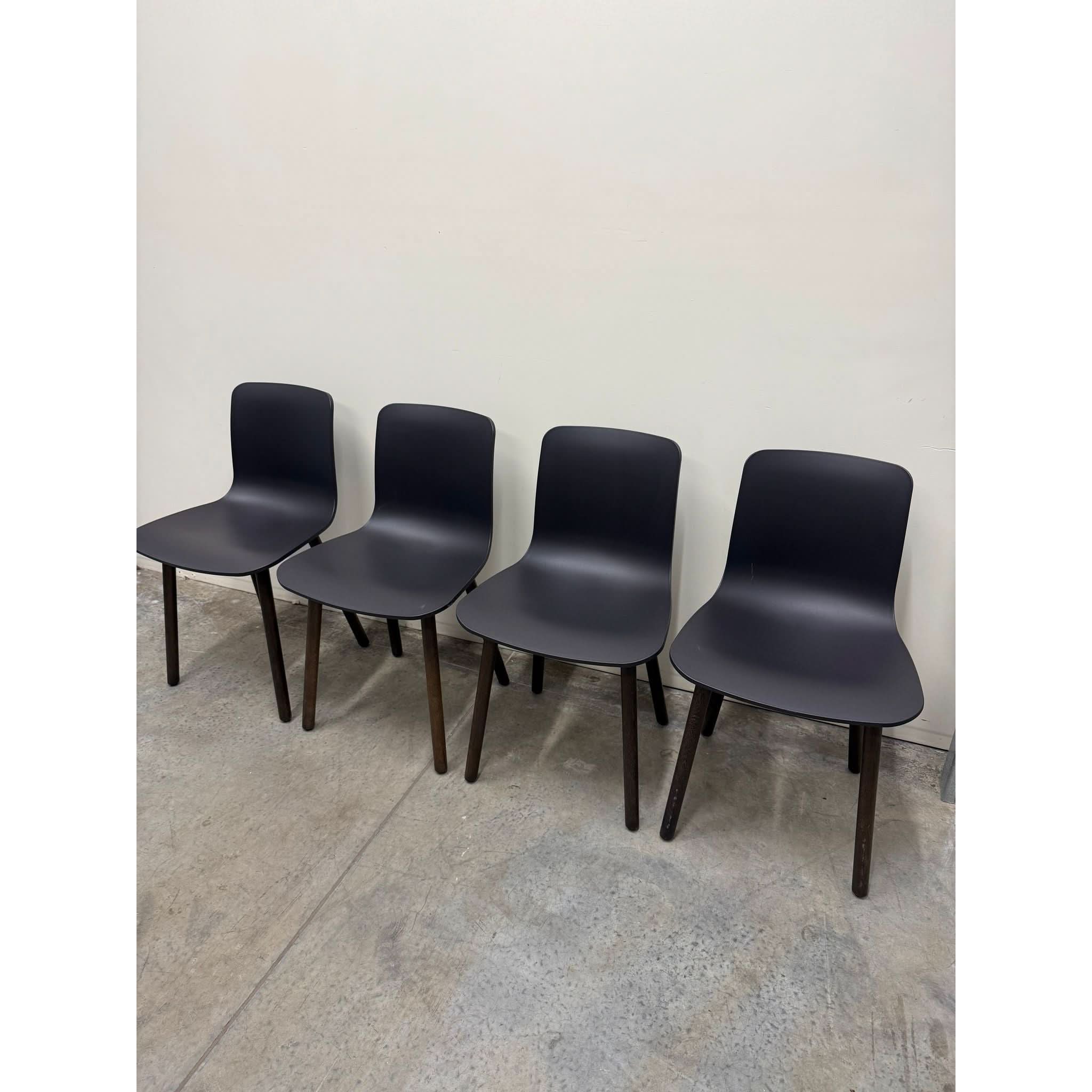 The Vitra HAL Wood Chair, designed by Jasper Morrison, is a clean, contemporary seating solution that brings together understated form and functional comfort. The matt black polypropylene seat shell is ergonomically shaped and supported by elegant solid dark oak legs, making it ideal for dining, conference, or casual seating environments.