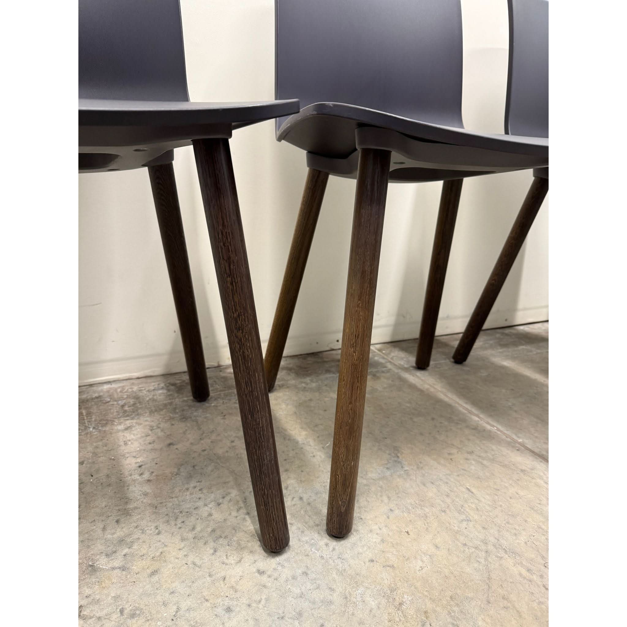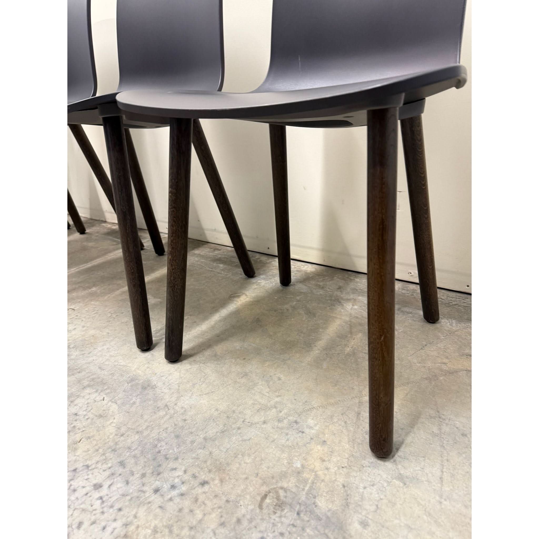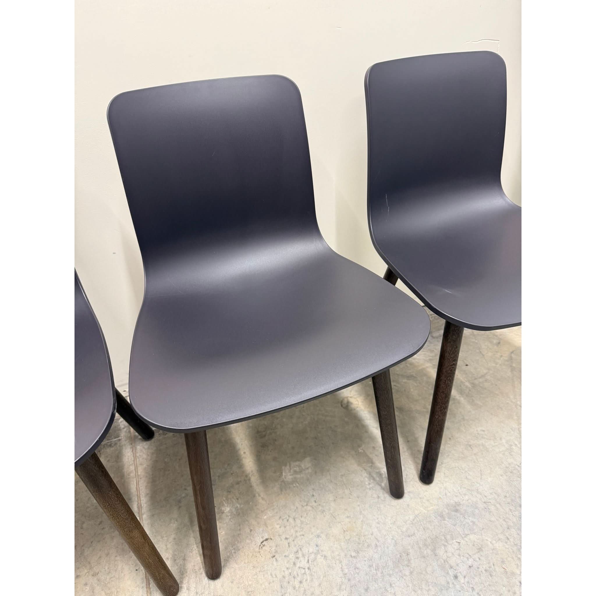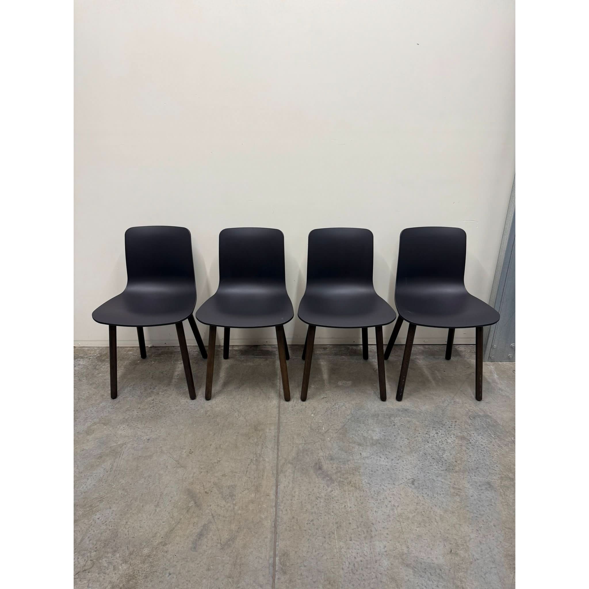 The Vitra HAL Wood Chair, designed by Jasper Morrison, is a clean, contemporary seating solution that brings together understated form and functional comfort. The matt black polypropylene seat shell is ergonomically shaped and supported by elegant solid dark oak legs, making it ideal for dining, conference, or casual seating environments.