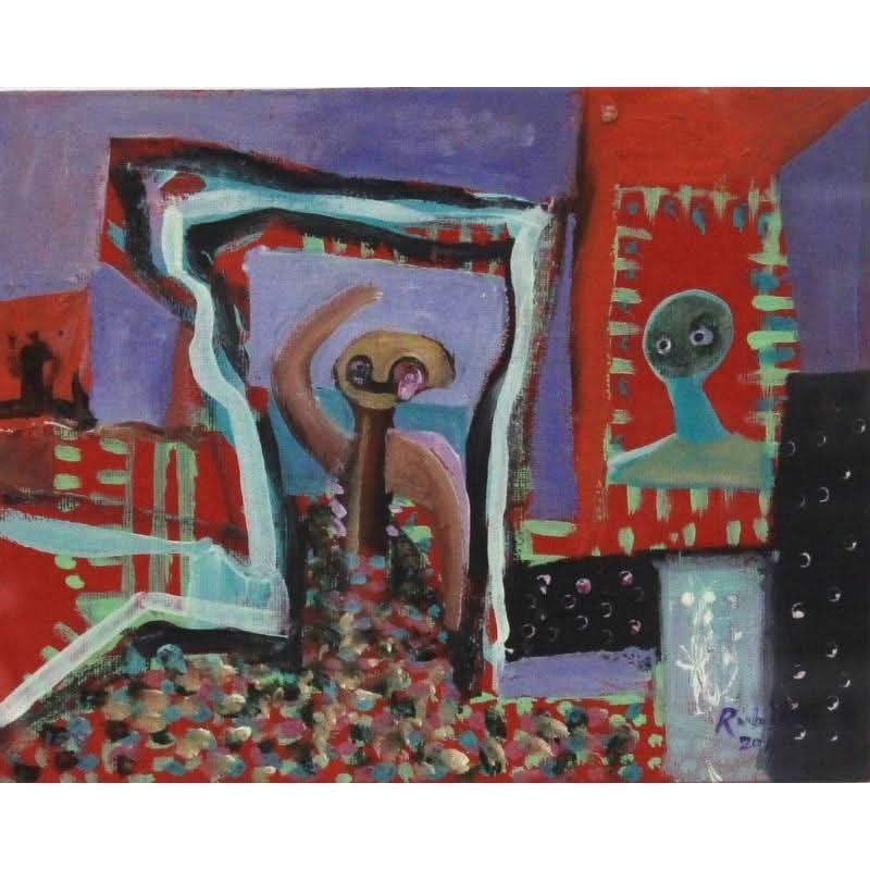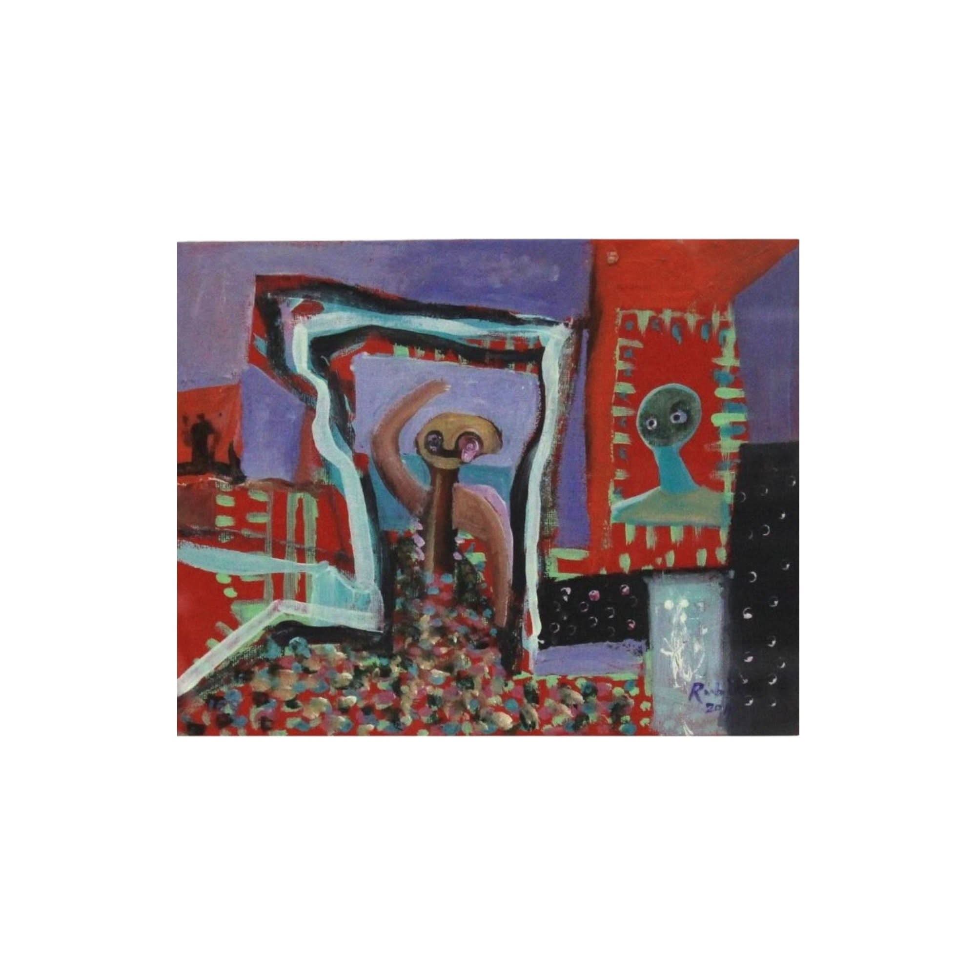 “From the Beach Goes Hi!” by acclaimed Artist Victor Rubin. Measures H 20 x W 25cm. Acrylic on canvas.