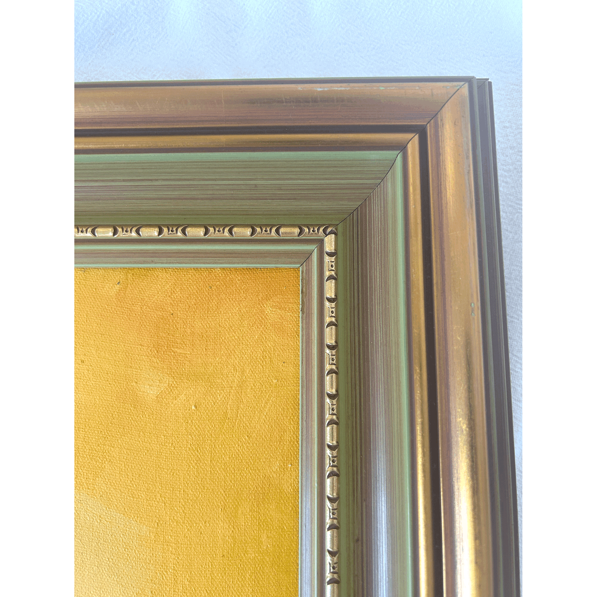 The artwork is in very good vintage condition however the timber frame painted in gold and green detail, does show some signs of age.