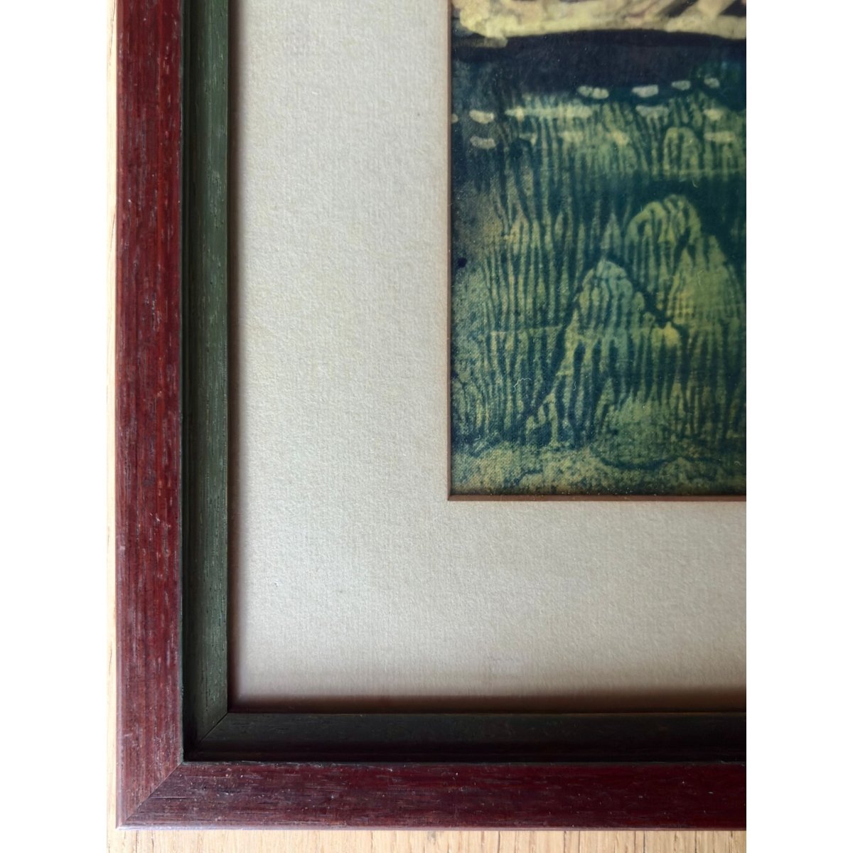 Professionally framed in a vintage teak frame and glazed with UV resistant glass.
