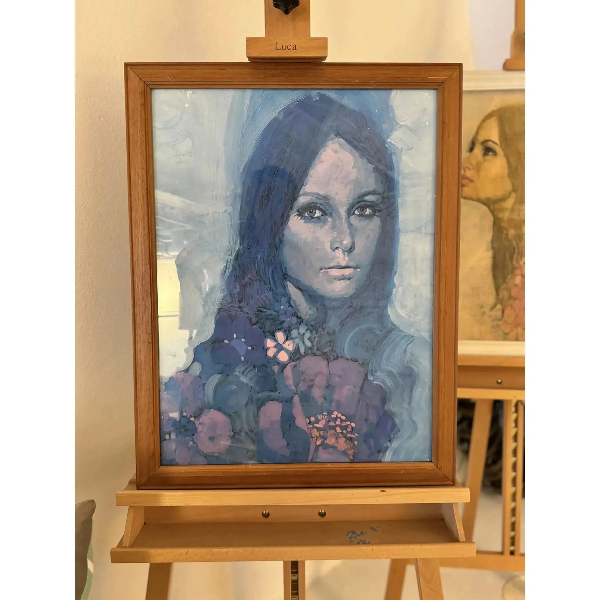 This is a stunning example of Michael Johnson's print of Think Indigo. Increasingly difficult to source we have travelled a long way to find this gorgeous example. She has no fading or damage to the print and is set within a timber frame.