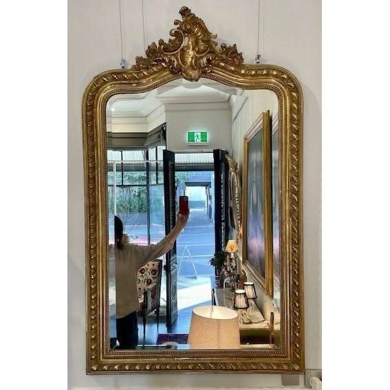 A very nice Antique French water gilded mirror with shaped bevelled edge glass and cartouche top. size 1443mm h x 900mm w