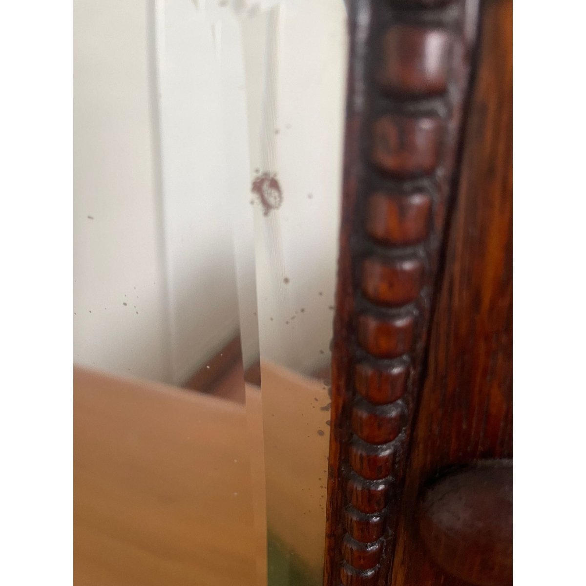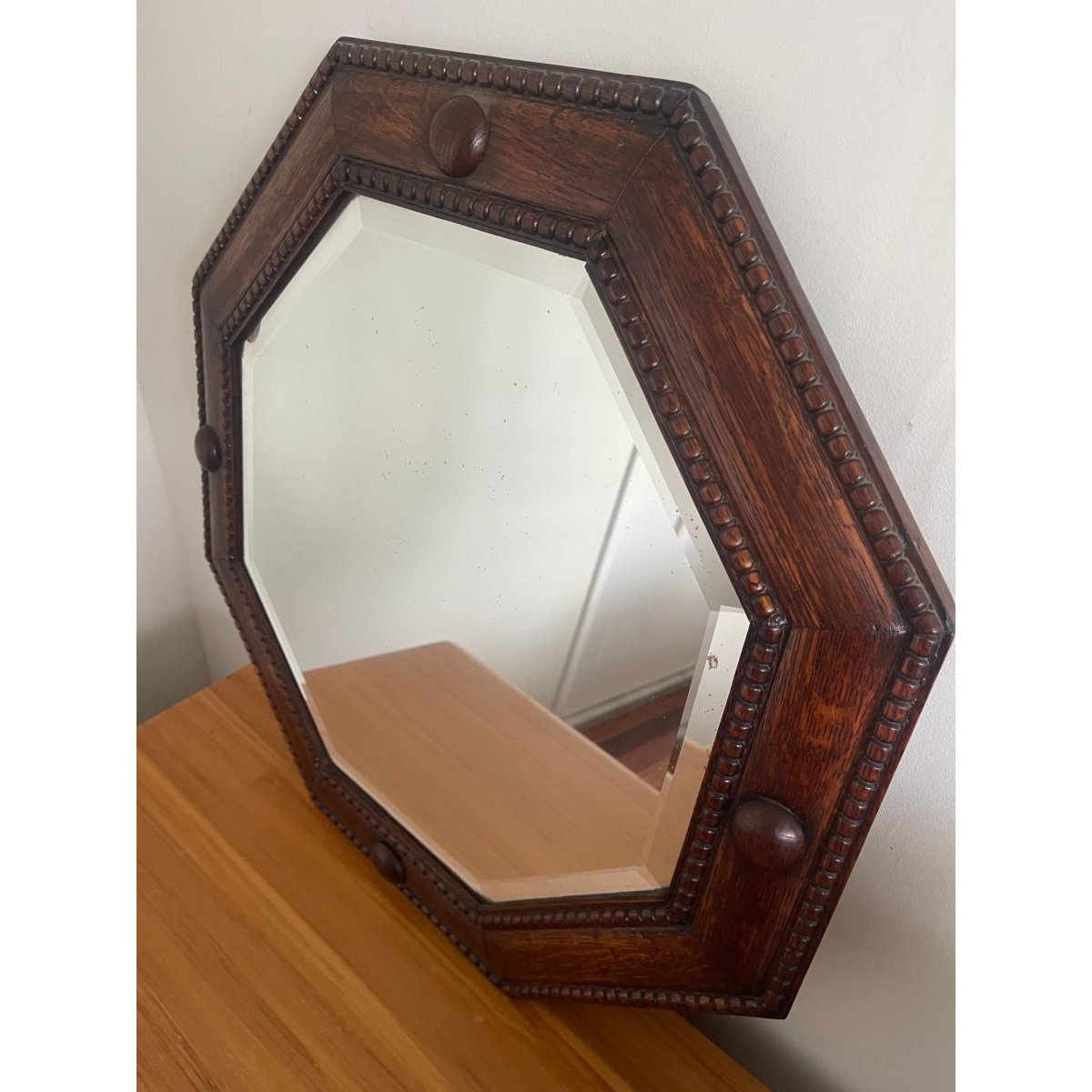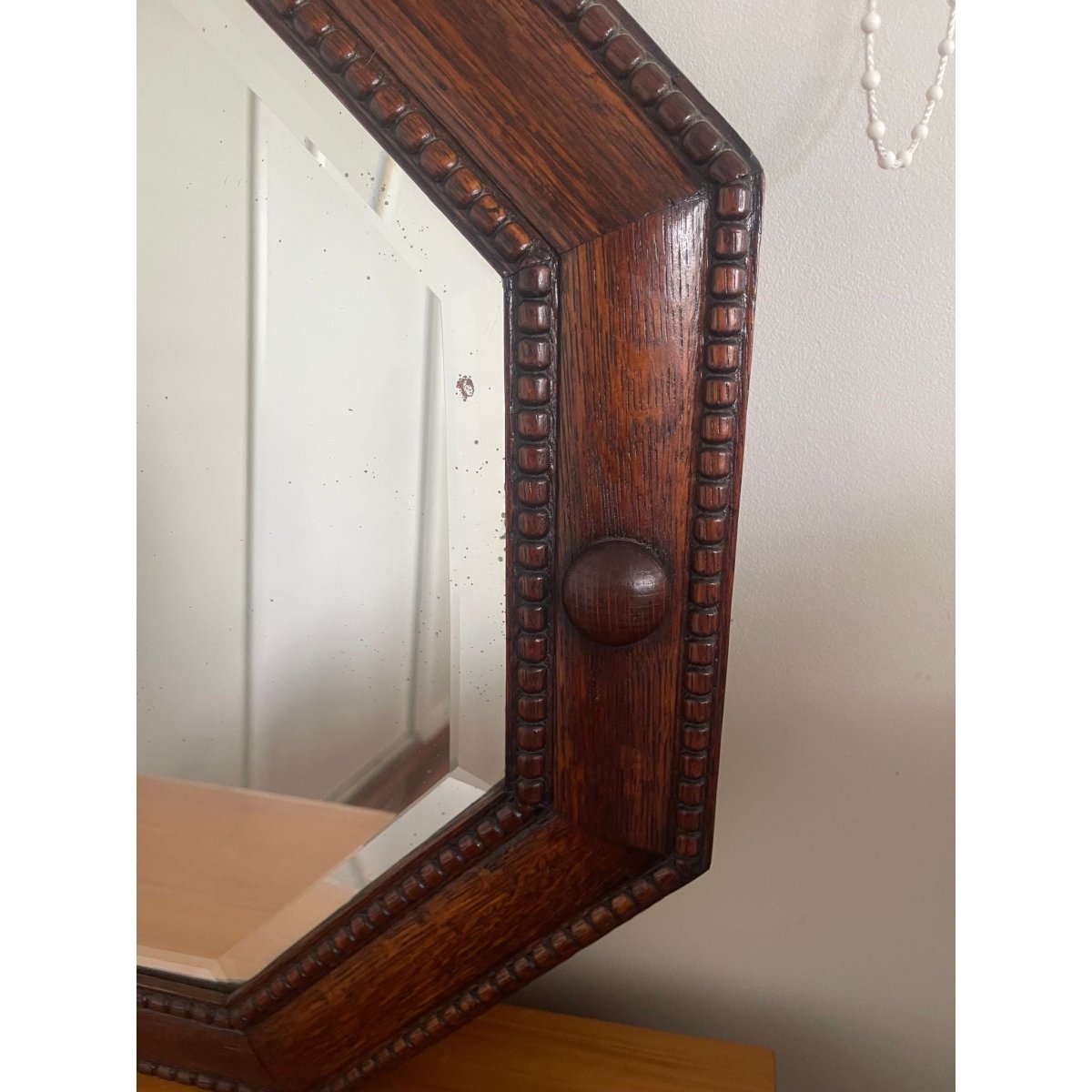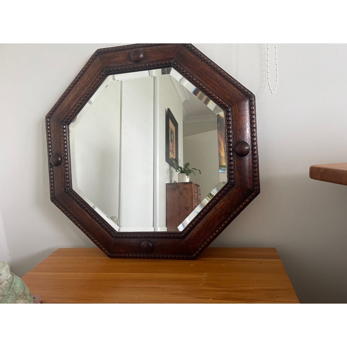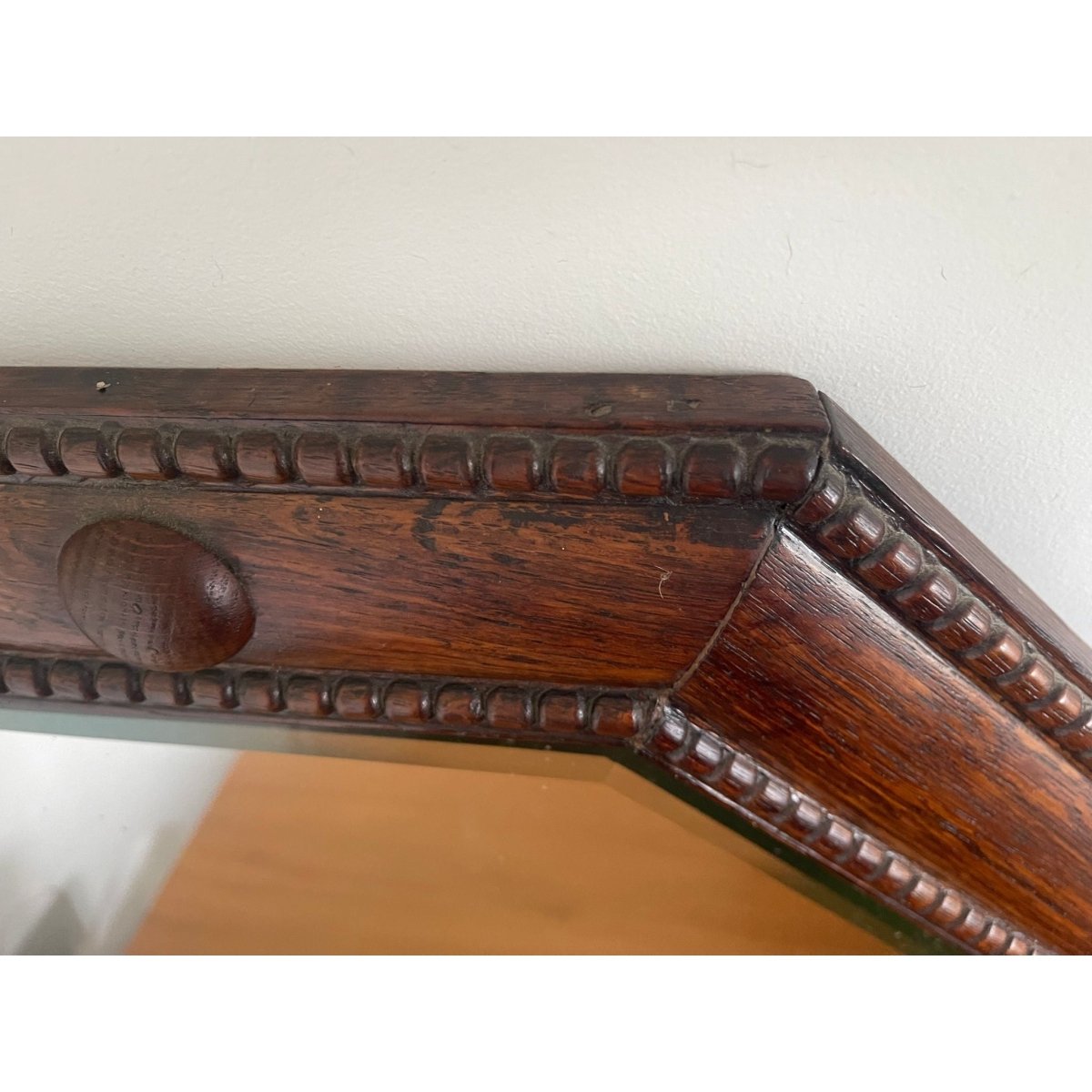 Art Deco mirror with beaded oak timber frame. There are some small aging marks on the mirror but the reflection is still wonderful.