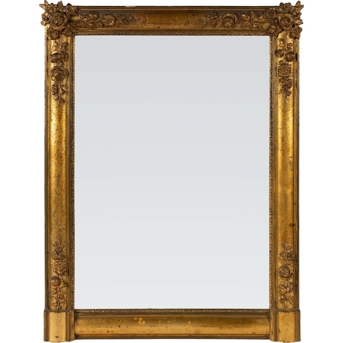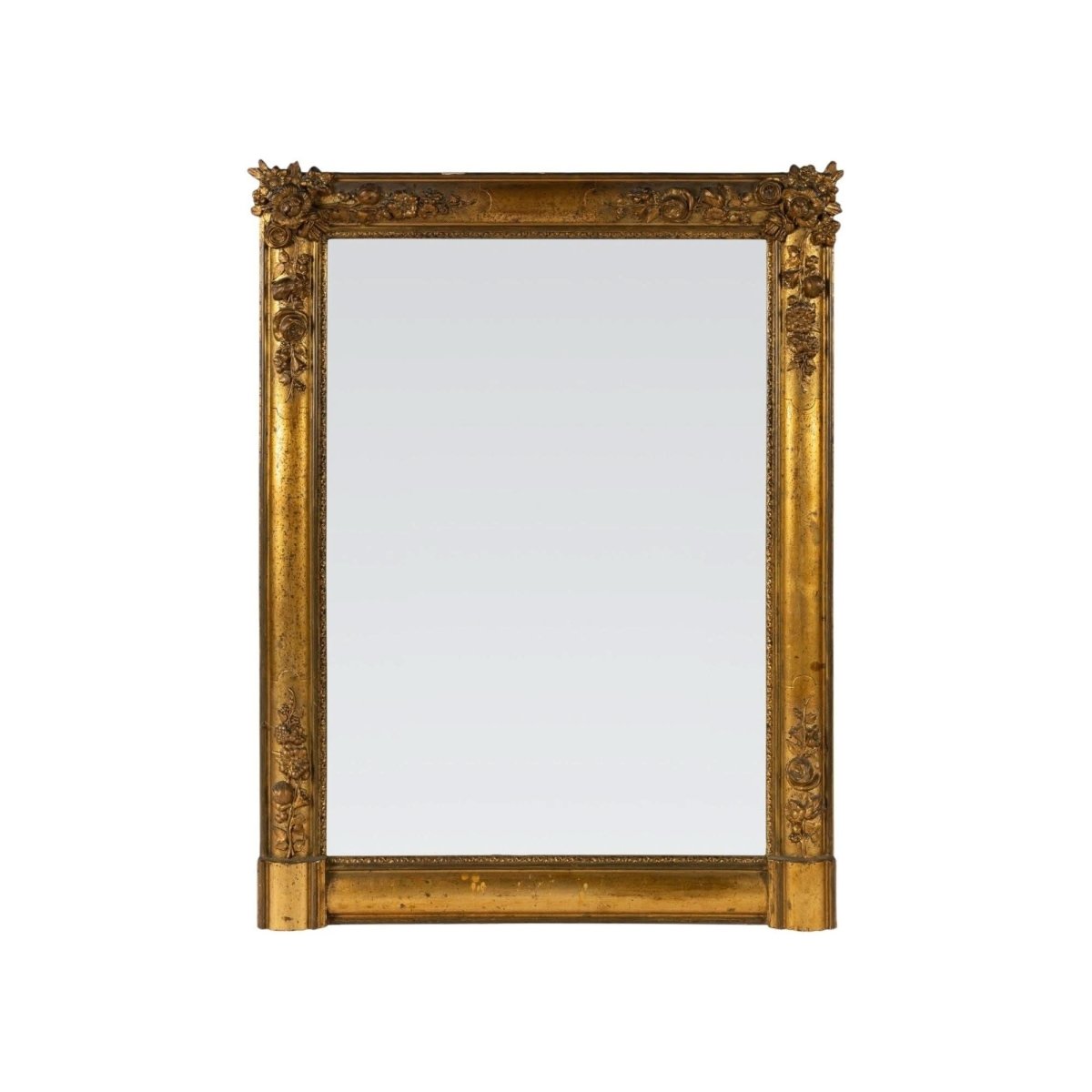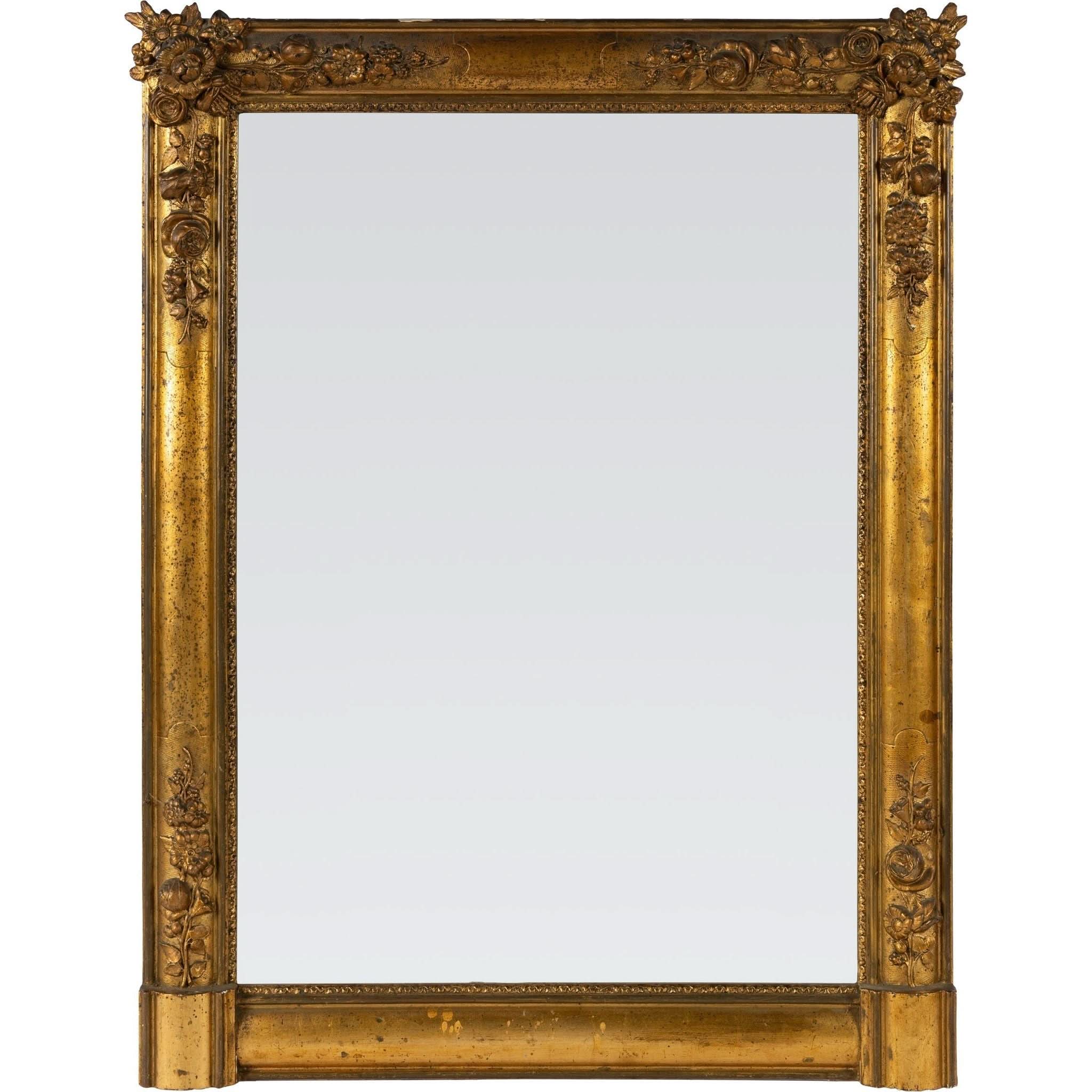 Lovely large Antique French 19th Century mirror with elegant frame and floral decals in the corners - a lovely statement piece