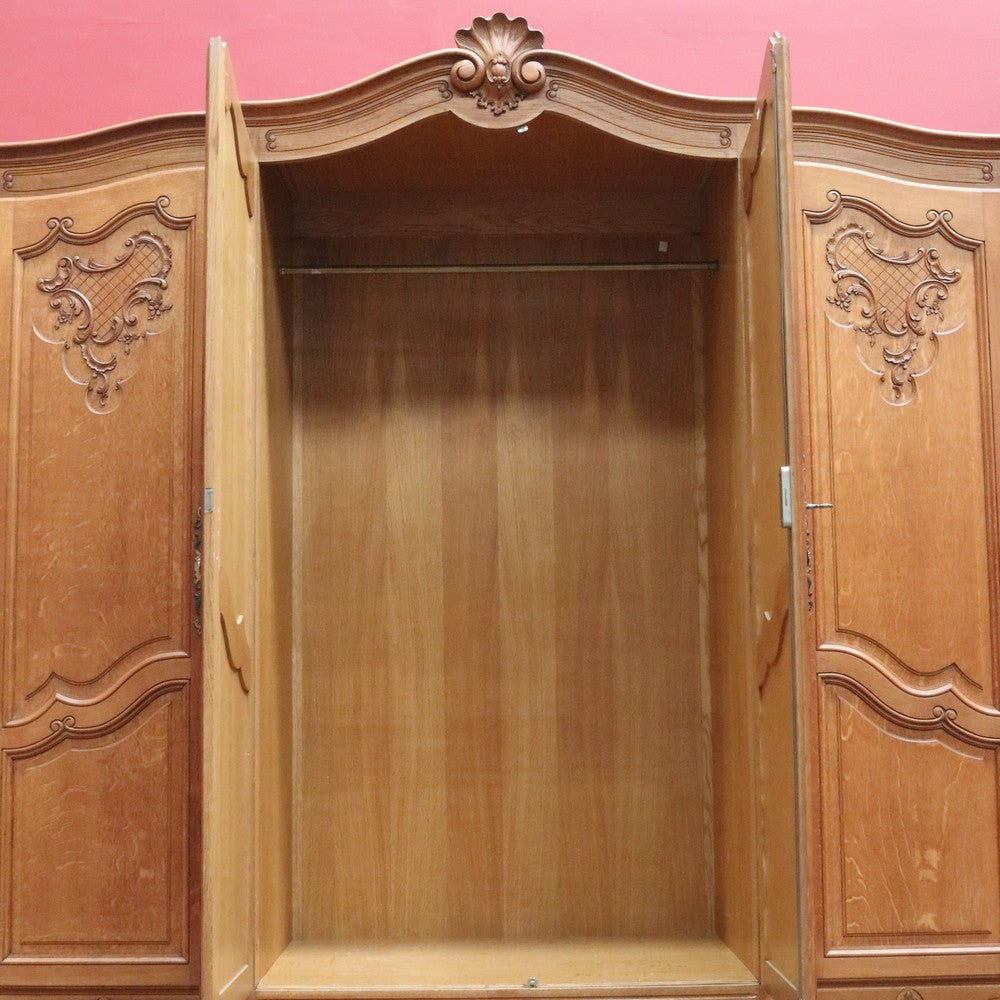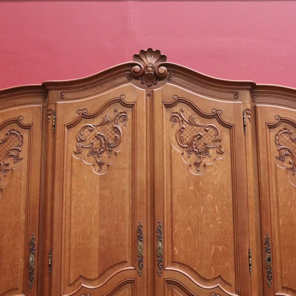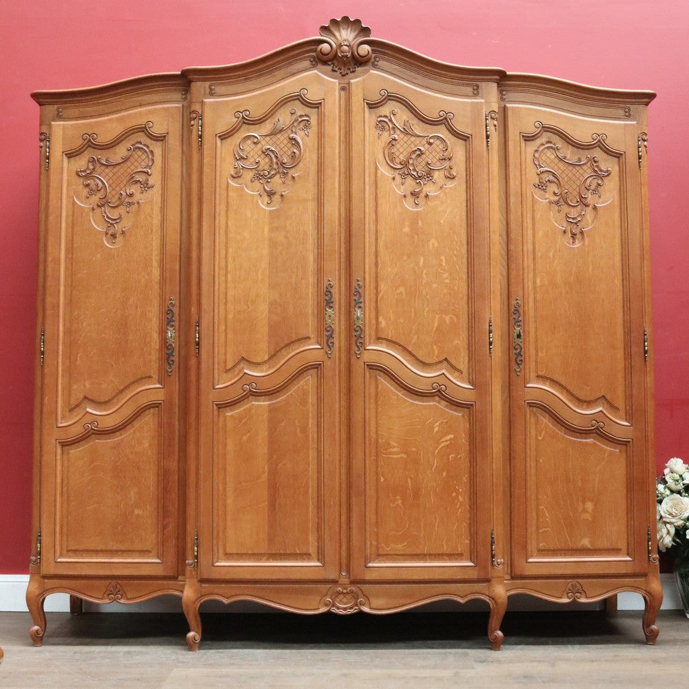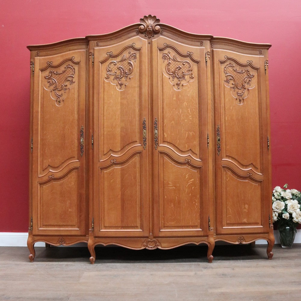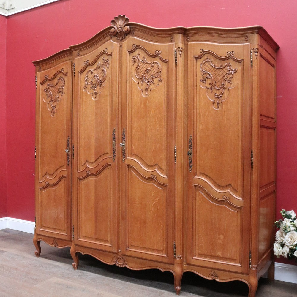 Description: Experience classic French elegance with this impressive antique oak wardrobe. Featuring four paneled doors and generous interior storage, this armoire could doubles as a linen press or cabinet, making it a versatile addition to any bedroom or dressing room. The solid oak construction boasts refined carved accents and a rich, warm finish, embodying timeless craftsmanship and sophistication. Ideal for those seeking both function and authentic French style in their home décor.