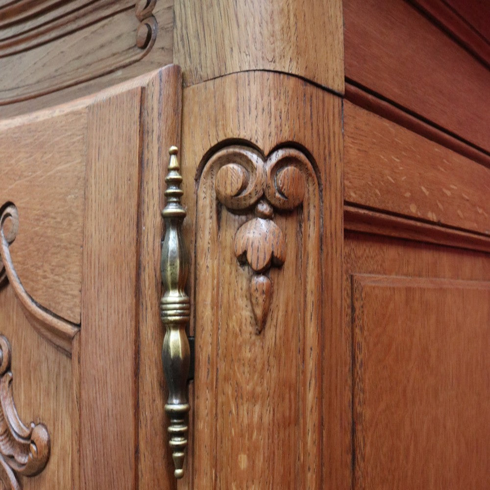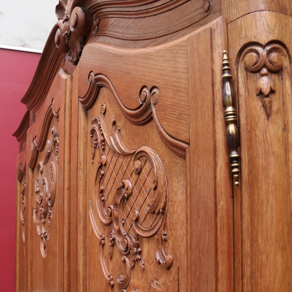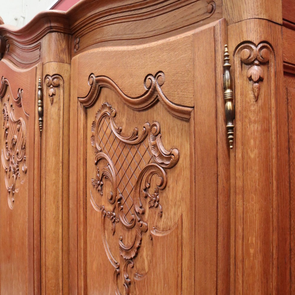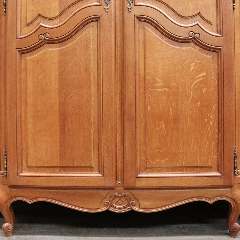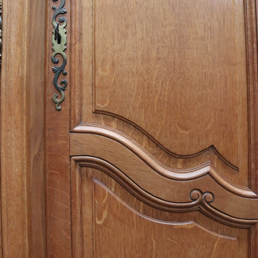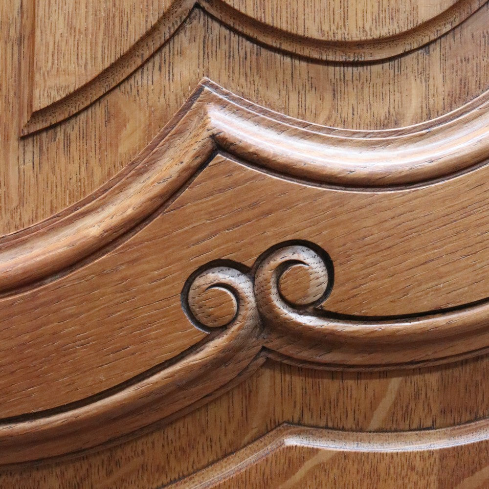 Description: Experience classic French elegance with this impressive antique oak wardrobe. Featuring four paneled doors and generous interior storage, this armoire could doubles as a linen press or cabinet, making it a versatile addition to any bedroom or dressing room. The solid oak construction boasts refined carved accents and a rich, warm finish, embodying timeless craftsmanship and sophistication. Ideal for those seeking both function and authentic French style in their home décor.