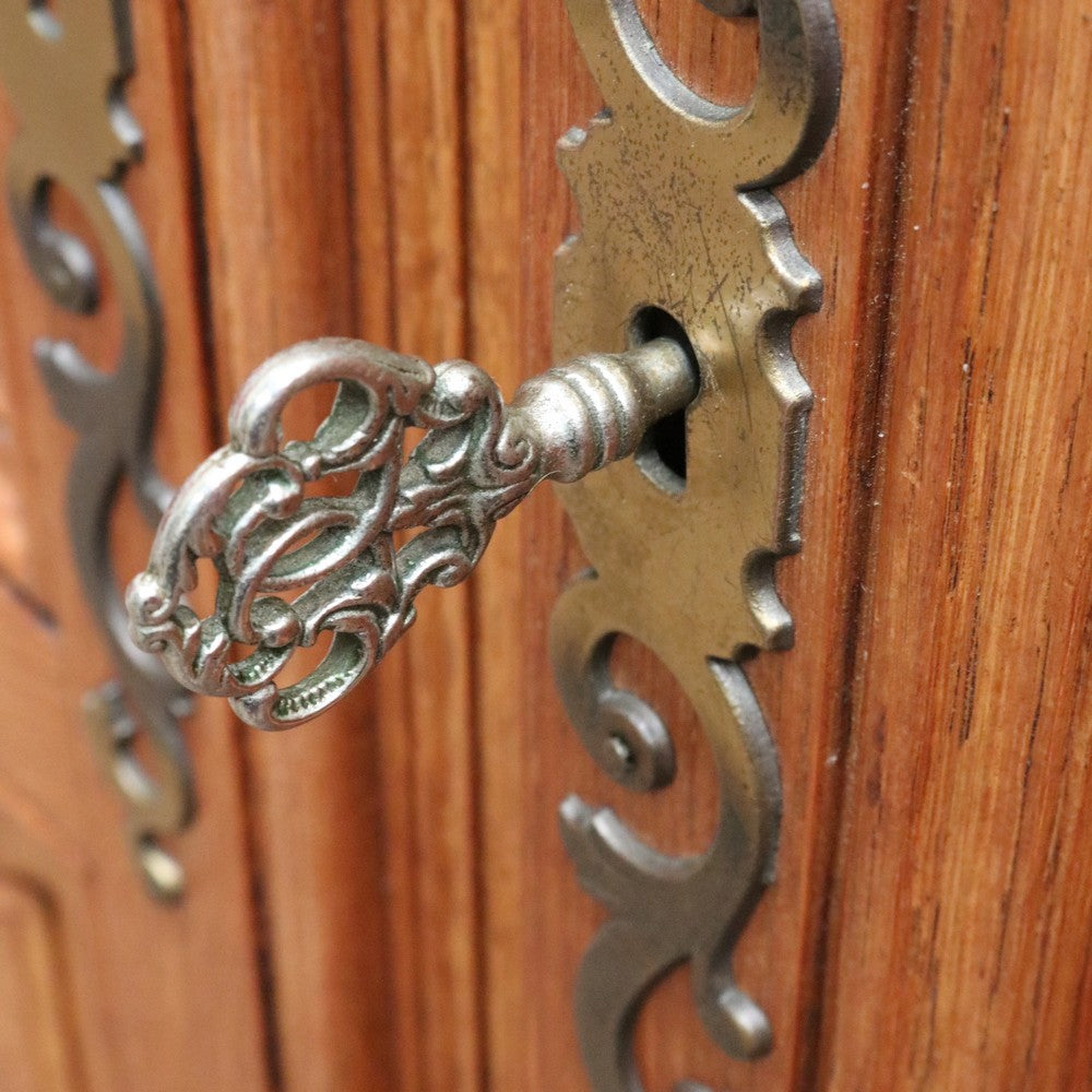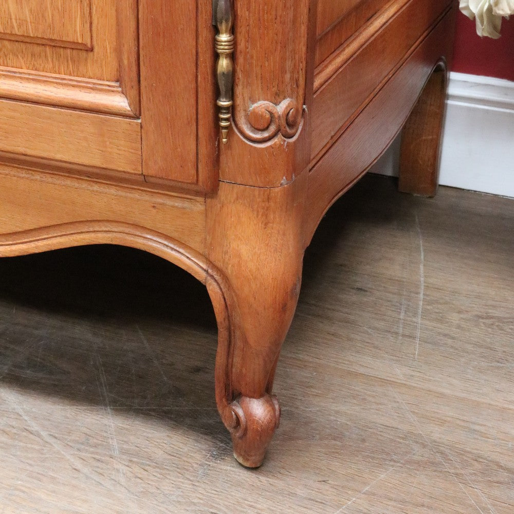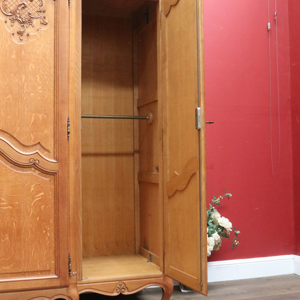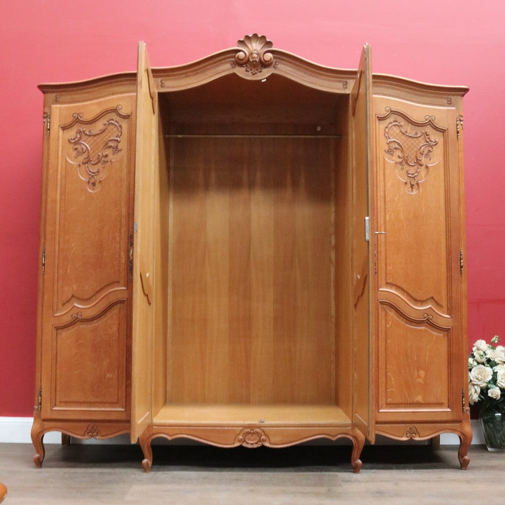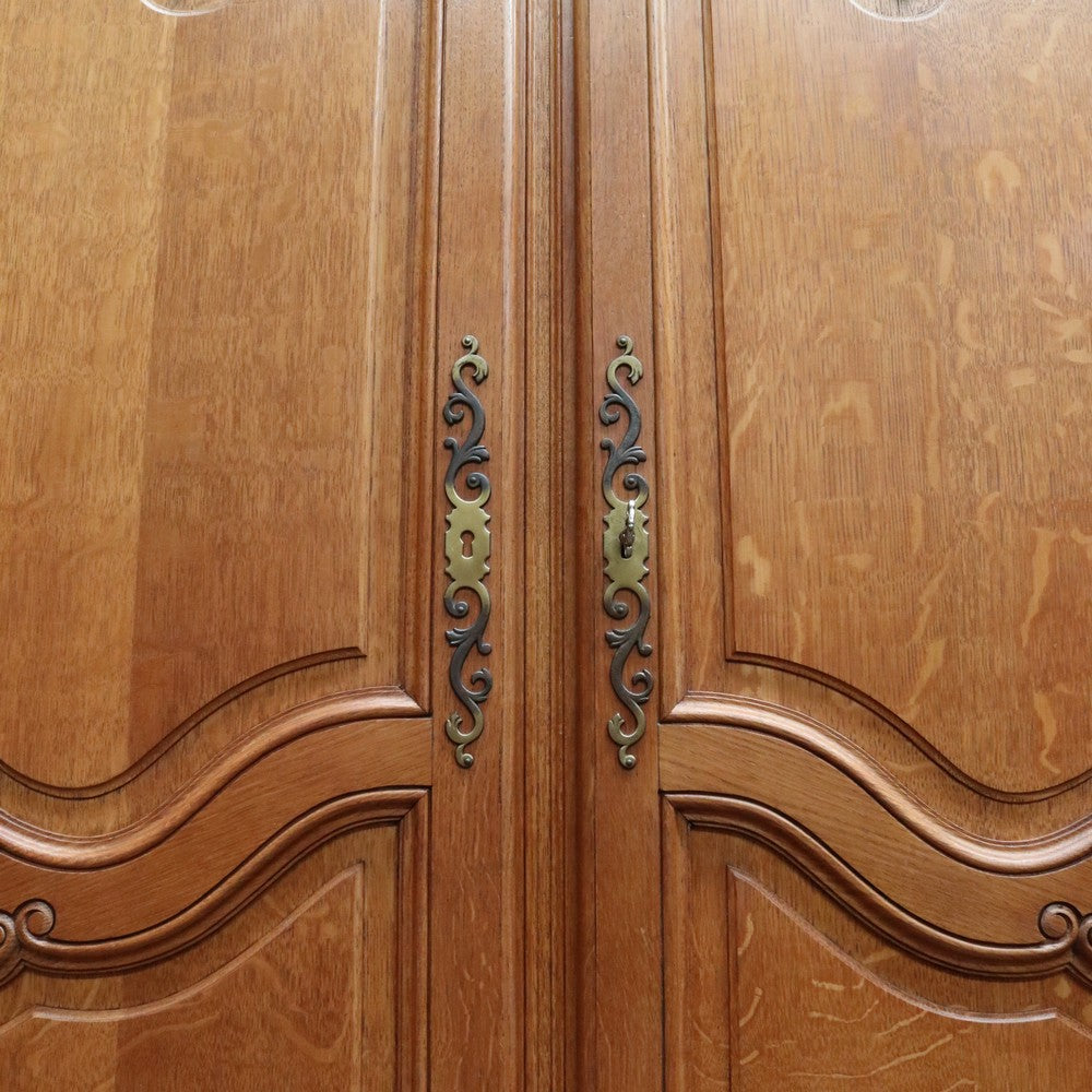 Description: Experience classic French elegance with this impressive antique oak wardrobe. Featuring four paneled doors and generous interior storage, this armoire could doubles as a linen press or cabinet, making it a versatile addition to any bedroom or dressing room. The solid oak construction boasts refined carved accents and a rich, warm finish, embodying timeless craftsmanship and sophistication. Ideal for those seeking both function and authentic French style in their home décor.