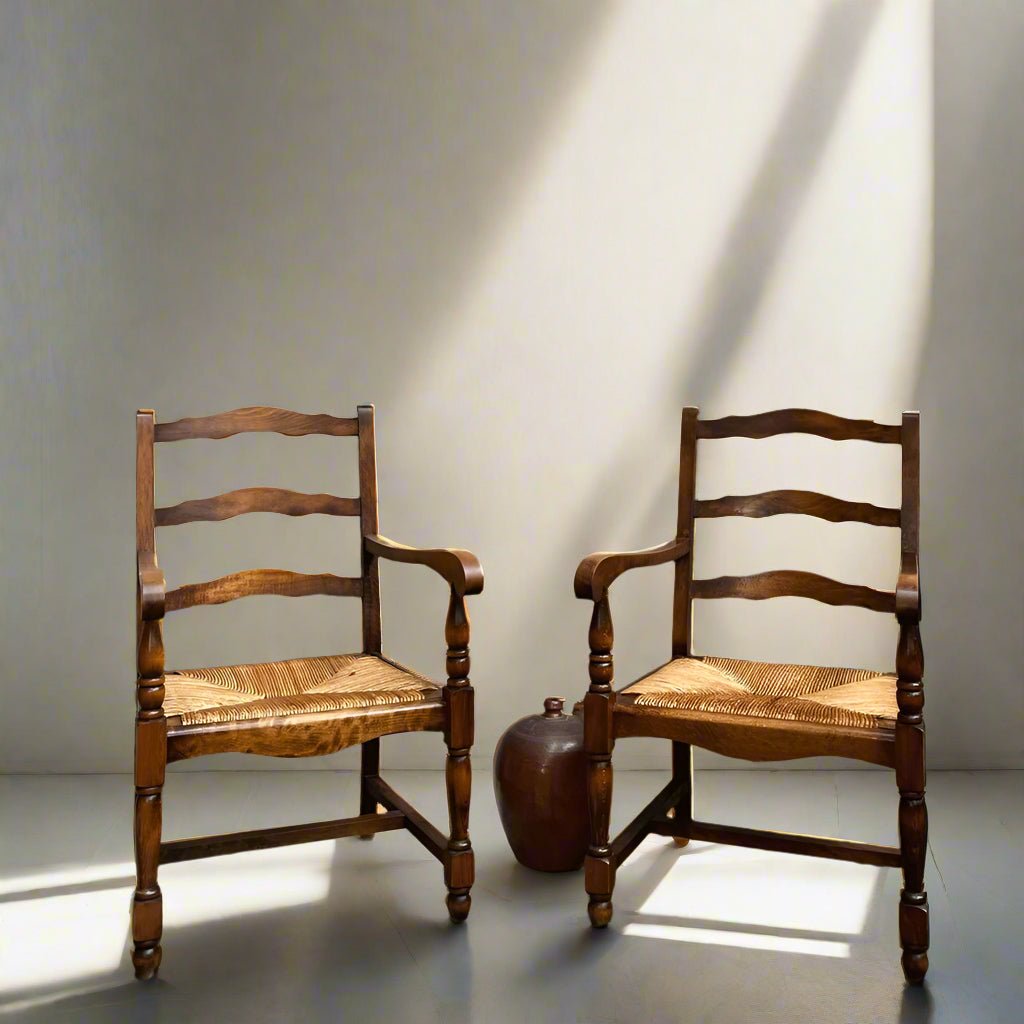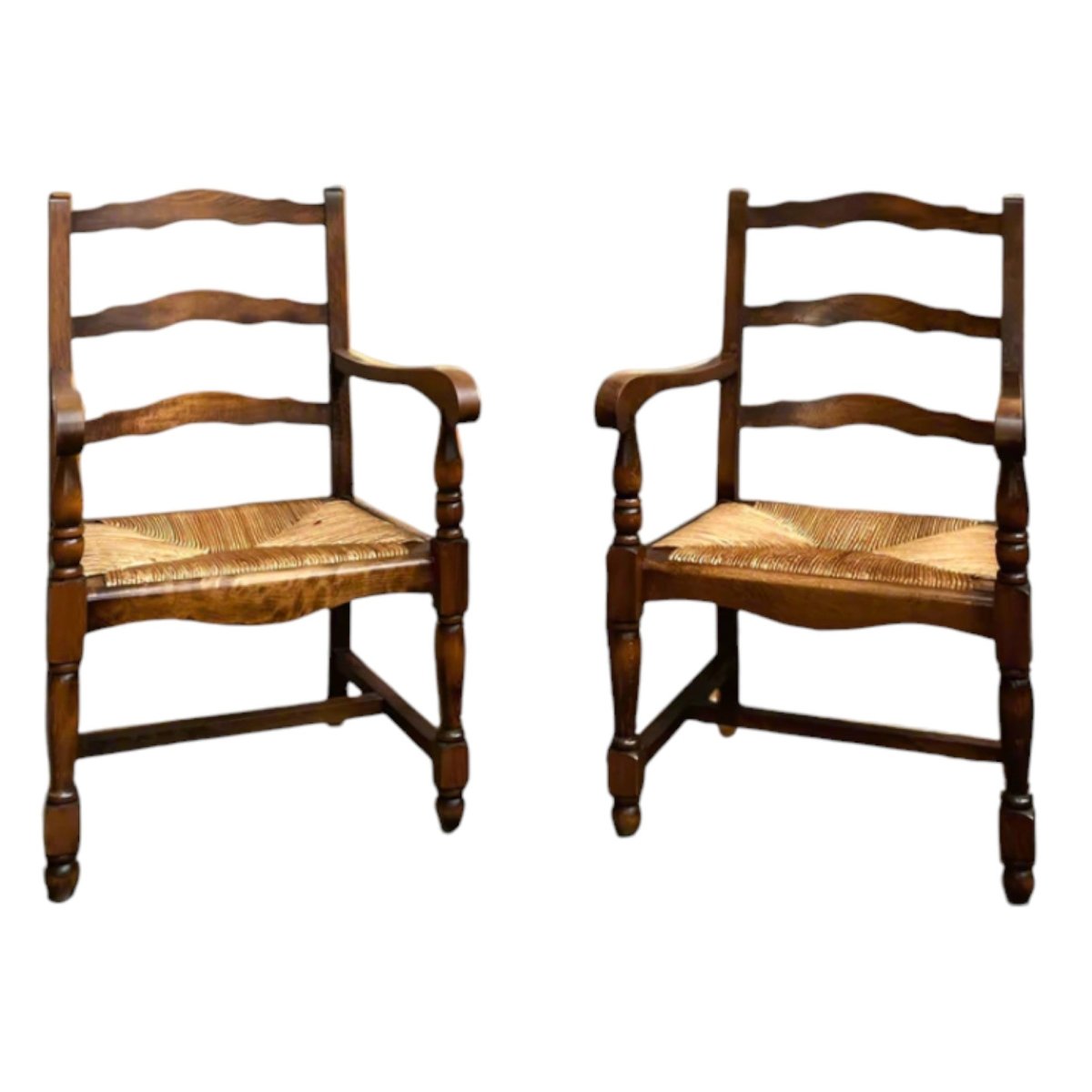 A pair of mid 19th century French provincial oak fauteuil,s.. the timber is in perfect condition , fitted with a woven-rush envelope seat.