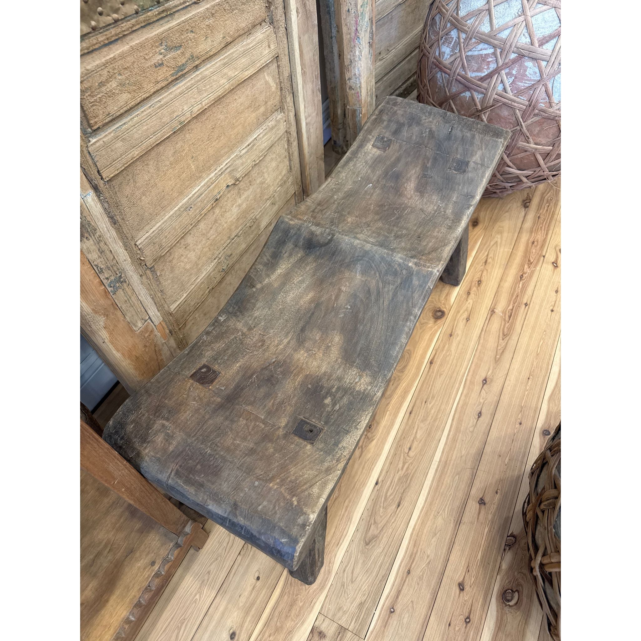 Discover the beauty of our Aged Wavy Bench, handcrafted from sustainable teakwood. Perfect for entryways or living spaces. Shop now for unique, organic furniture.