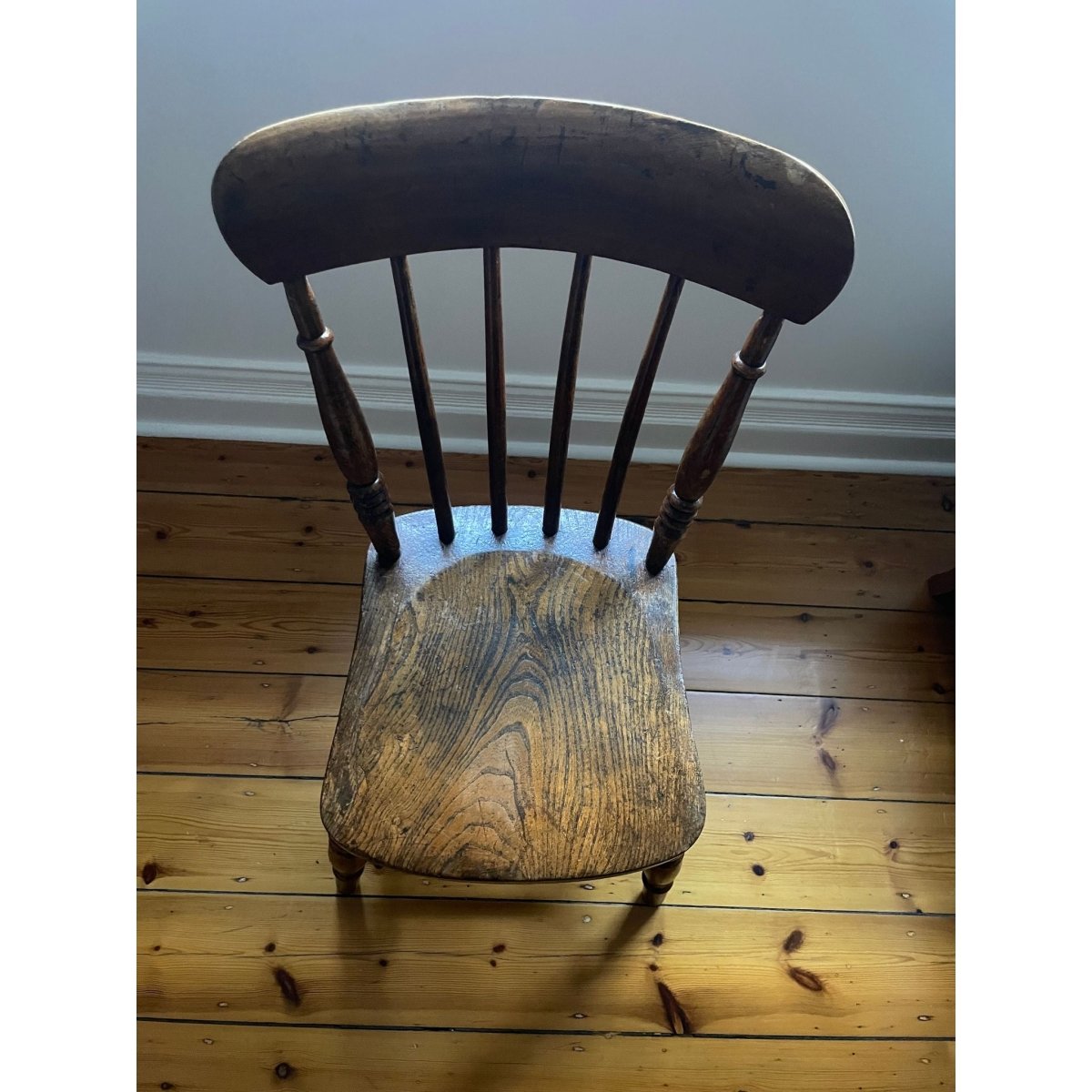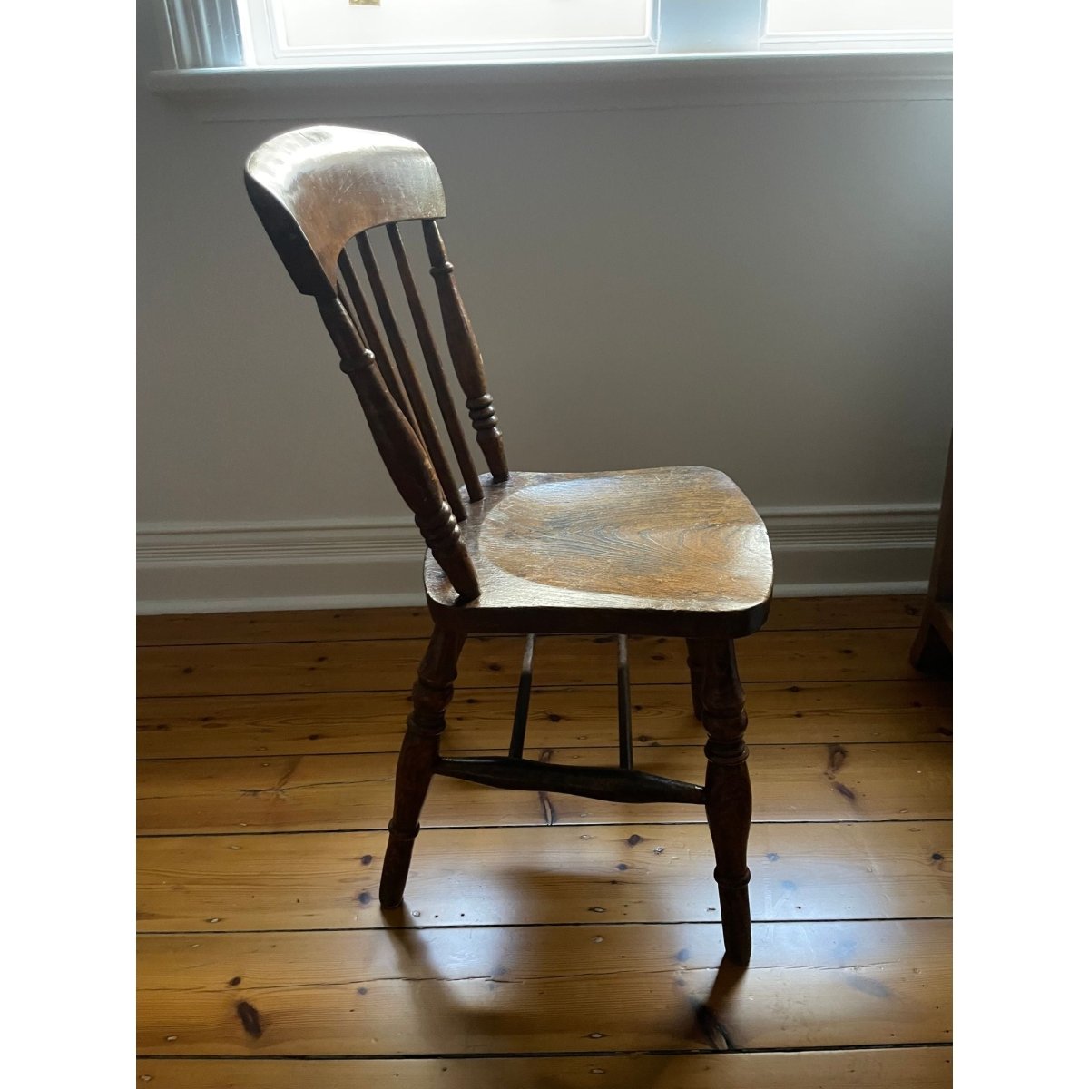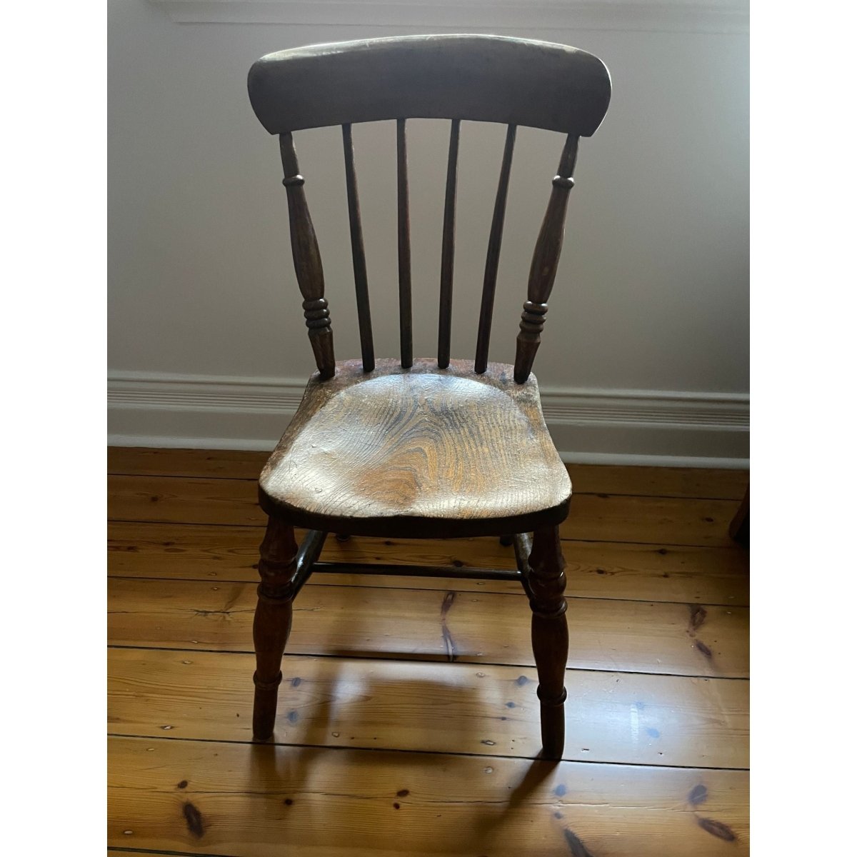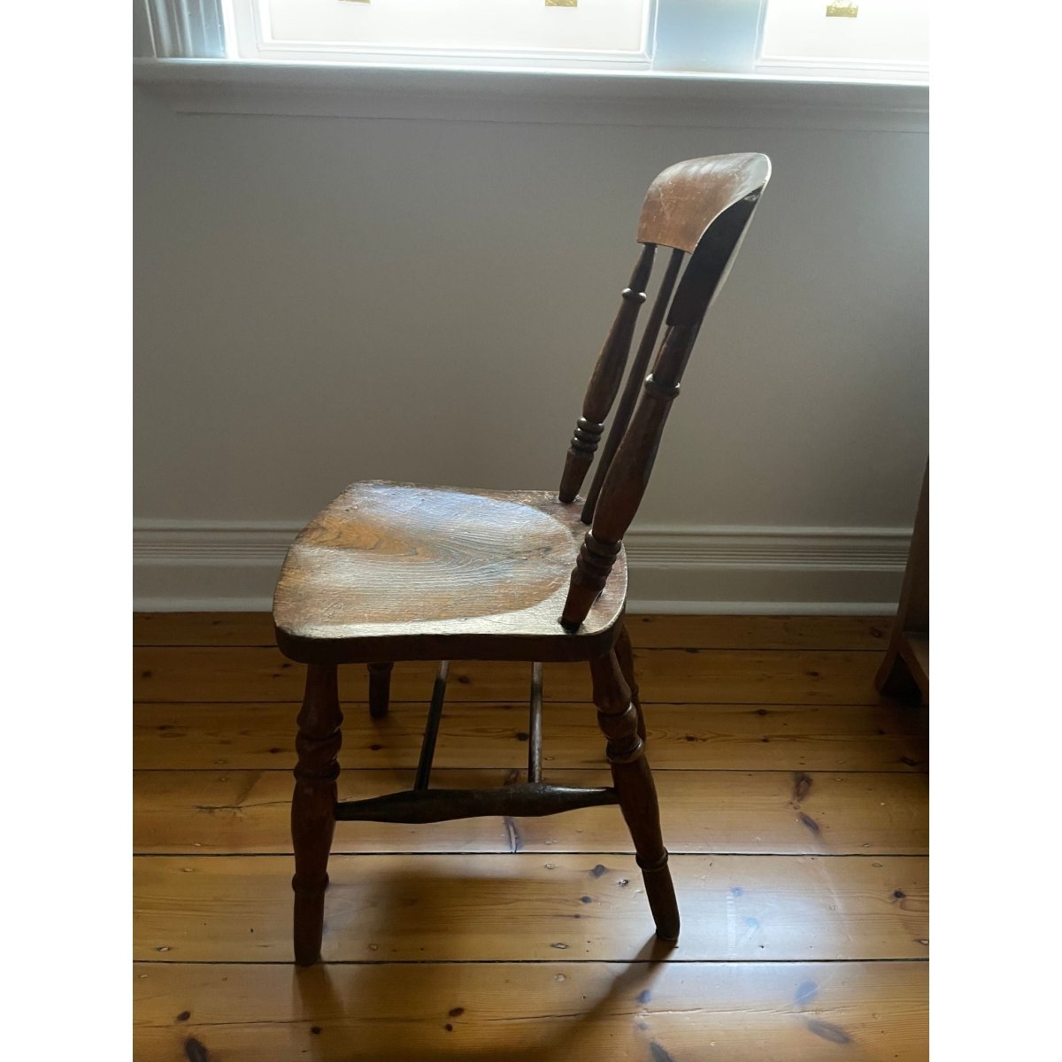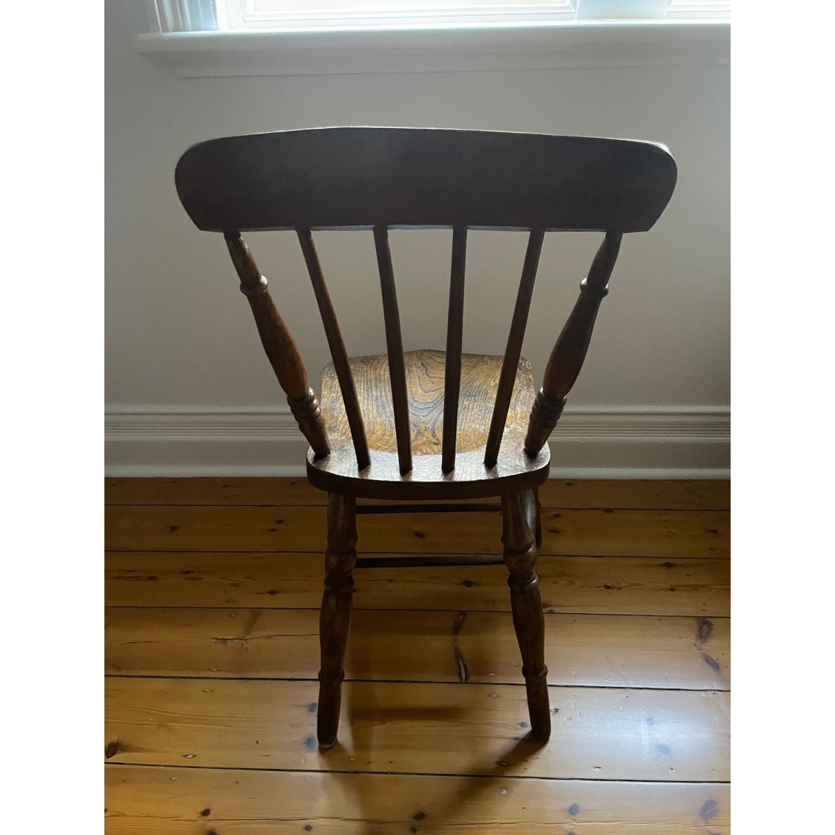 Set of ten vintage dining chairs crafted from solid elm wood. From church in Williamstown. Features a gently curved backrest with classic turned spindles, a contoured seat for comfort, and sturdy turned legs joined by supportive stretchers In very good condition with some signs of use as expected with age