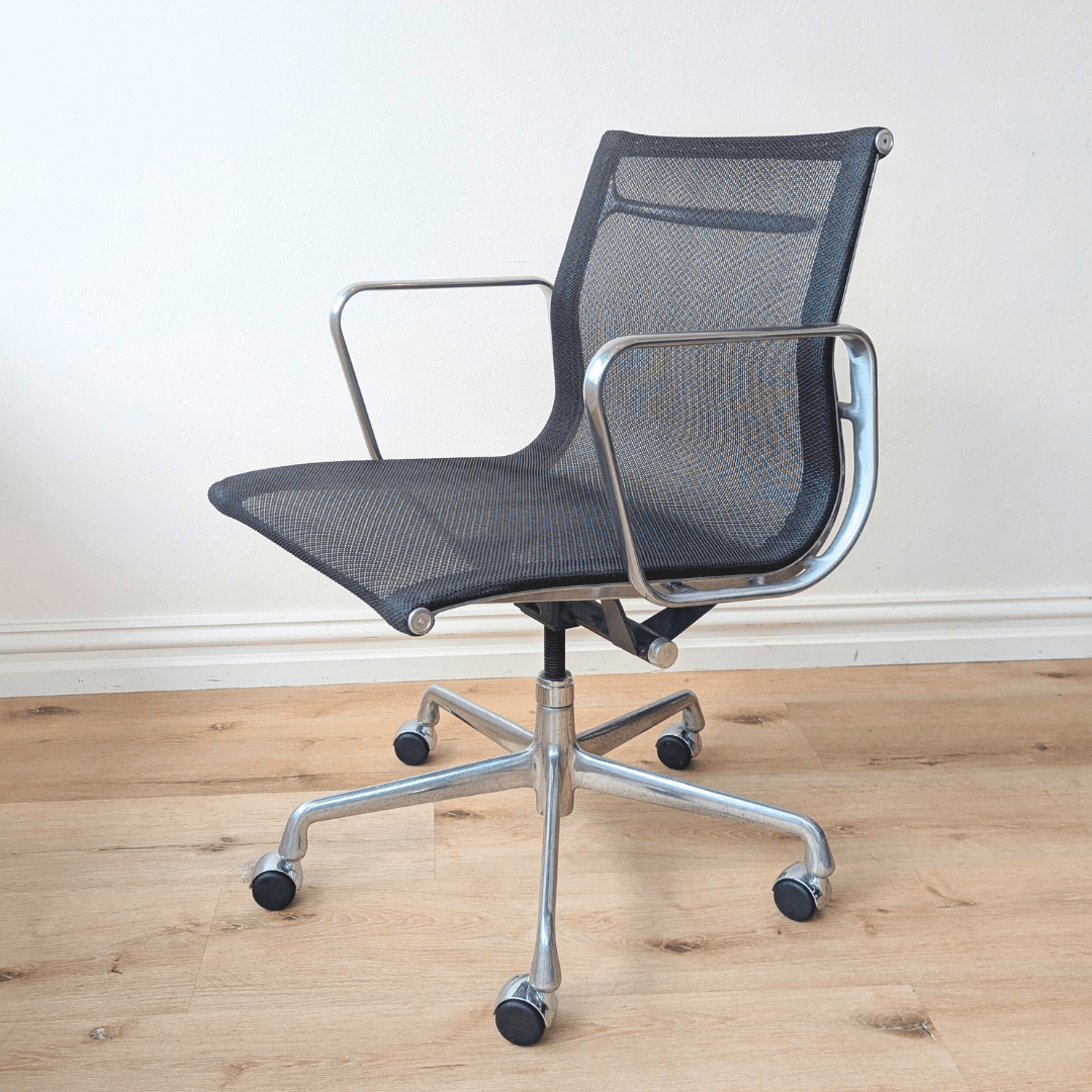An authentic suite from Herman Miller’s Aluminium Group, designed by Charles & Ray Eames and produced 2006–2007. A landmark in modern executive seating — elegant, ergonomic, and enduring. Every line reflects the Eames commitment to precision and purpose: sculptural frames, tensile mesh, and perfect poise under pressure.