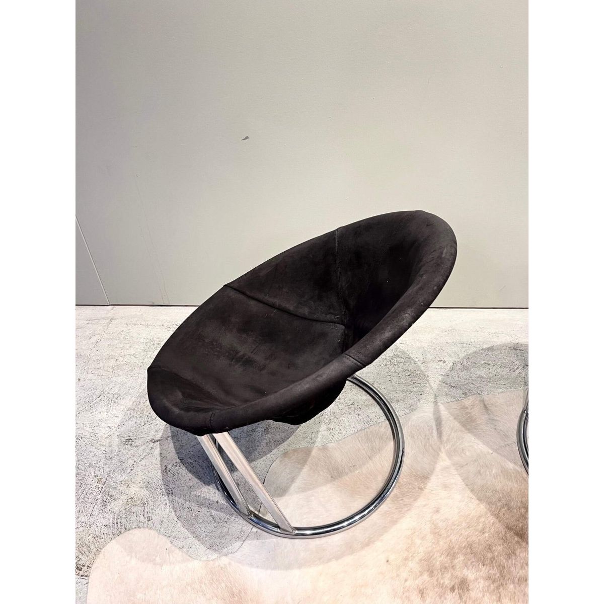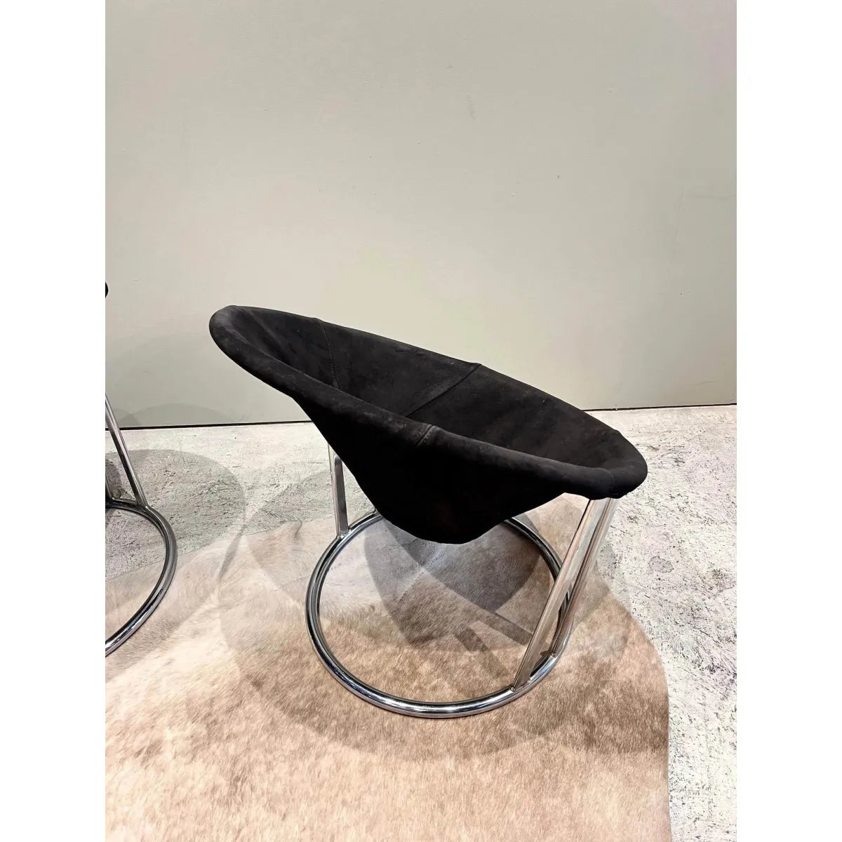 Pair of mid century modern, vintage, chrome and leather sling chairs by E Lusch for Lusch and Co.