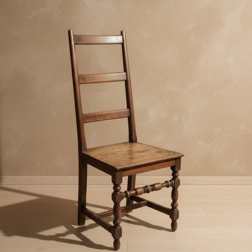 A genuine piece of French countryside heritage, this walnut ladderback chair captures the unpretentious spirit of 18th-century rural craftsmanship. Hand-carved throughout with visible artisan marks, it showcases the honest construction methods of its era—no frills, just solid joinery and thoughtful proportions. The wood has mellowed into a warm, honeyed patina that only centuries can bestow, revealing the natural character beneath. Perfect for those drawn to authentic period furniture with genuine soul and a lived-in elegance that modern reproductions simply cannot replicate.