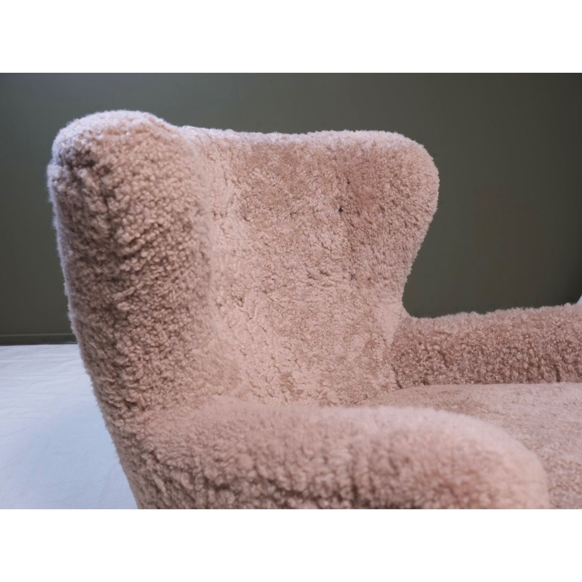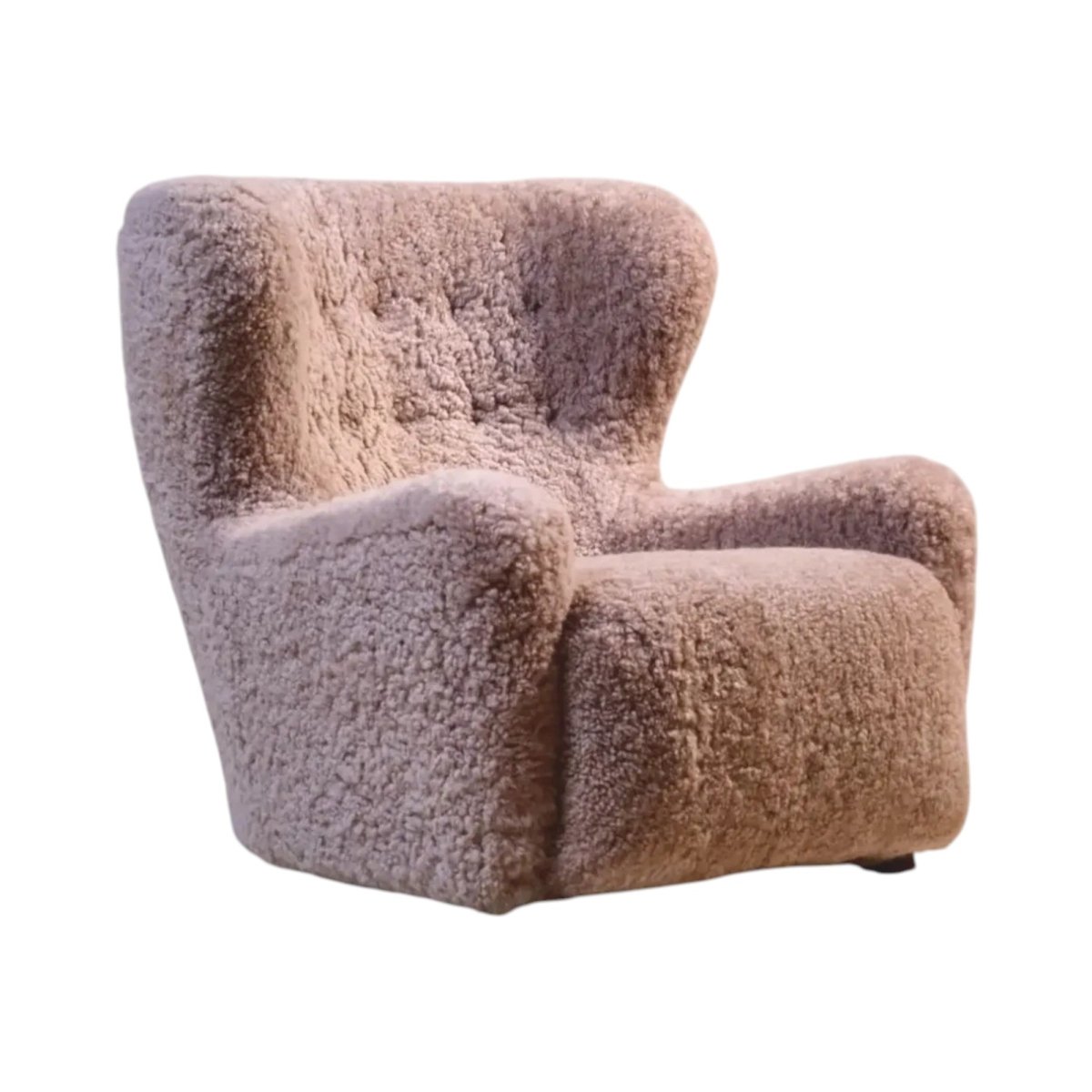 Fully Restored & reupholstered in hand stitched New Zealand Shearling, from the only non toxic tannery in Australasia.